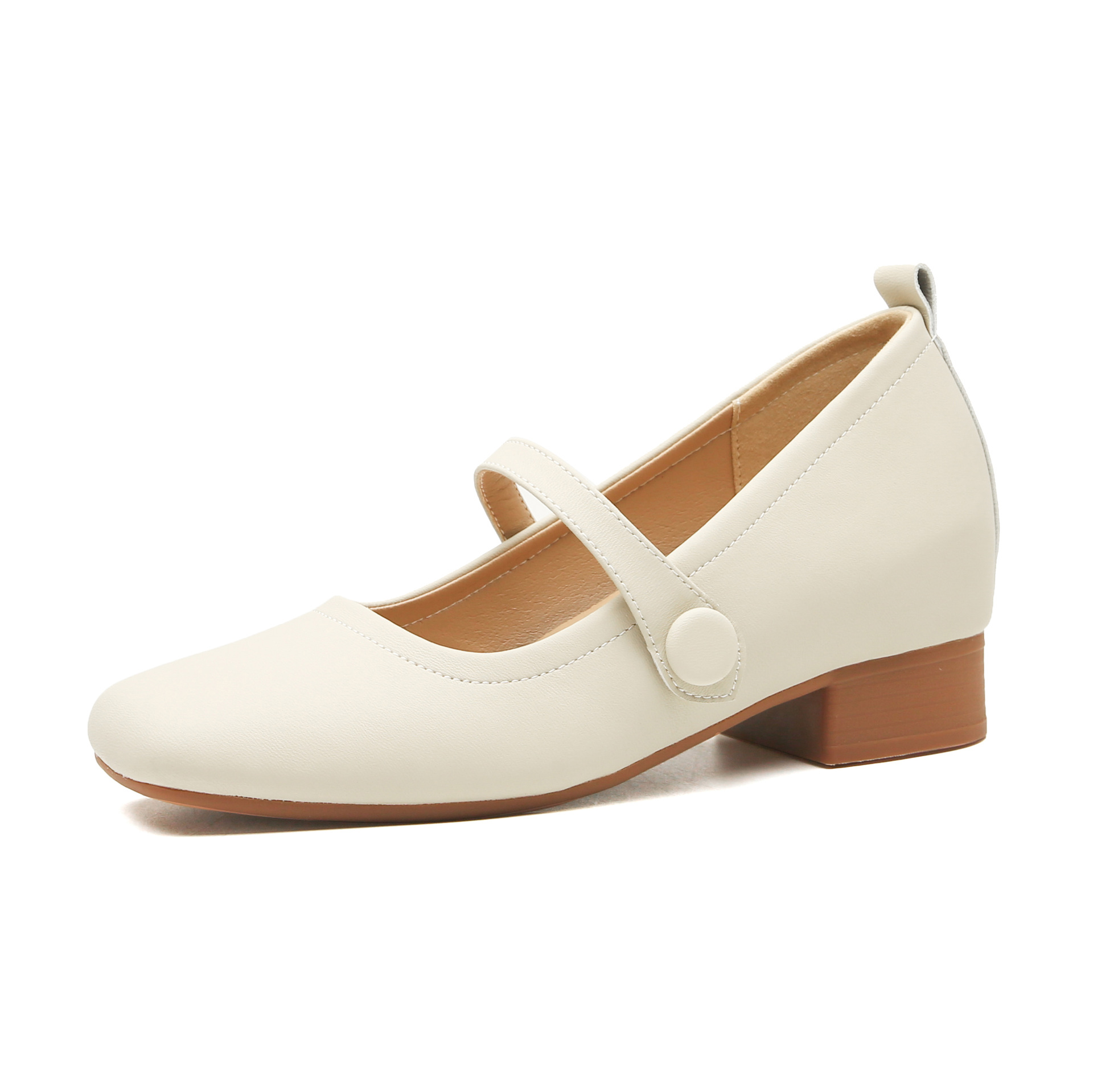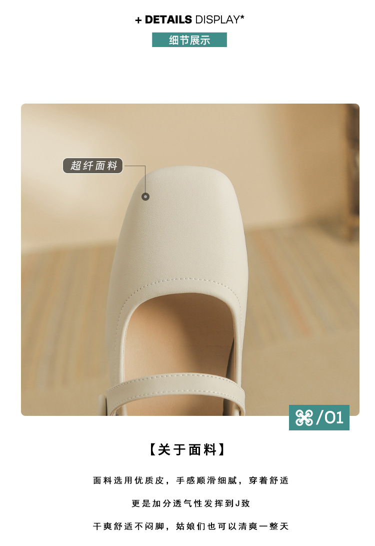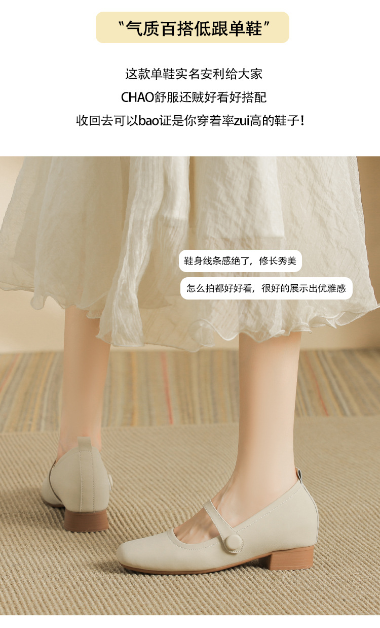 작은 내부 높이 5cm 발레 신발 스퀘어 발가락과 얕은 입 레트로 소프트 가죽 여성용 버클 신발스토어 가기
