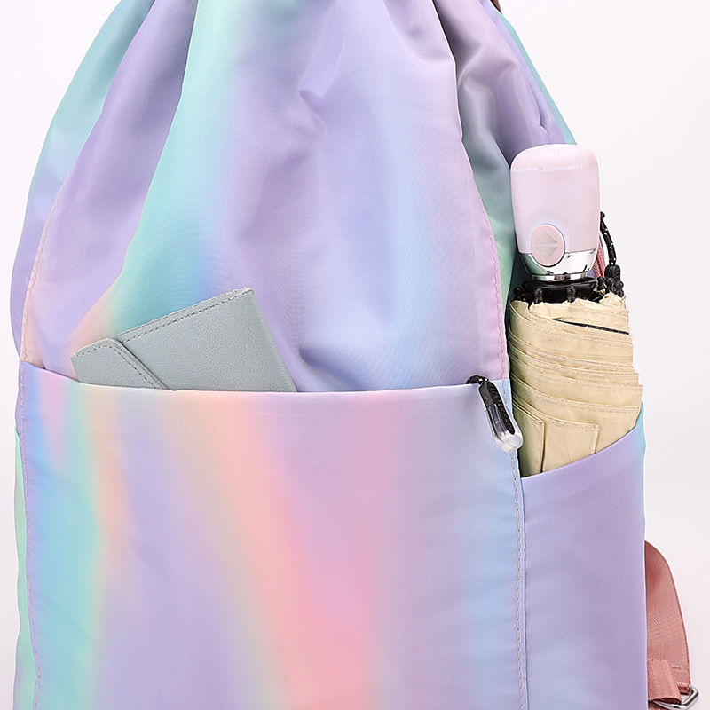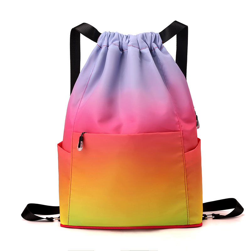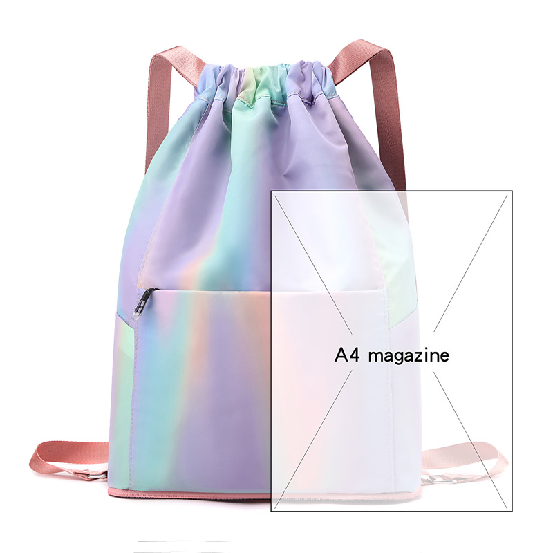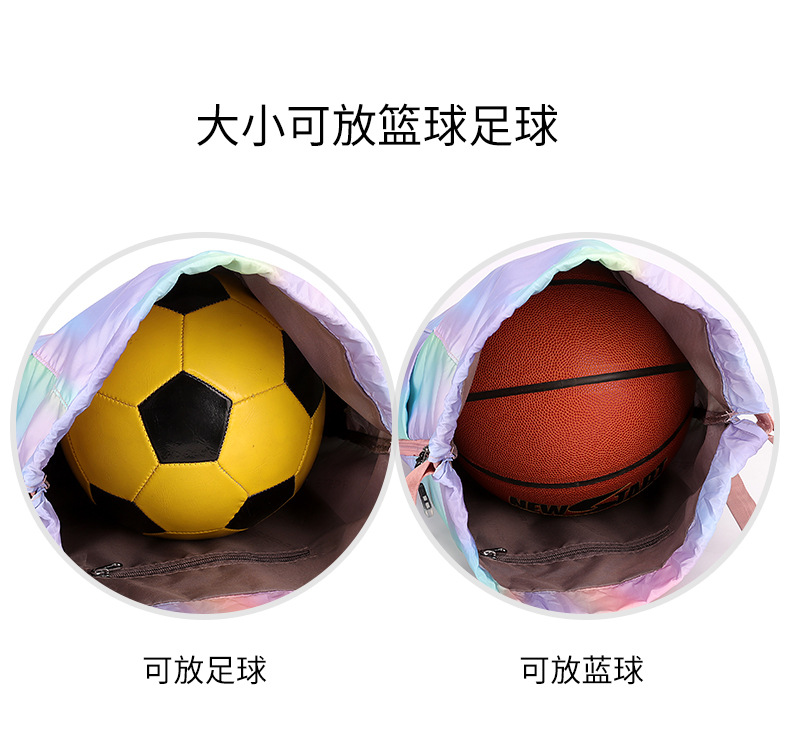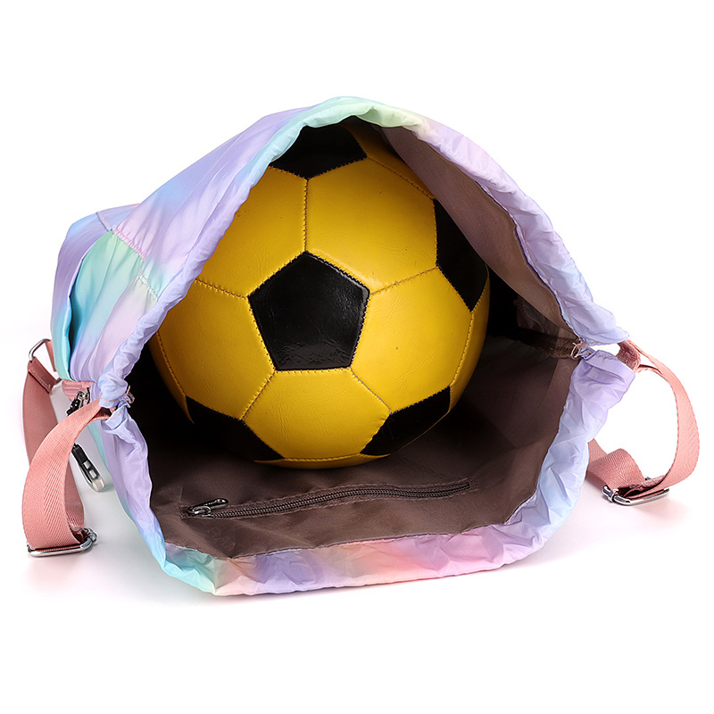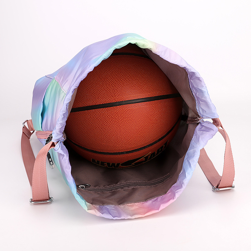 조임끈 백팩 여성용 조임끈 접이식 수납 스포츠 조임끈 가방 그라데이션 색상 캐주얼 농구 가방 접이식 휴대용