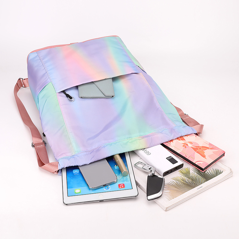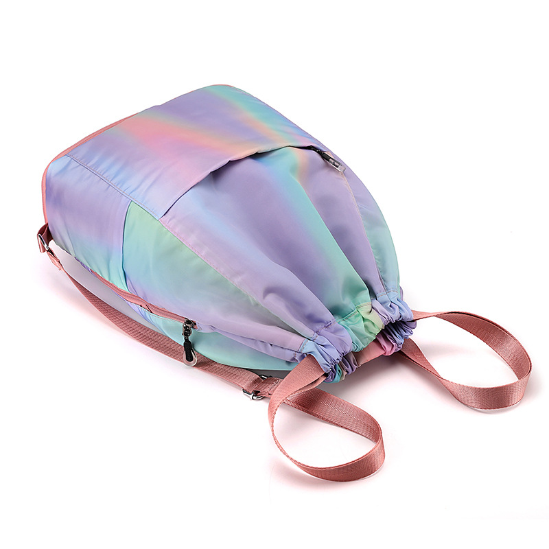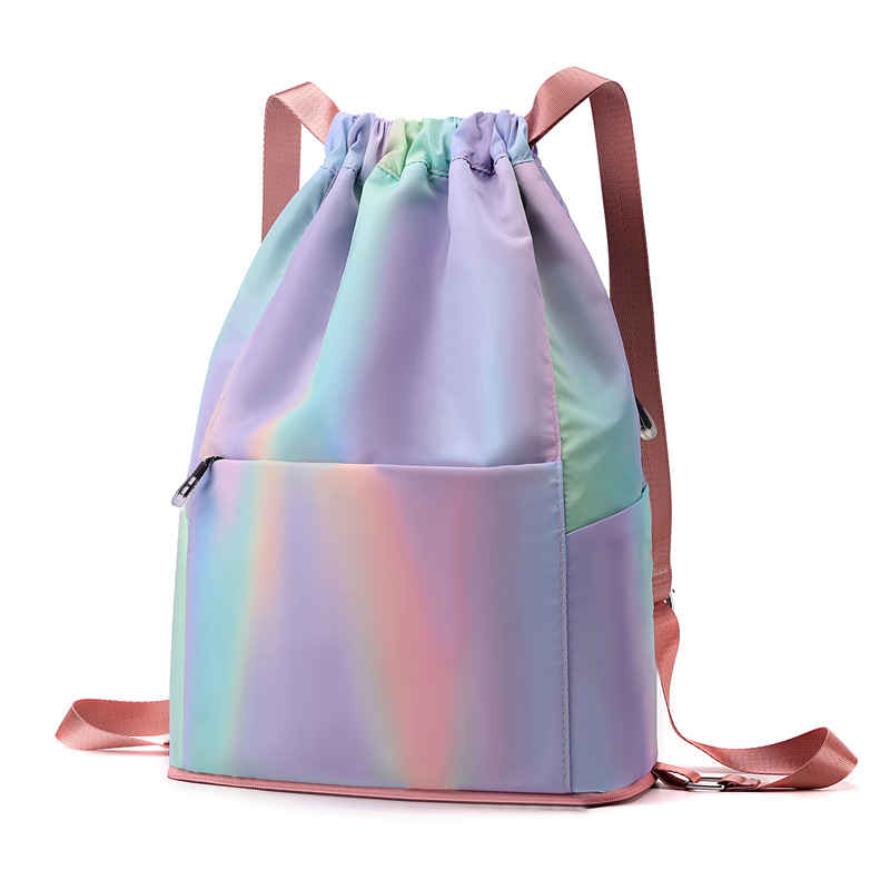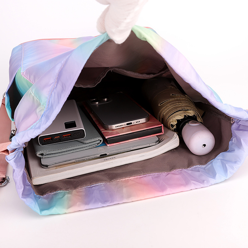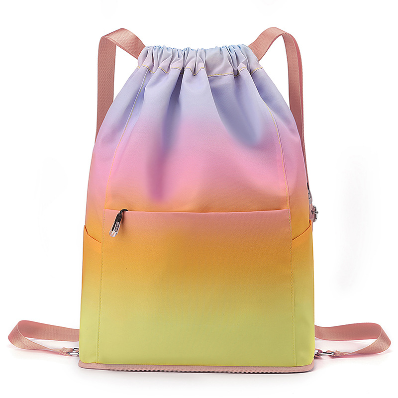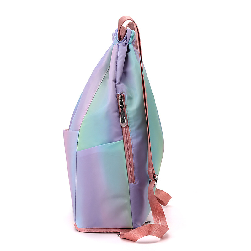조임끈 백팩 여성용 조임끈 접이식 수납 스포츠 조임끈 가방 그라데이션 색상 캐주얼 농구 가방 접이식 휴대용