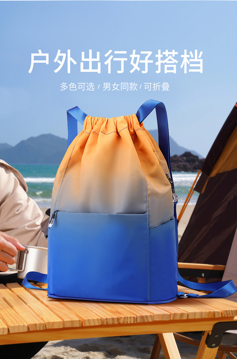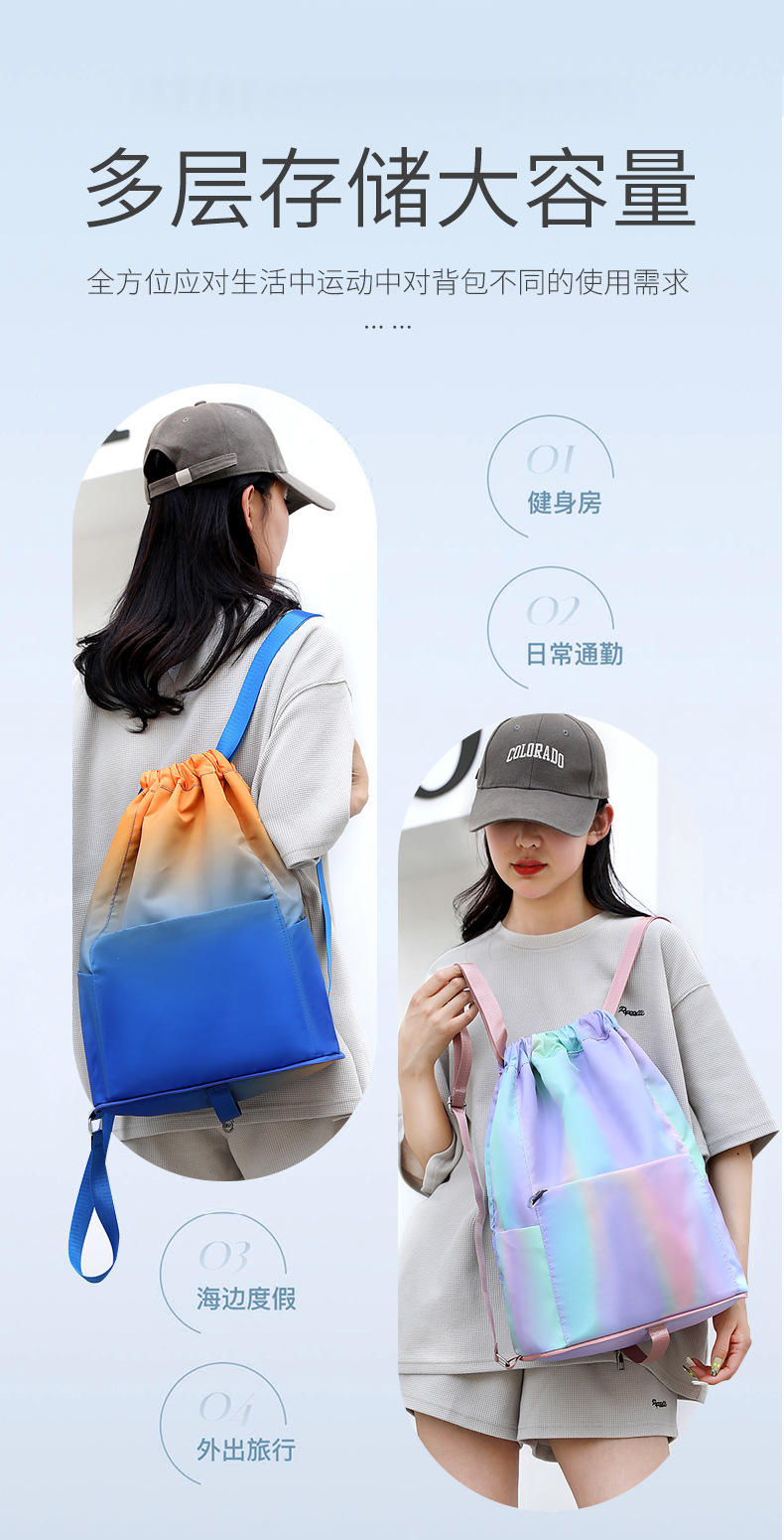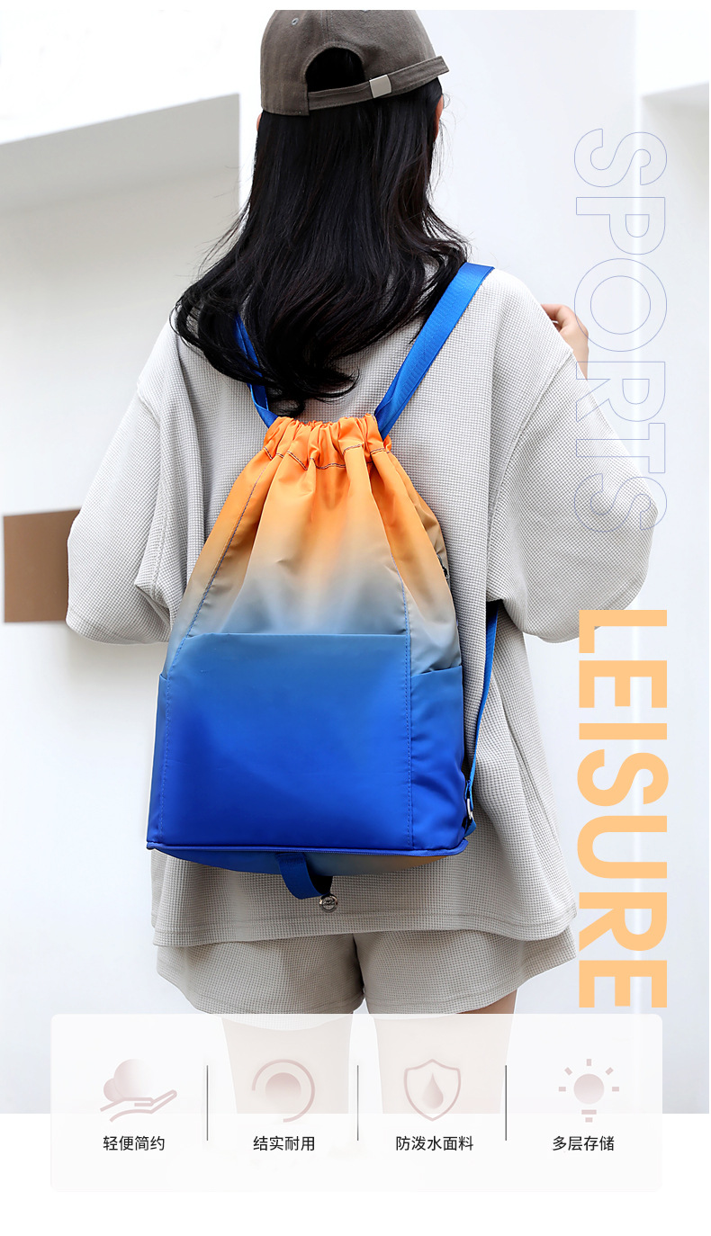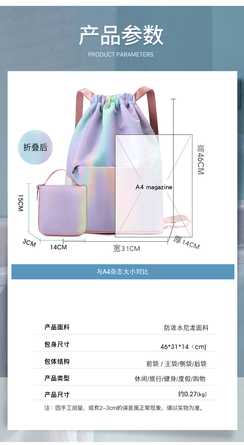 조임끈 백팩 여성용 조임끈 접이식 수납 스포츠 조임끈 가방 그라데이션 색상 캐주얼 농구 가방 접이식 휴대용스토어 가기