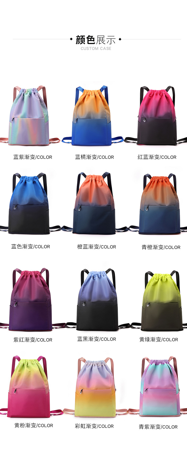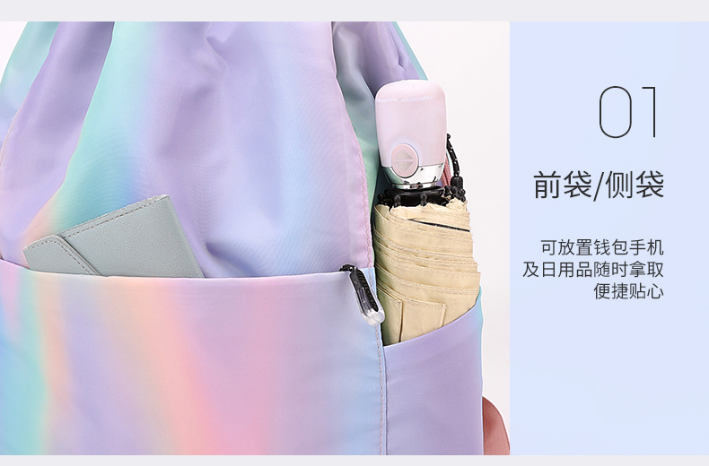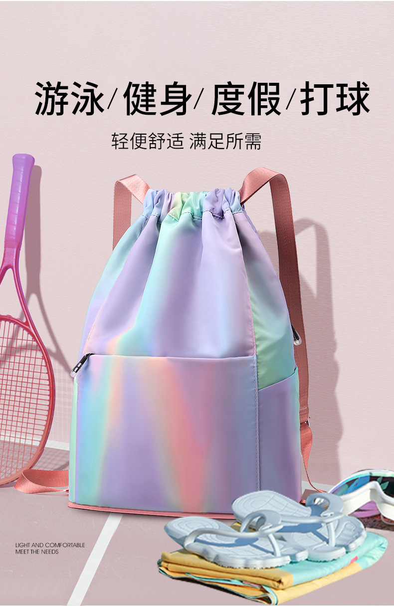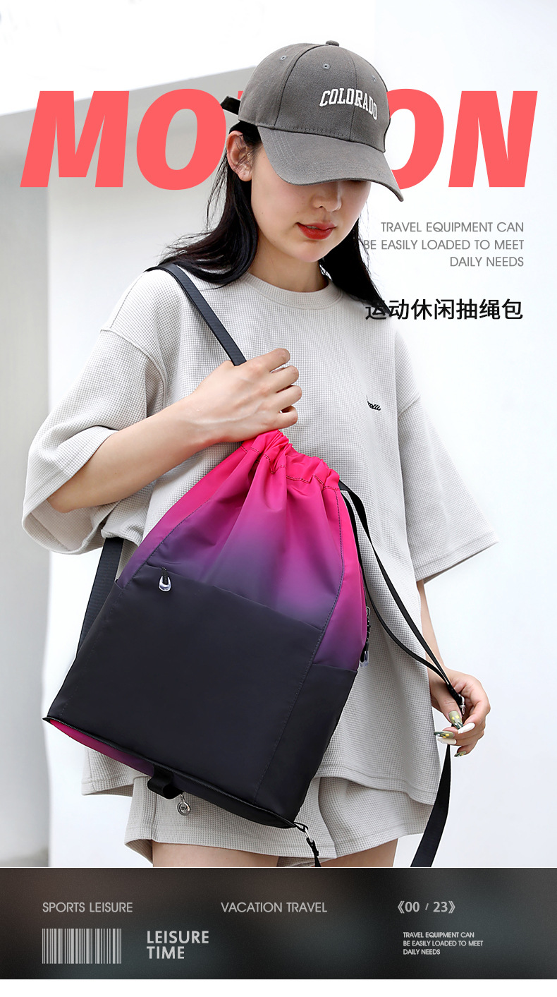 조임끈 백팩 여성용 조임끈 접이식 수납 스포츠 조임끈 가방 그라데이션 색상 캐주얼 농구 가방 접이식 휴대용스토어 가기
