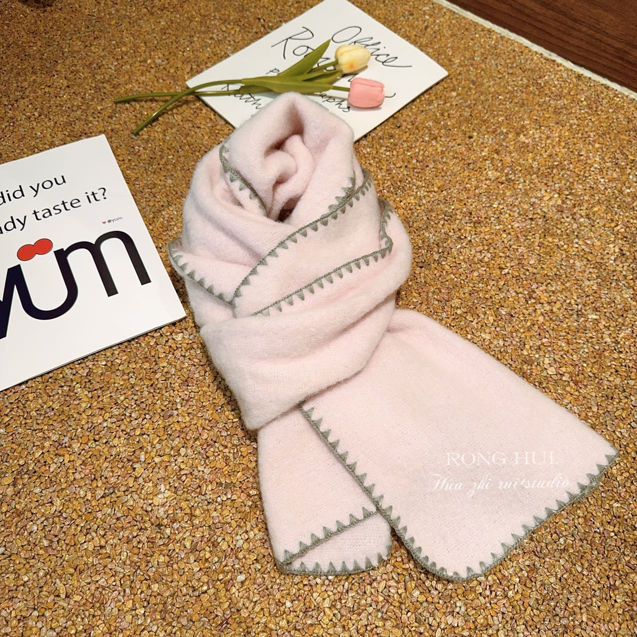 2024 새로운 한국 스타일 잠금 가장자리 단색 캐시미어 스카프 간단한 올 매치 가을과 겨울 여성의 두꺼운 따뜻한 니트 벽스토어 가기