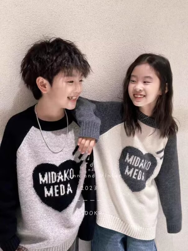 한국 아동복 어린이 스웨터 긴팔 가을 및 겨울 남학생과 여학생을위한 새로운 도착 스웨터스토어 가기