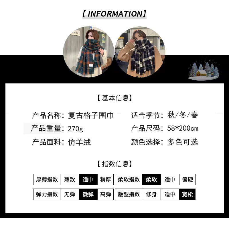 남성과 여성을위한 가을과 겨울 분위기 한국 캐시미어 스카프 따뜻한 복고풍 학생 긴 목도리 방탄 스카프스토어 가기
