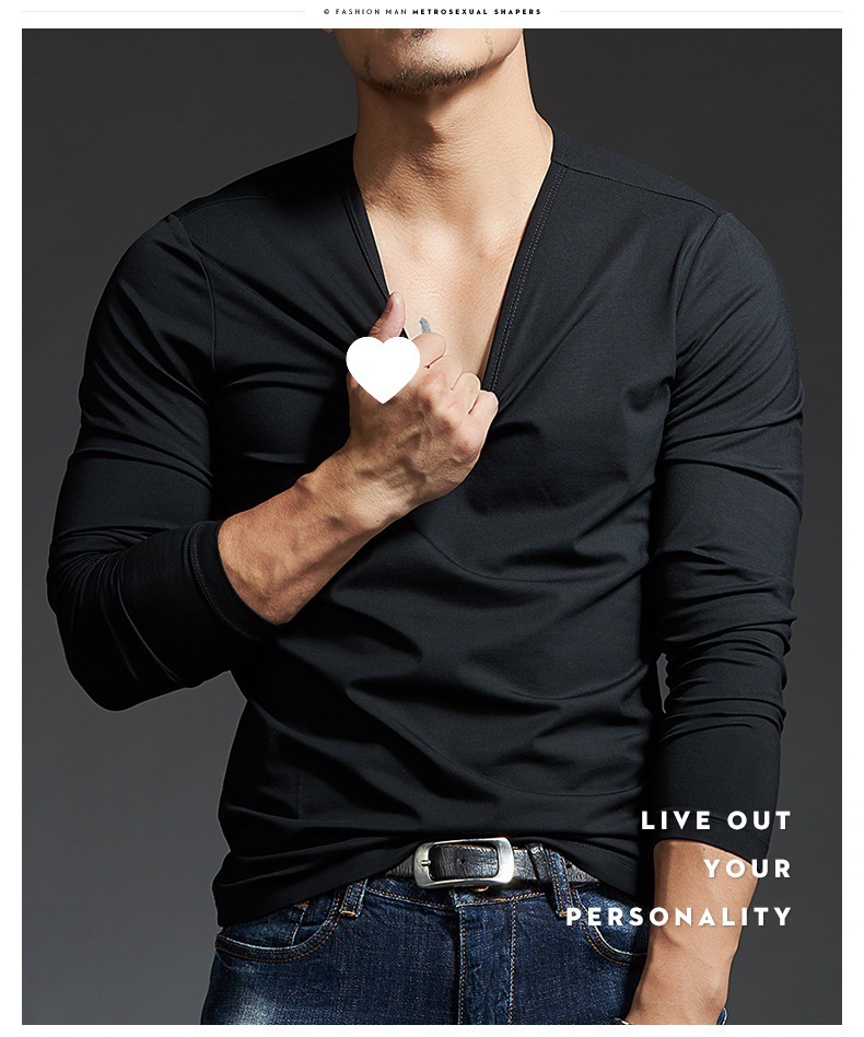 도매 V 넥 긴 소매 티셔츠 남성용 다크 그레이 슬림 바닥 셔츠 타이트한 내부 풀오버 트렌디 한 가을 재킷 남성스토어 가기