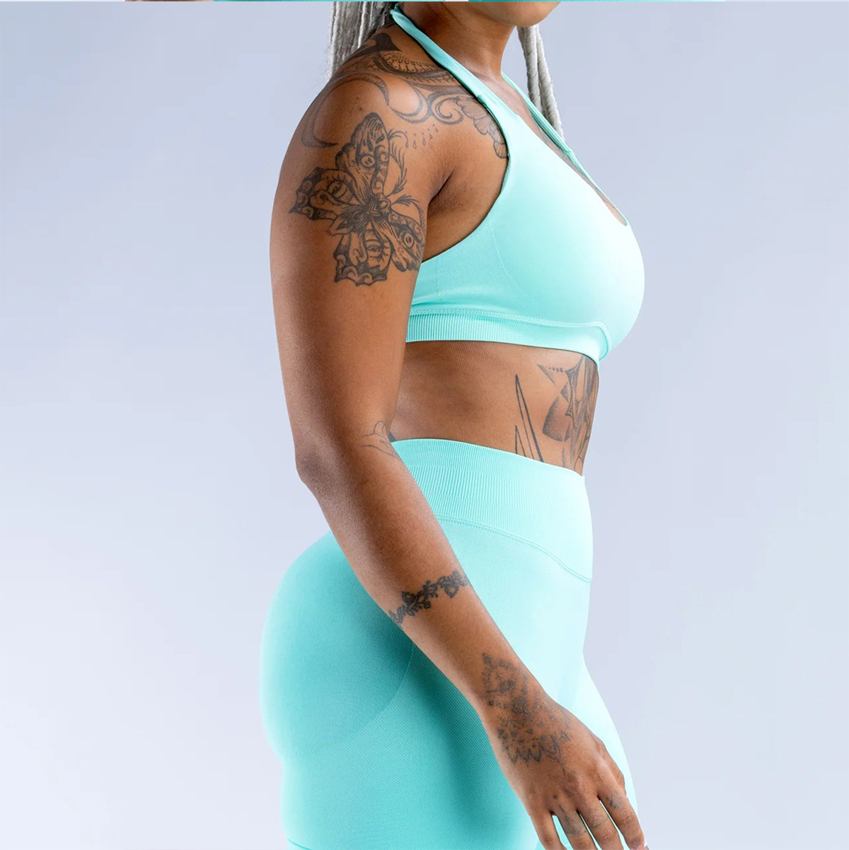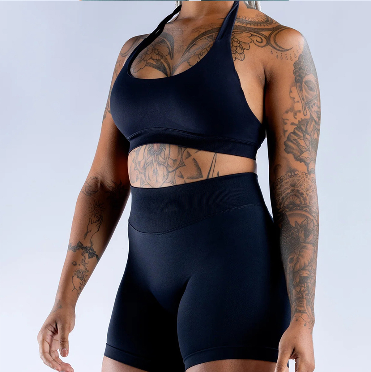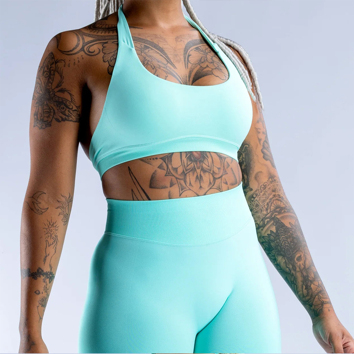 아마존 높은 탄성 초소형 매트 나일론 교수형 목 다시 원활한 스포츠 브라 백리스 충격 방지 요가 브래지어 여성