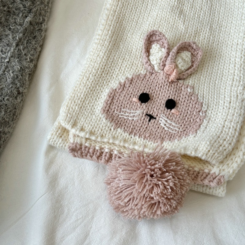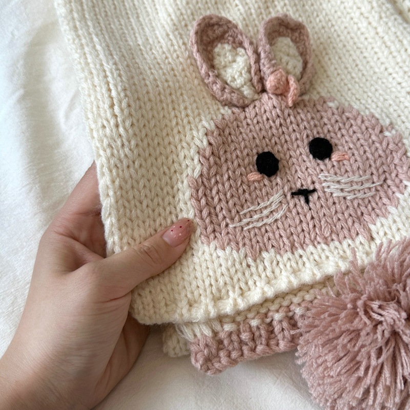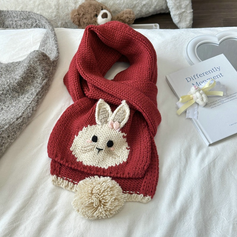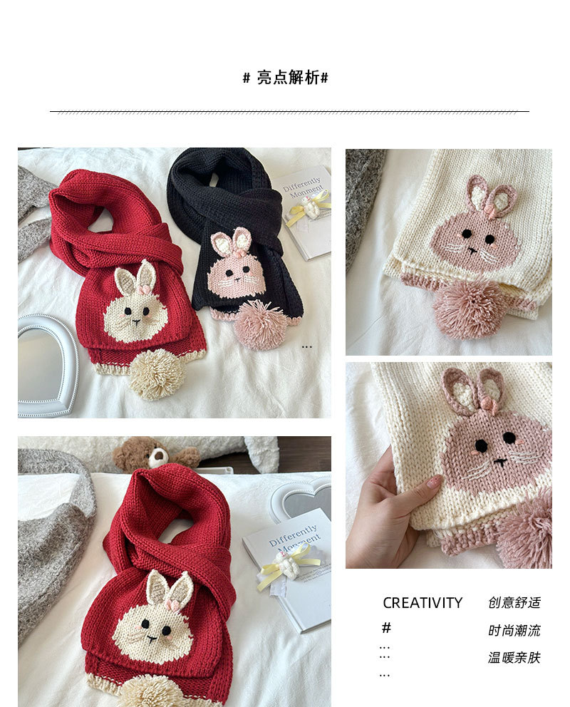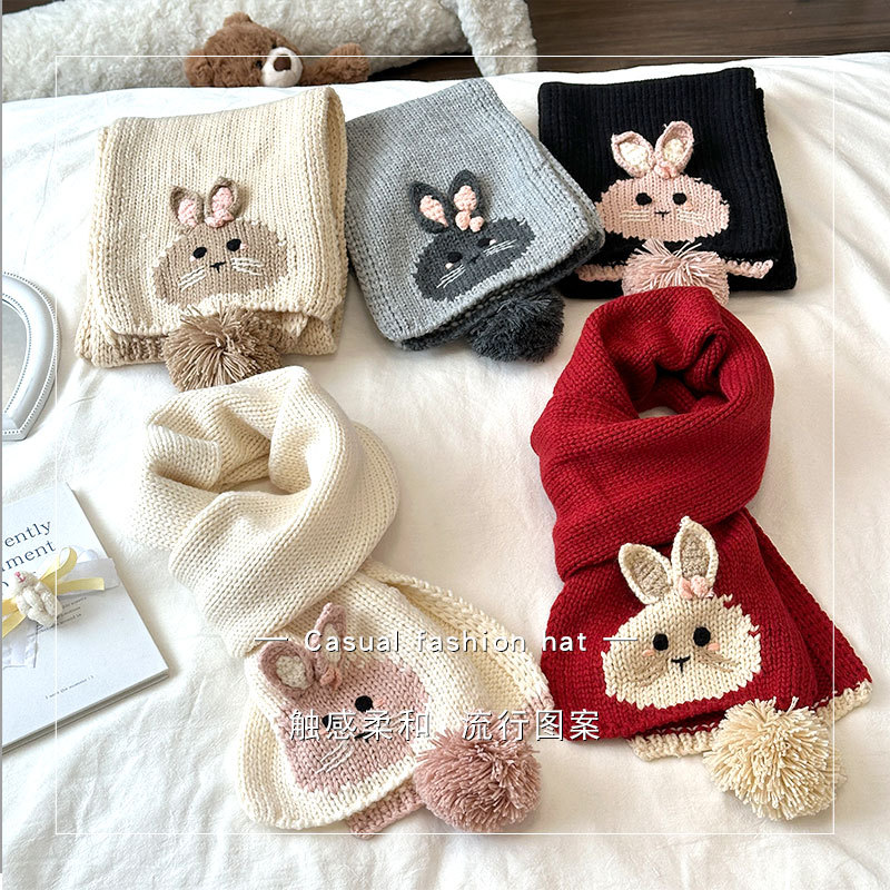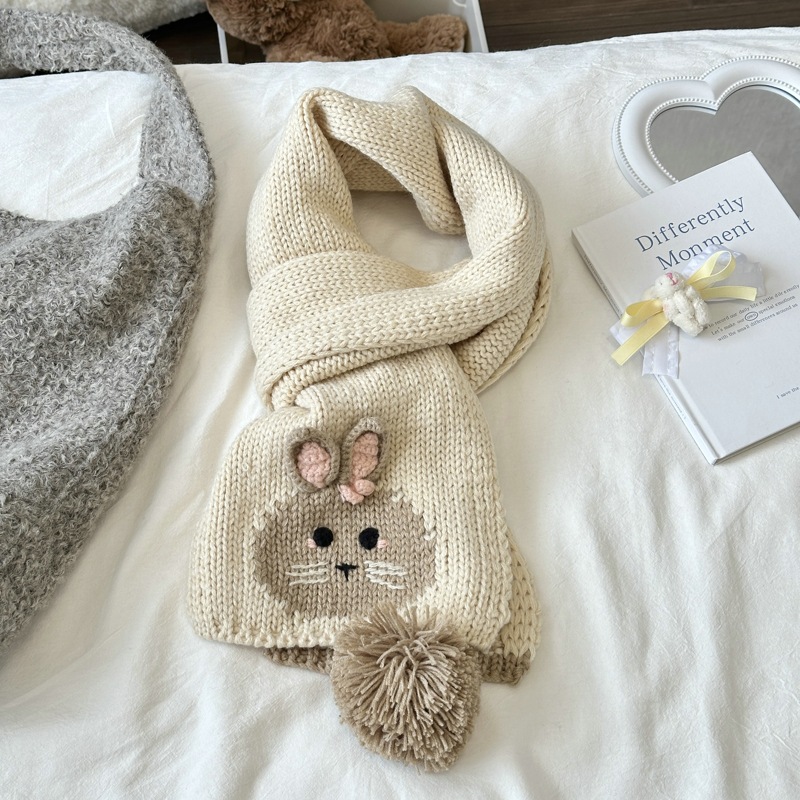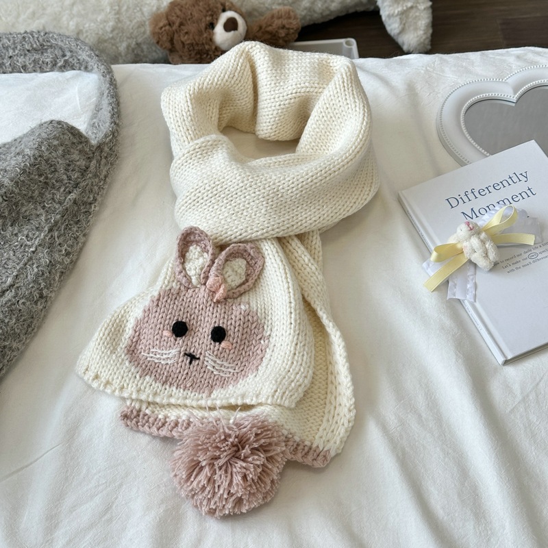 귀여운 만화 토끼 울 스카프 여성의 가을과 겨울 따뜻한 목 학생 다용도 흰색 손 니트 스카프스토어 가기