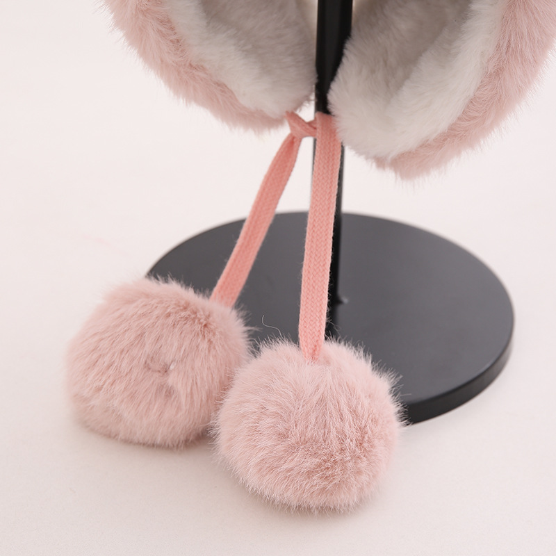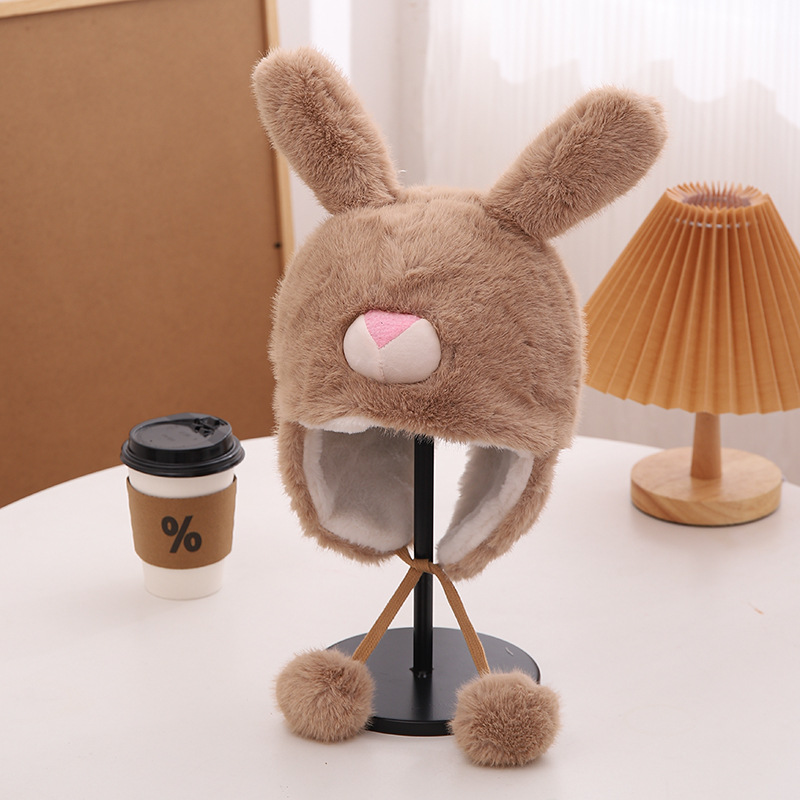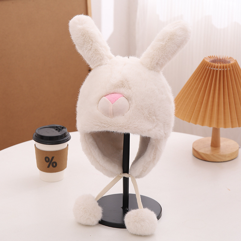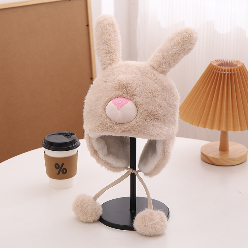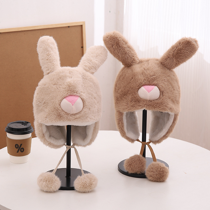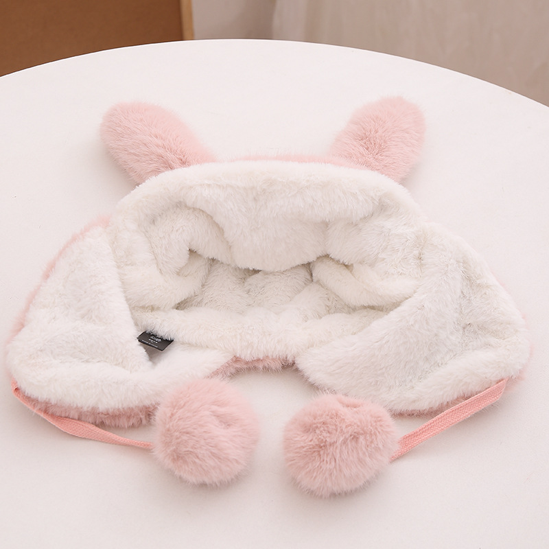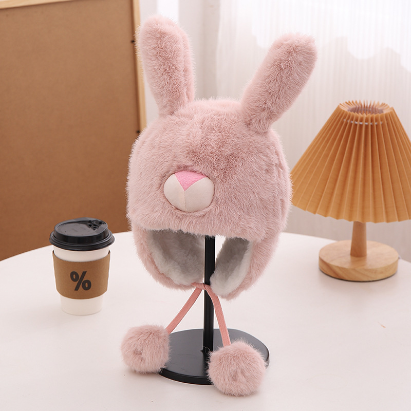 어린이 모자 2024 가을 겨울 새 토끼 귀 푹신한 모자 한국 만화 풀오버 캡 방풍 귀 보호 레이 펑 캡