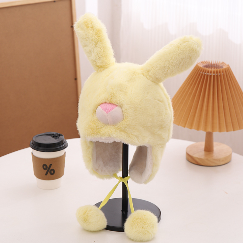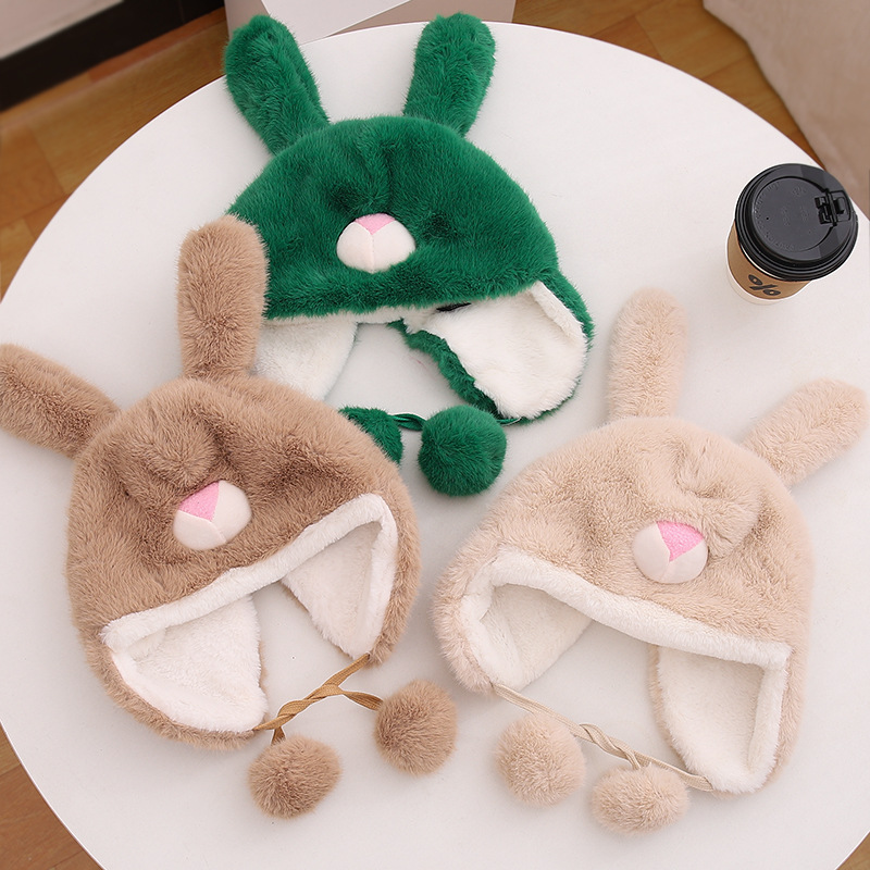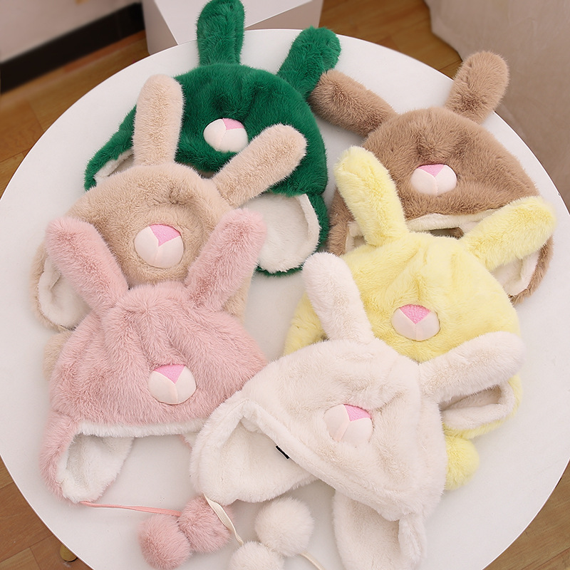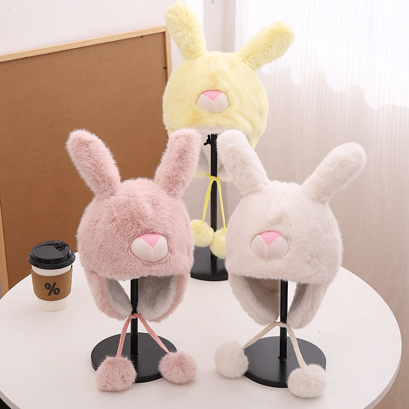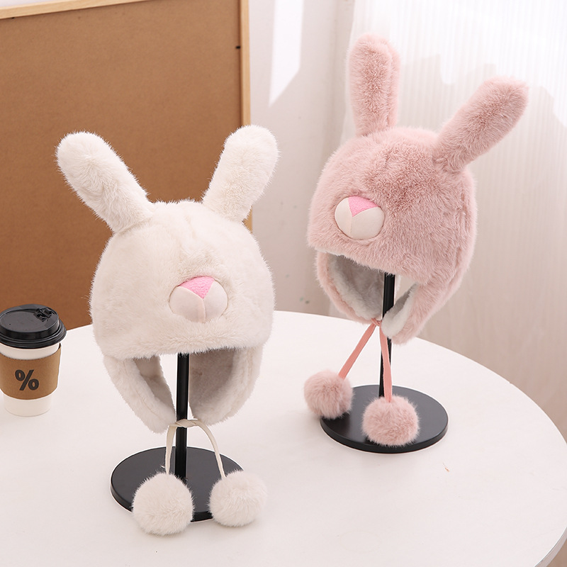 어린이 모자 2024 가을 겨울 새 토끼 귀 푹신한 모자 한국 만화 풀오버 캡 방풍 귀 보호 레이 펑 캡스토어 가기