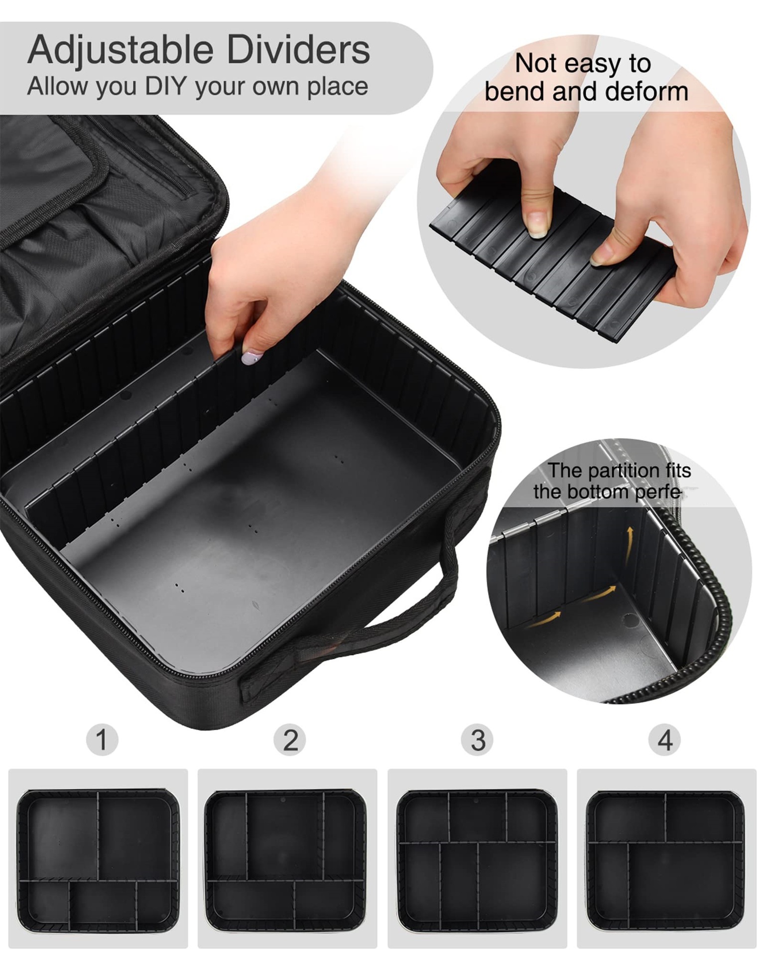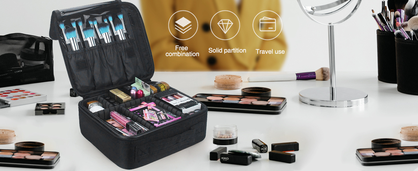 여행 메이크업 가방 휴대용 스토리지 아티스트 화장실 조정 가능한 파티션을 가진 면도기 보관 가방