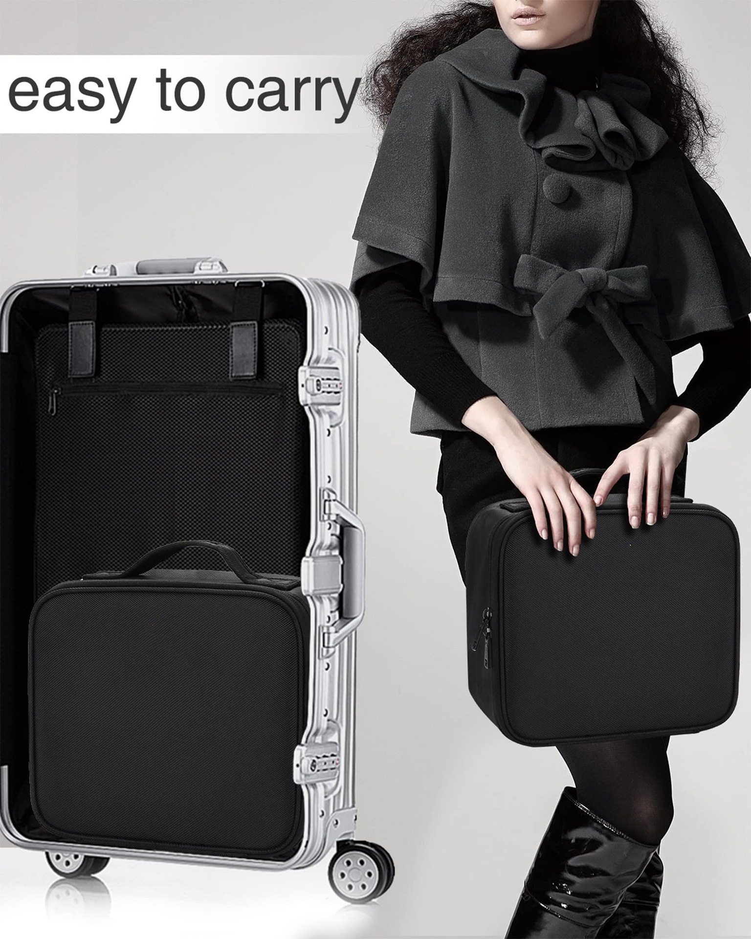 여행 메이크업 가방 휴대용 스토리지 아티스트 화장실 조정 가능한 파티션을 가진 면도기 보관 가방스토어 가기