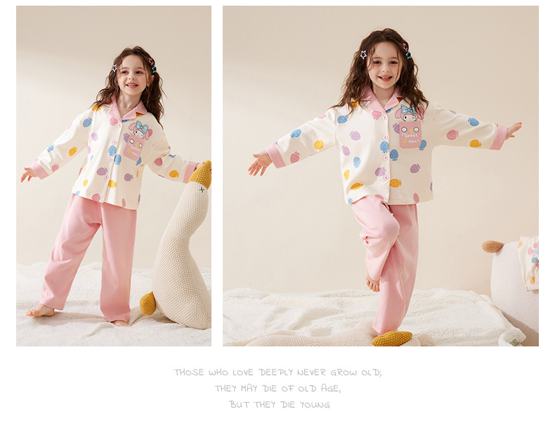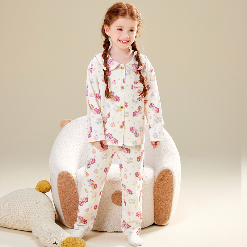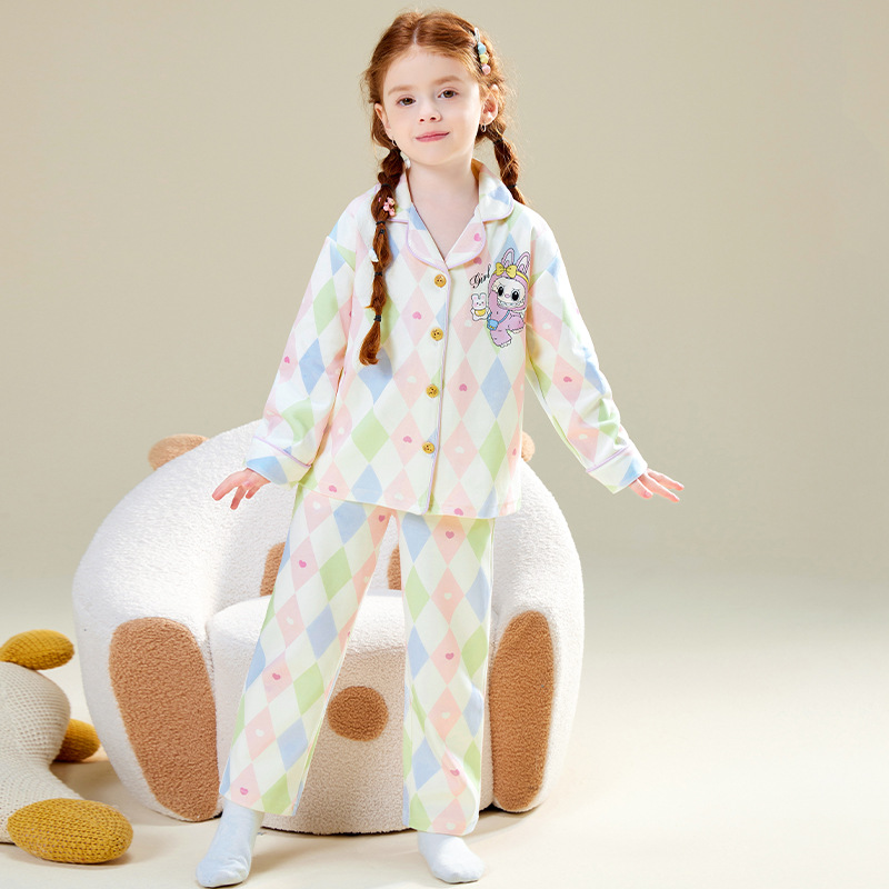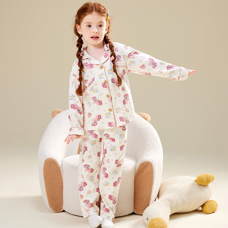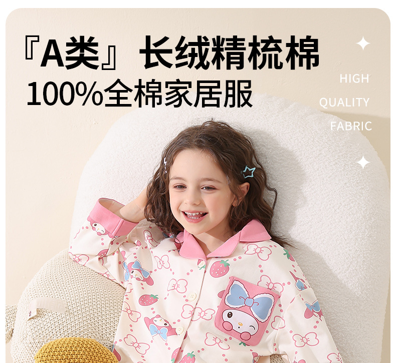 클래스 A 면 어린이 잠옷 소녀 긴 소매 봄과 가을 소녀 만화 면화 홈 옷 세트 2025 새로운스토어 가기