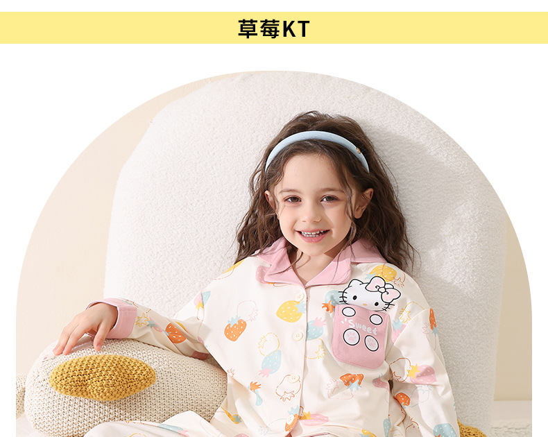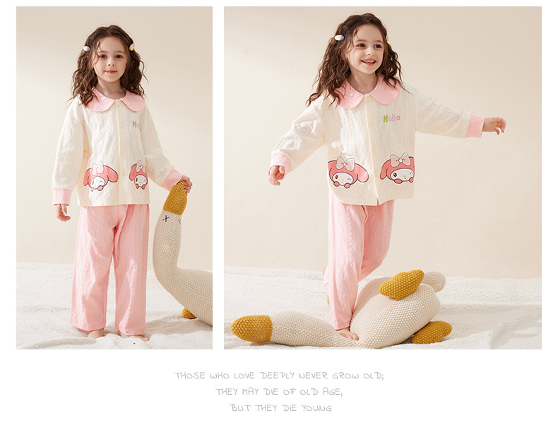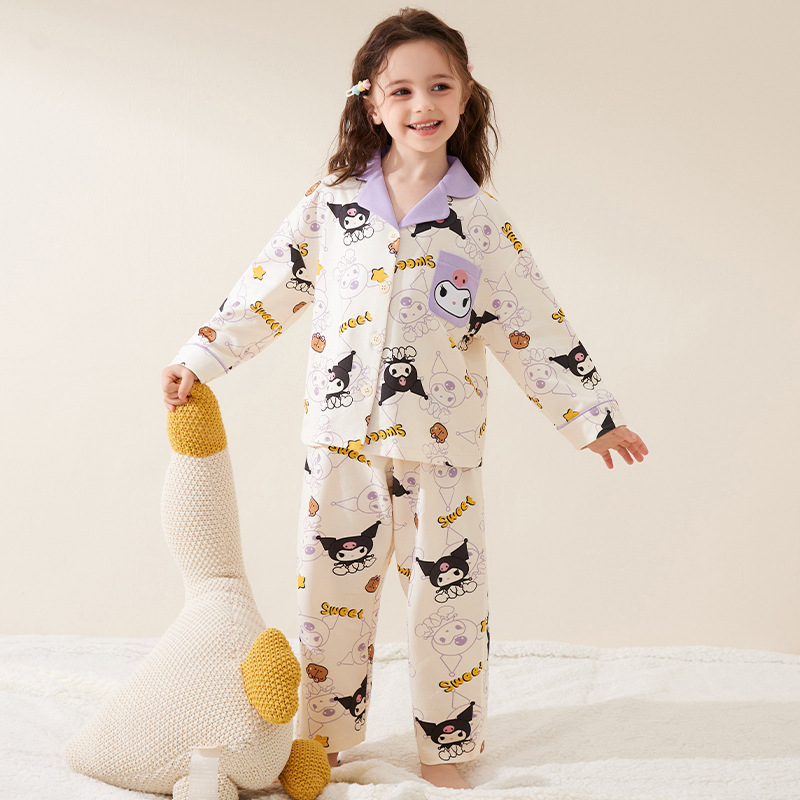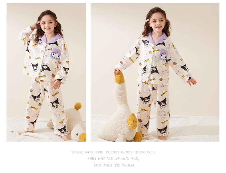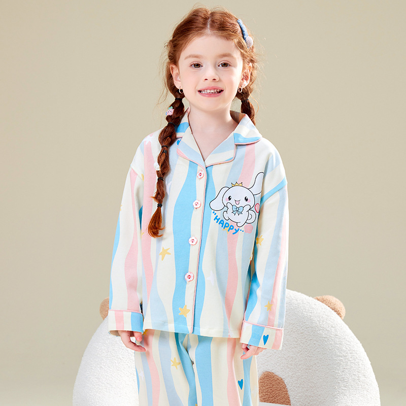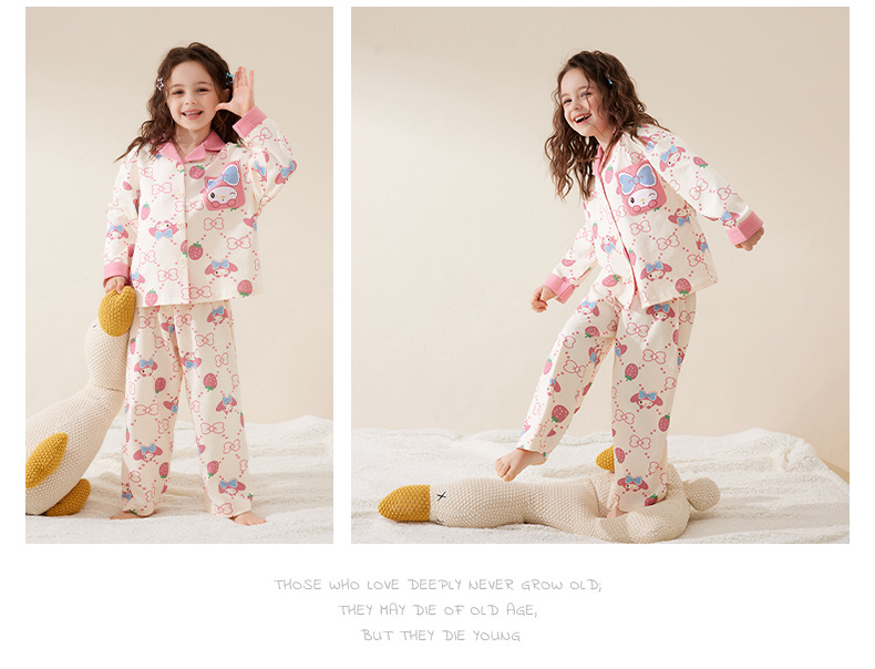 클래스 A 면 어린이 잠옷 소녀 긴 소매 봄과 가을 소녀 만화 면화 홈 옷 세트 2025 새로운스토어 가기
