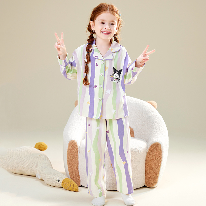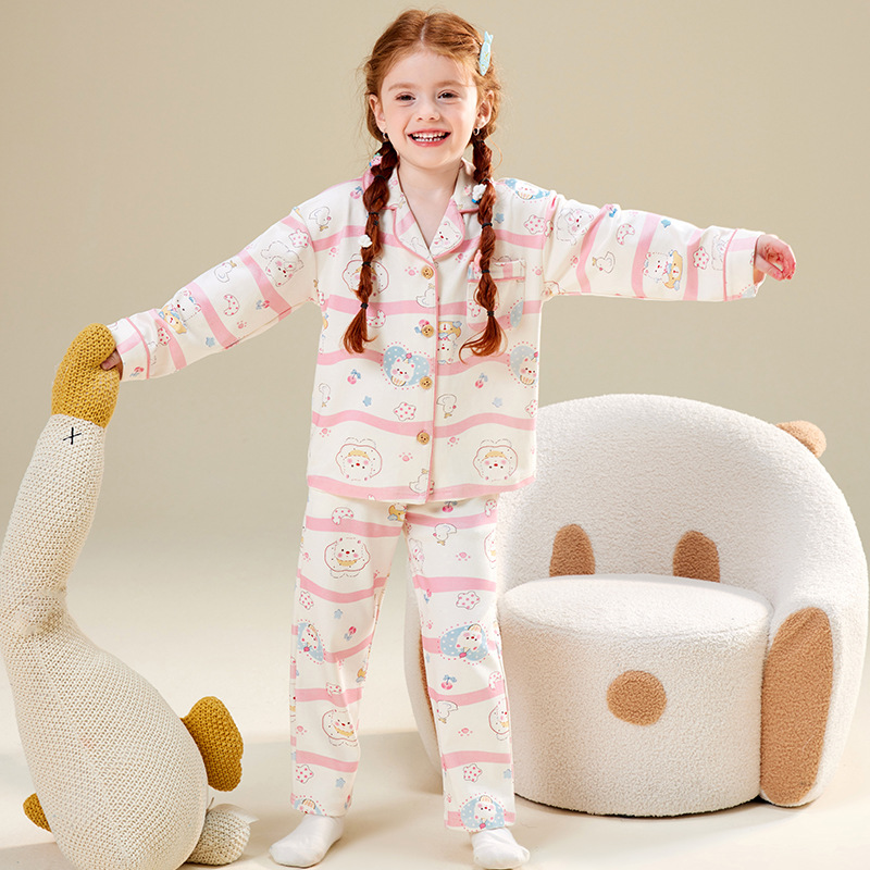 클래스 A 면 어린이 잠옷 소녀 긴 소매 봄과 가을 소녀 만화 면화 홈 옷 세트 2025 새로운