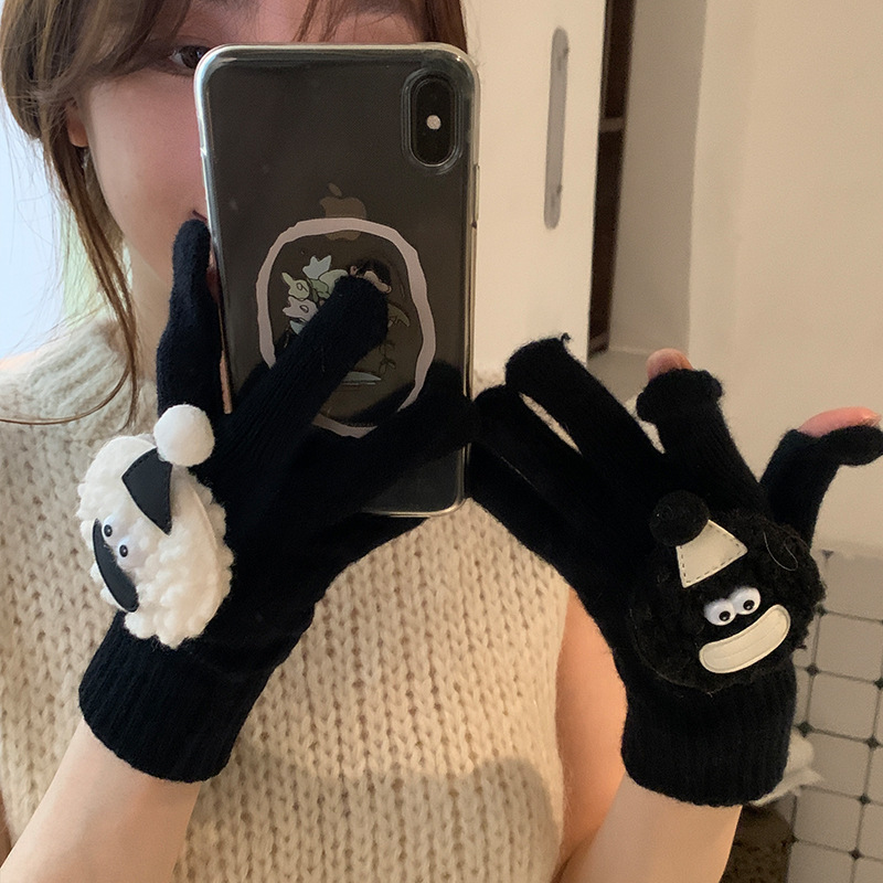 여성용 겨울 방한 장갑, 터치스크린 사용 가능, 따뜻함 유지, 학생용, 사이클링, 손가락 노출, 휴대폰 사용, 야외 활동, 달콤한 스타일