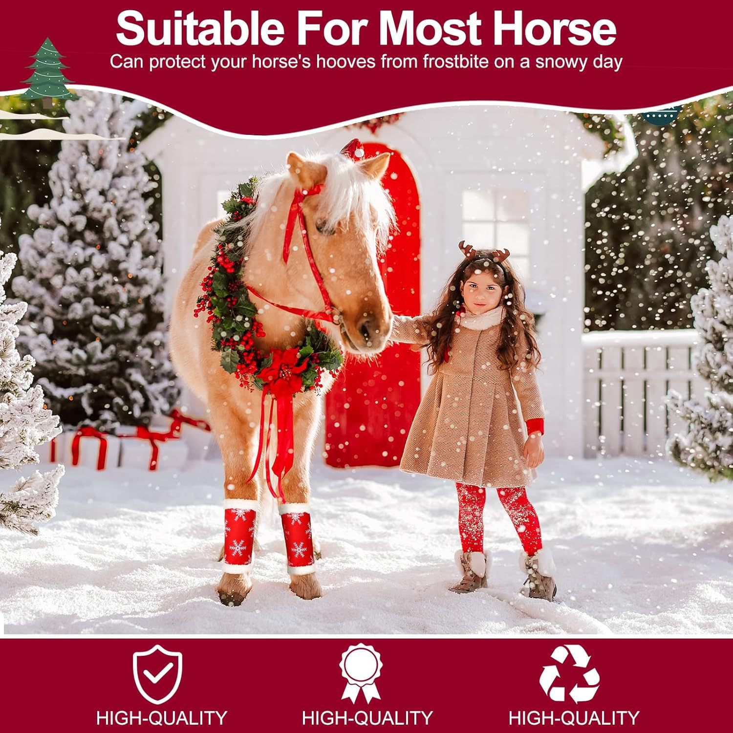 크리스마스 눈송이 말 다리 랩 애완 동물 말 다리 스탠드 업 느슨한 크리스마스 퍼레이드를 위해 편안하게