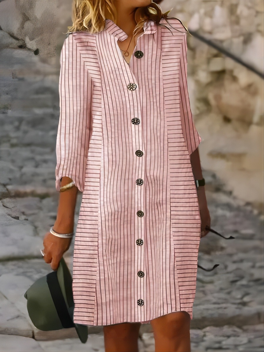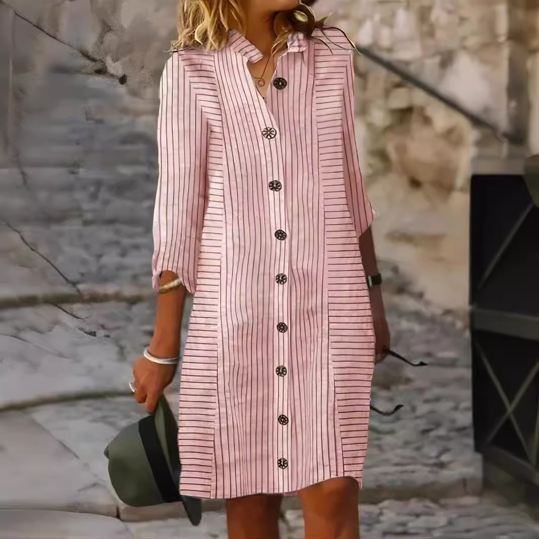 2024 새로운 국경 대외 무역 유럽과 미국 여성의 봄과 가을 아마존 대형 스트라이프 버튼 스트라이프 셔츠 원피스스토어 가기