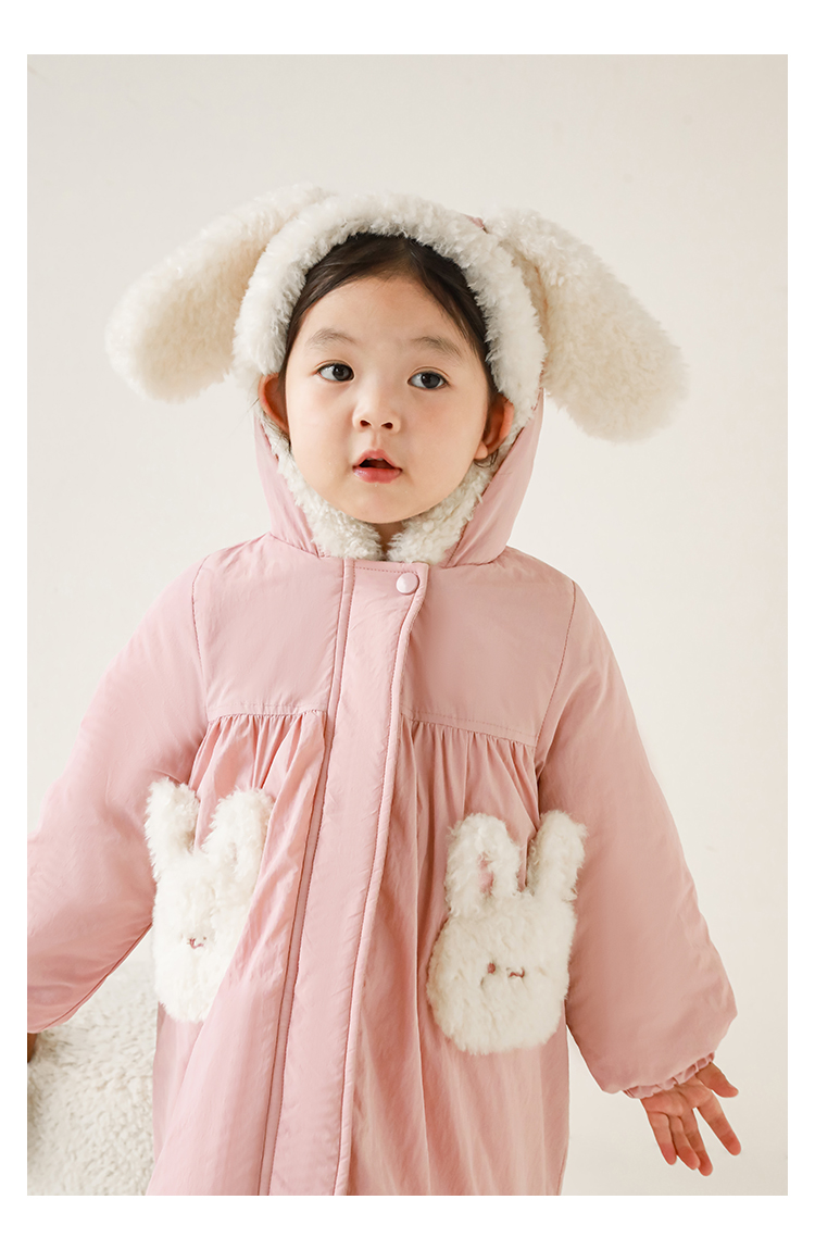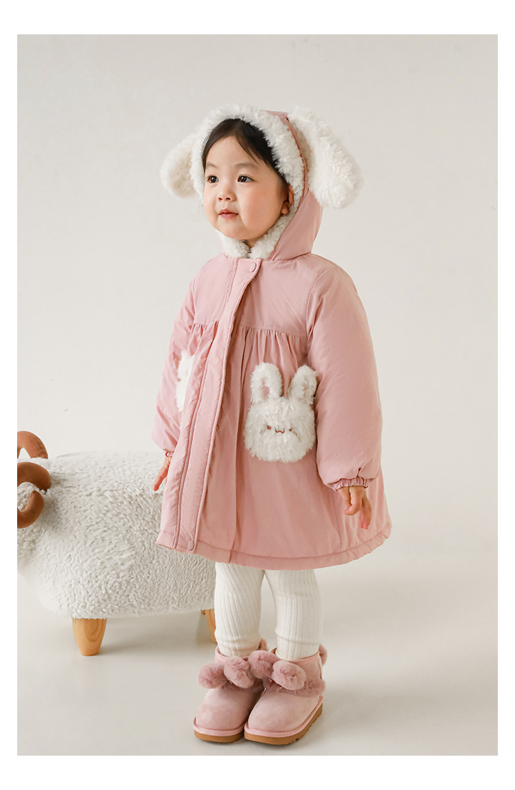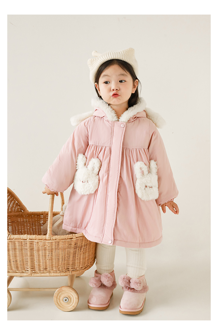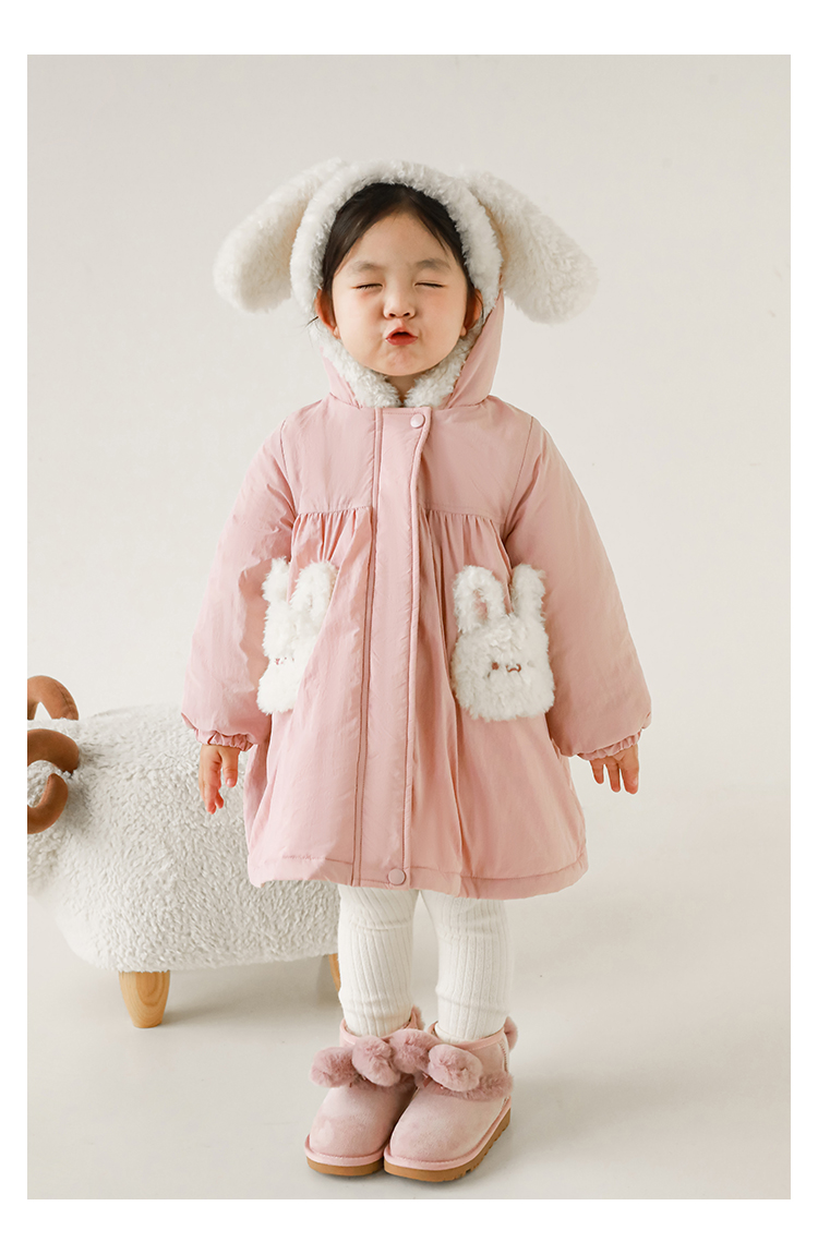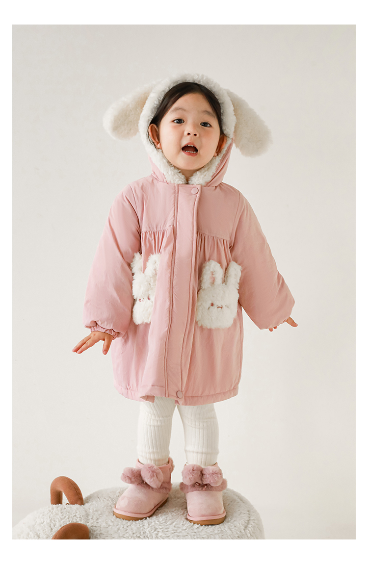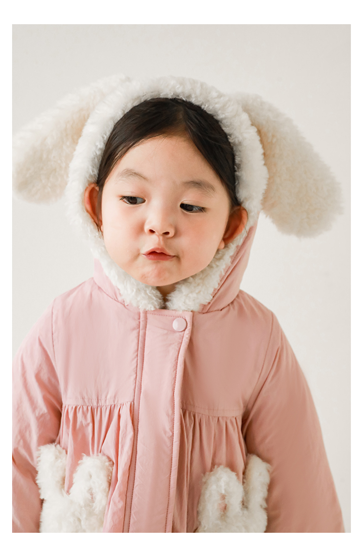 여자 우유 토끼 엘프 따뜻한면 패딩 코트 겨울 어린이 귀여운 스노우 벨벳 스티칭 후드 코튼 패딩 코트