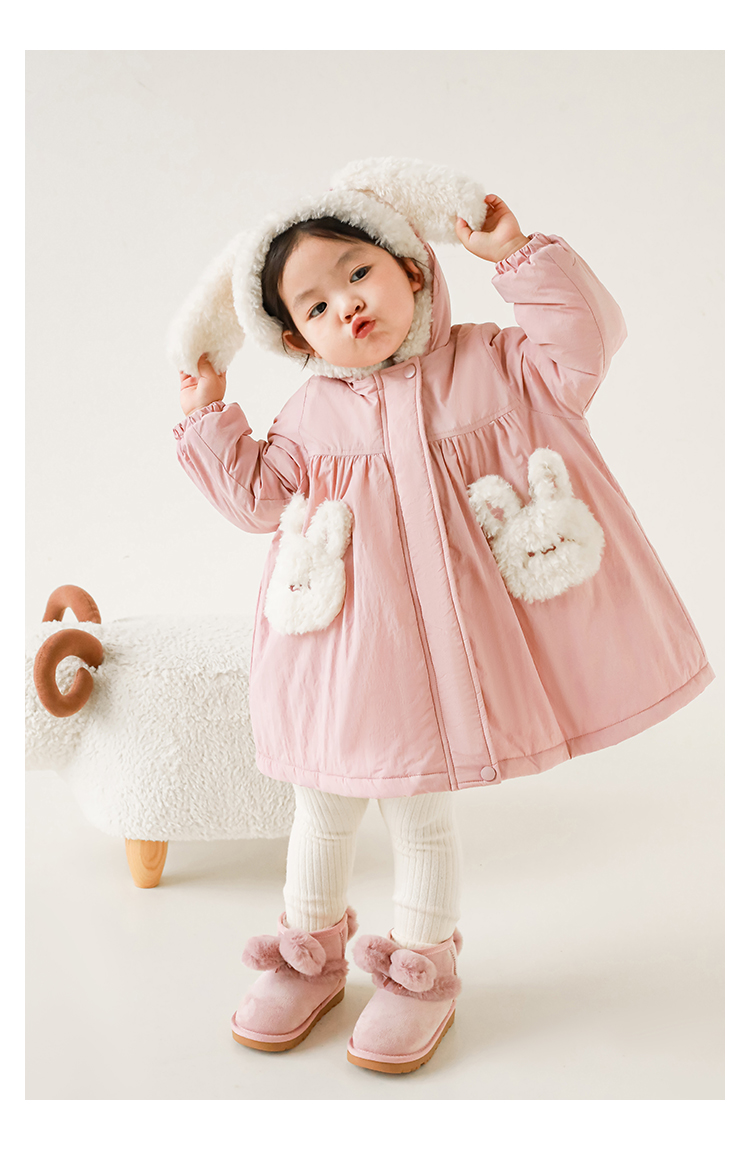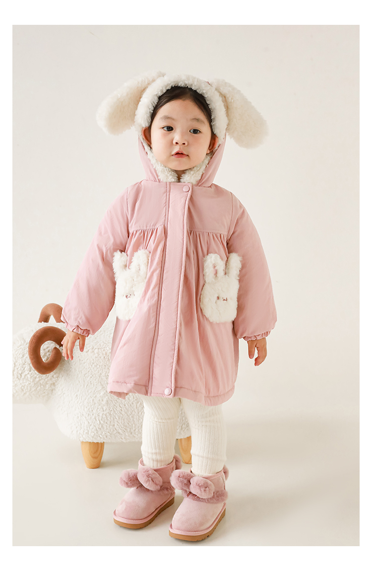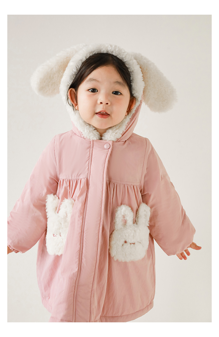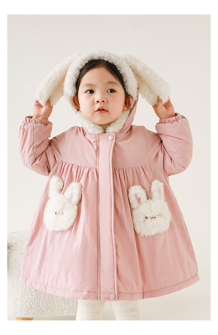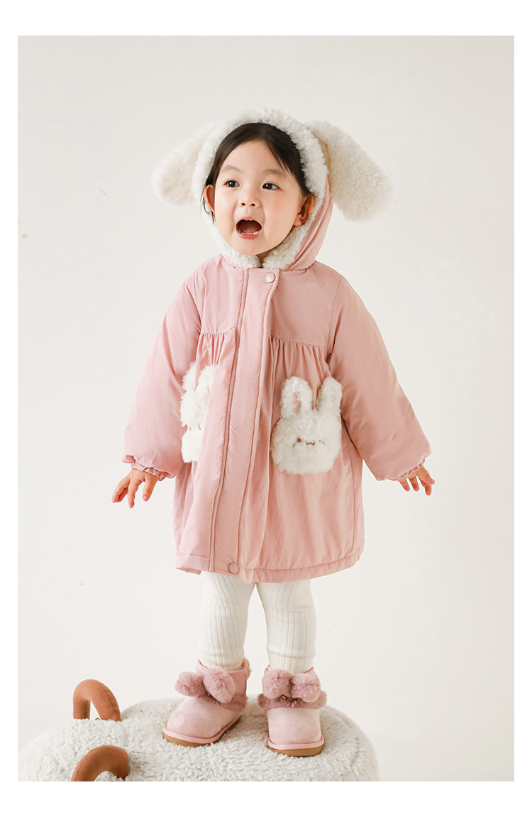 여자 우유 토끼 엘프 따뜻한면 패딩 코트 겨울 어린이 귀여운 스노우 벨벳 스티칭 후드 코튼 패딩 코트