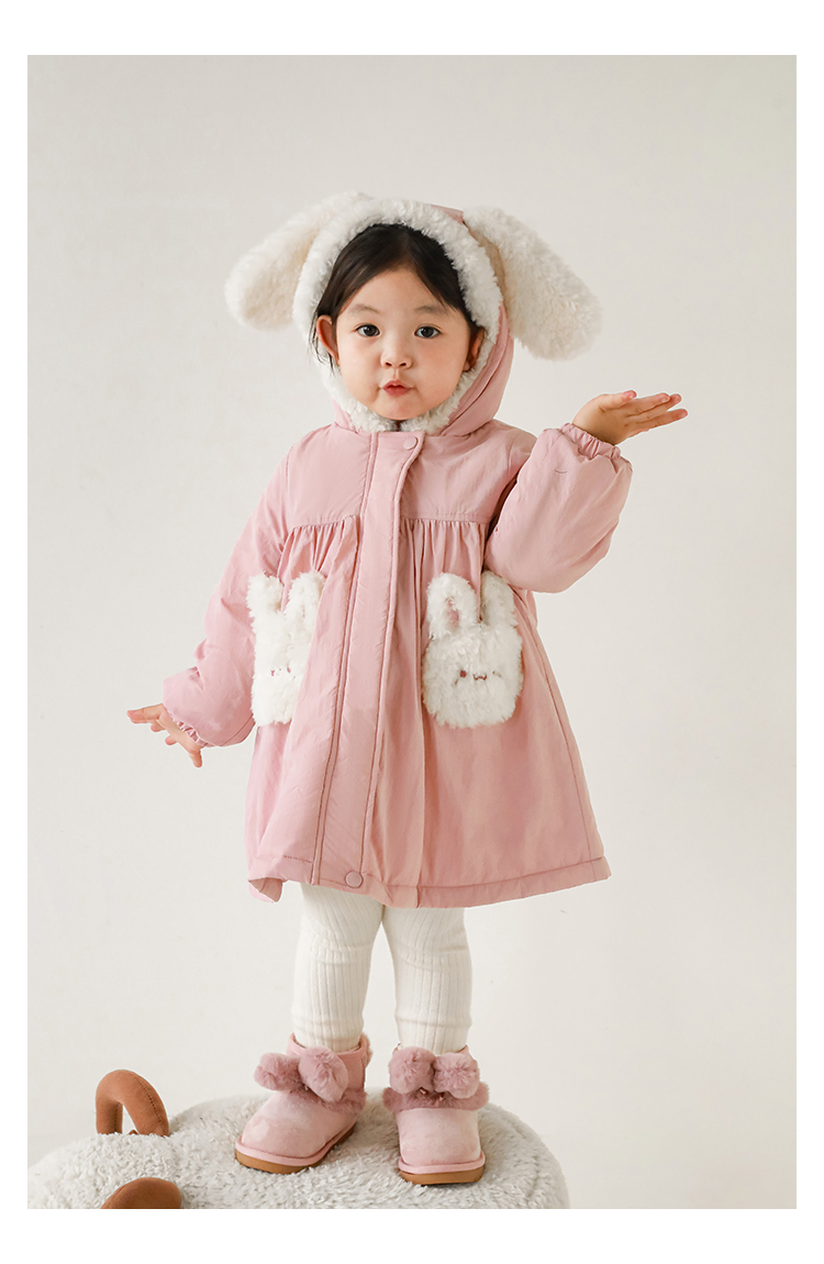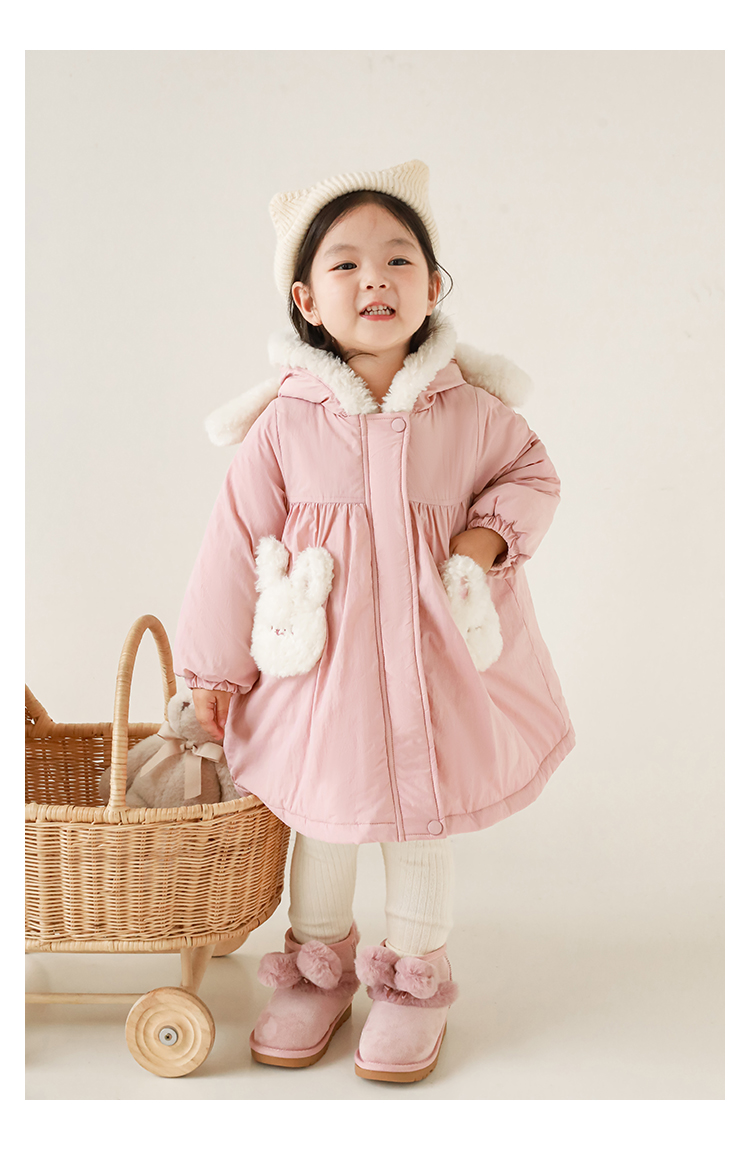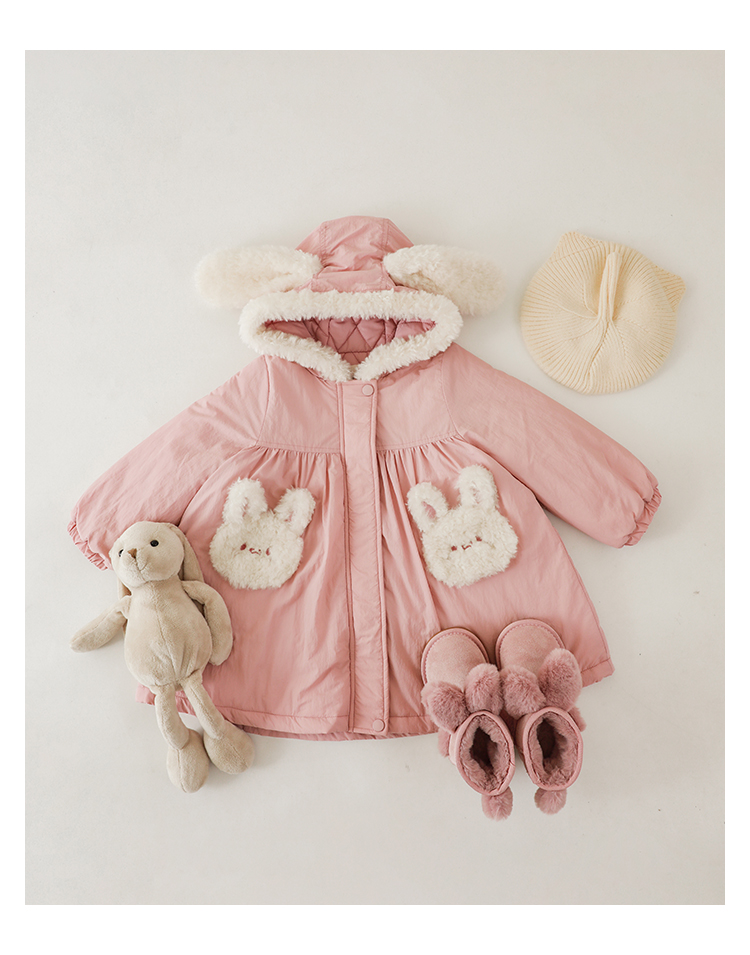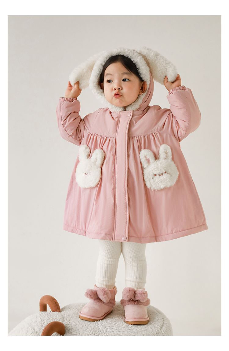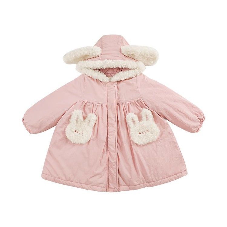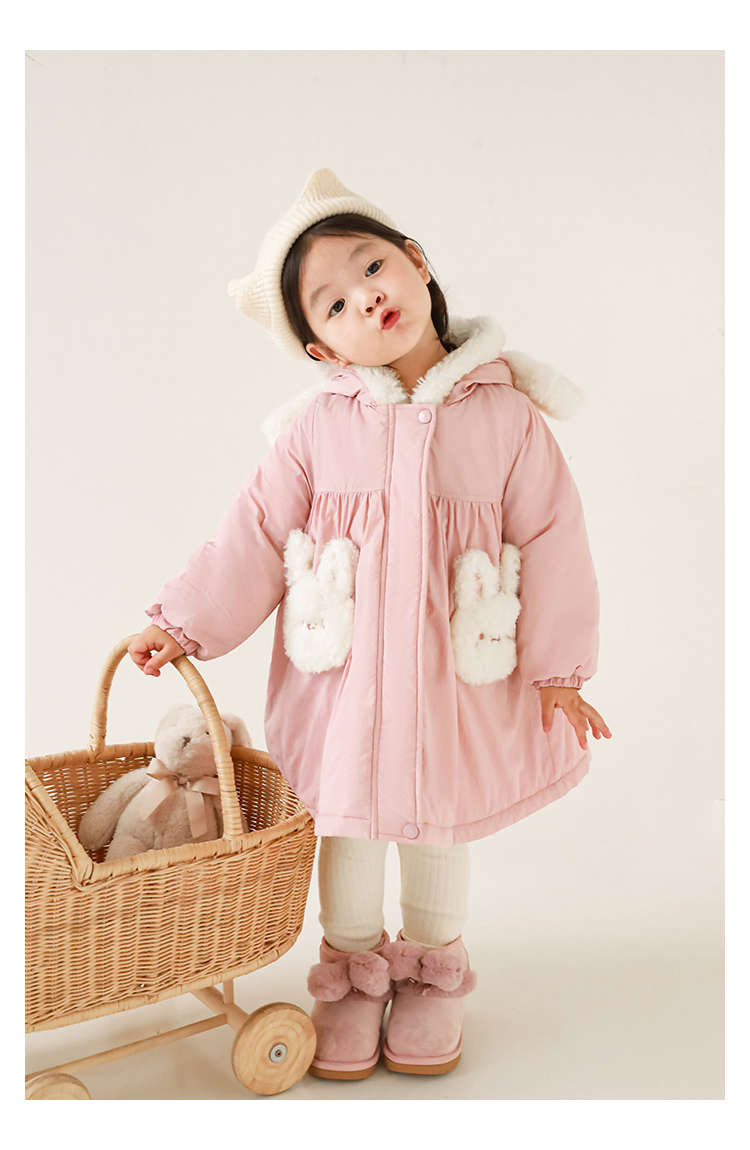 여자 우유 토끼 엘프 따뜻한면 패딩 코트 겨울 어린이 귀여운 스노우 벨벳 스티칭 후드 코튼 패딩 코트