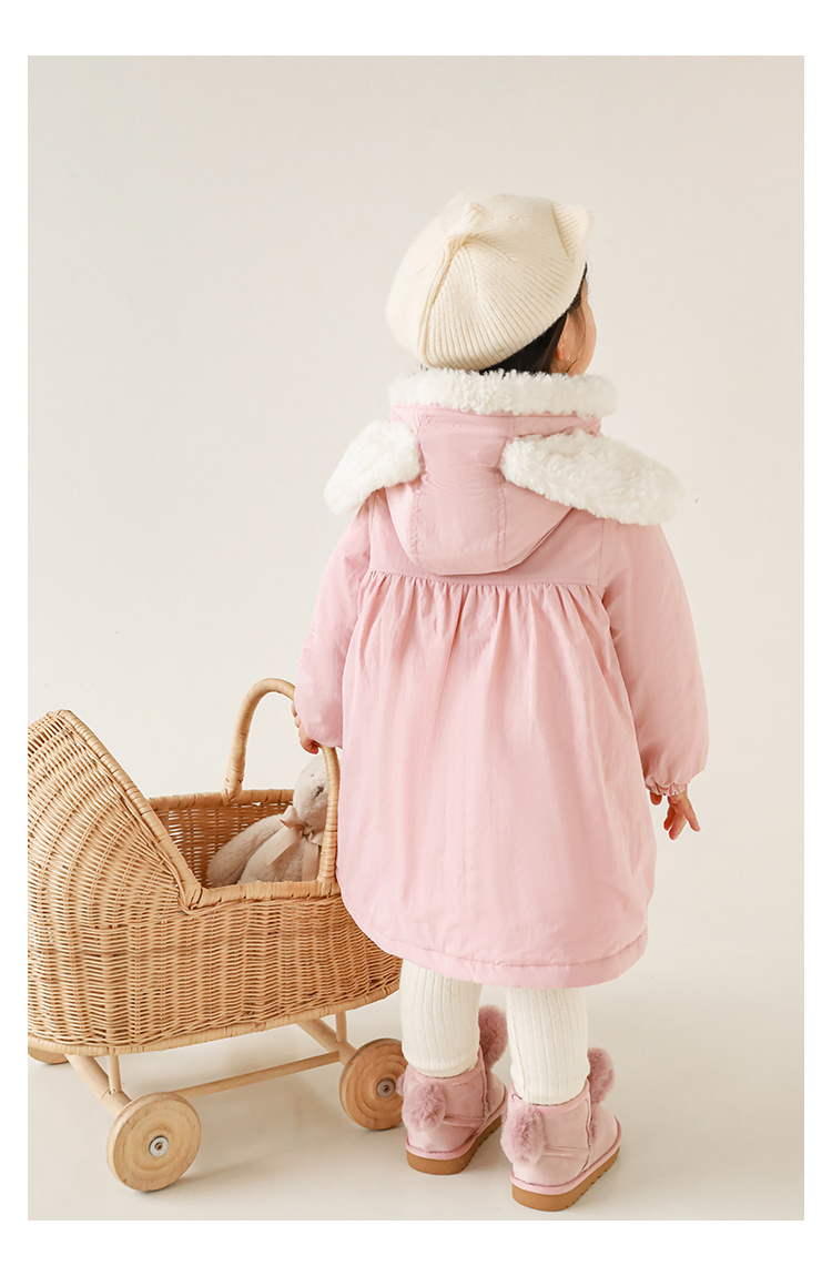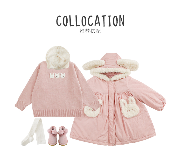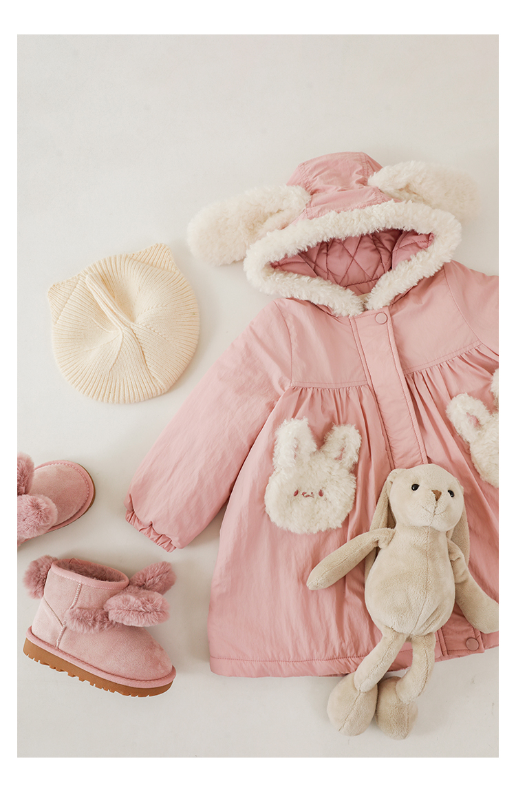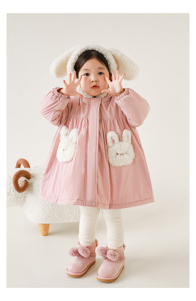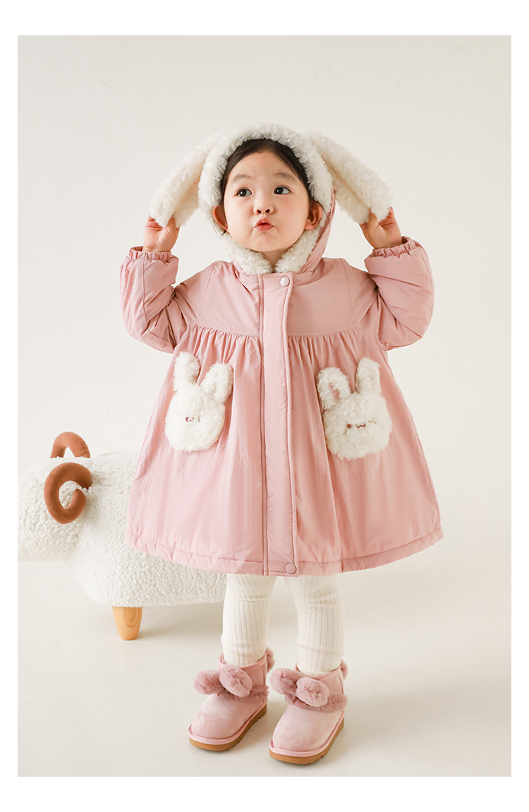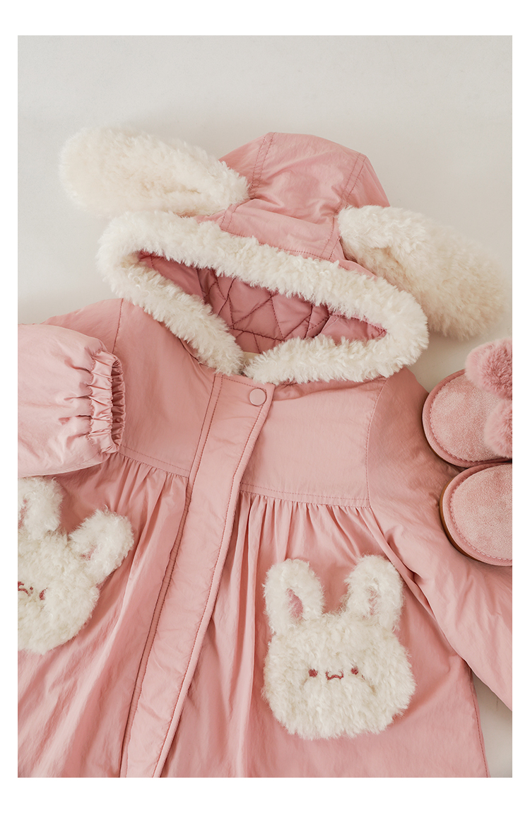 여자 우유 토끼 엘프 따뜻한면 패딩 코트 겨울 어린이 귀여운 스노우 벨벳 스티칭 후드 코튼 패딩 코트