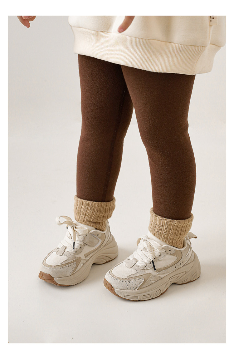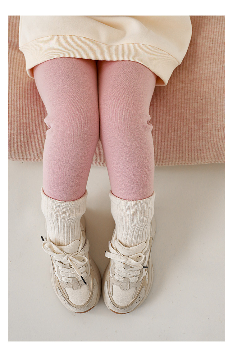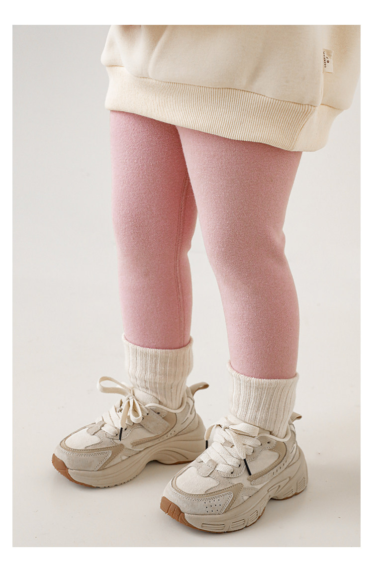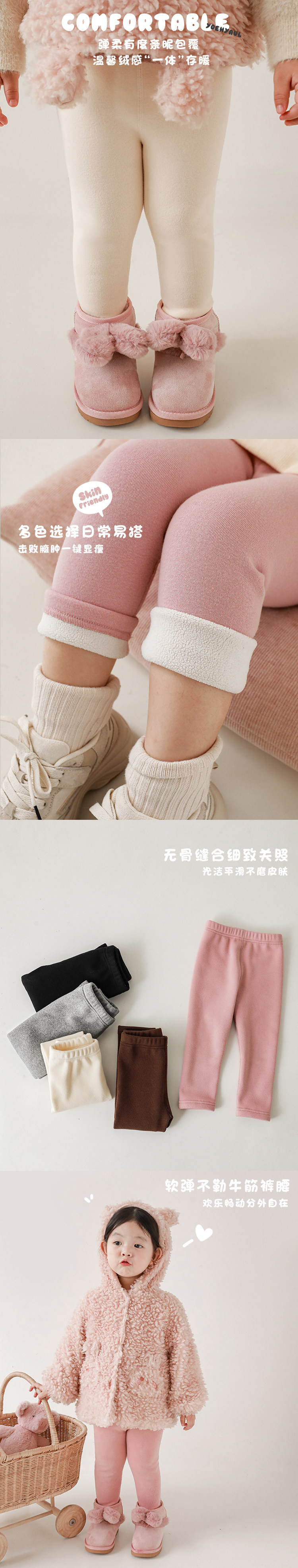 Wuri Boo Girl 친밀한 스티커 뼈없는 스티치 기모 레깅스 겨울 새 어린이 부드러운 바지