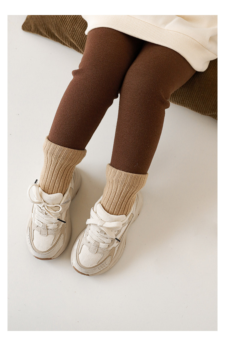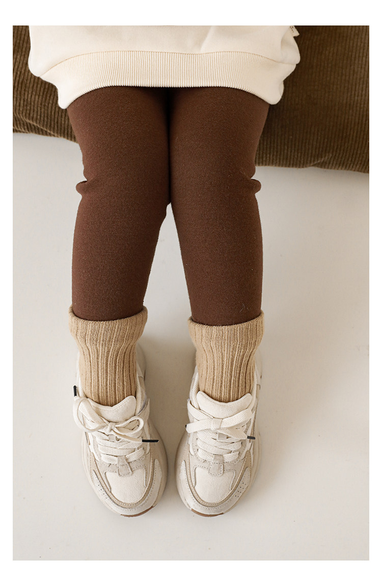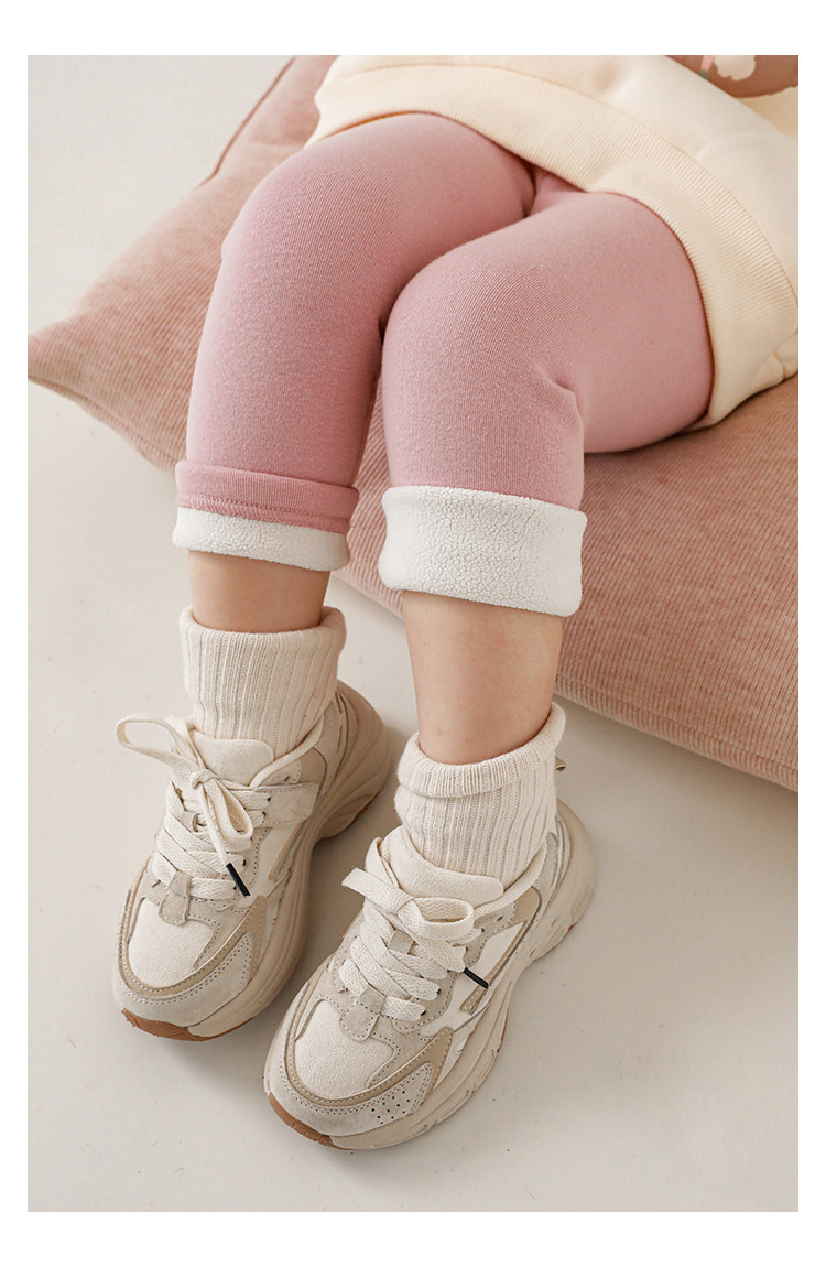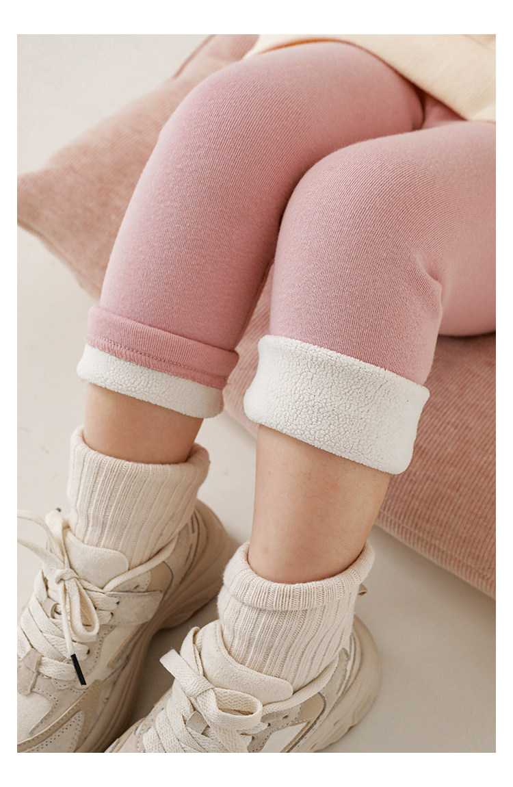 Wuri Boo Girl 친밀한 스티커 뼈없는 스티치 기모 레깅스 겨울 새 어린이 부드러운 바지