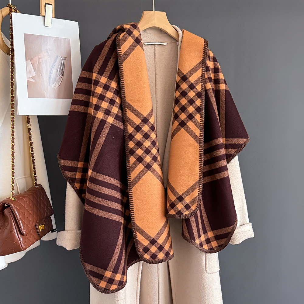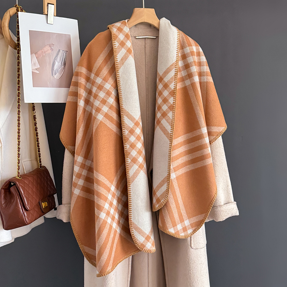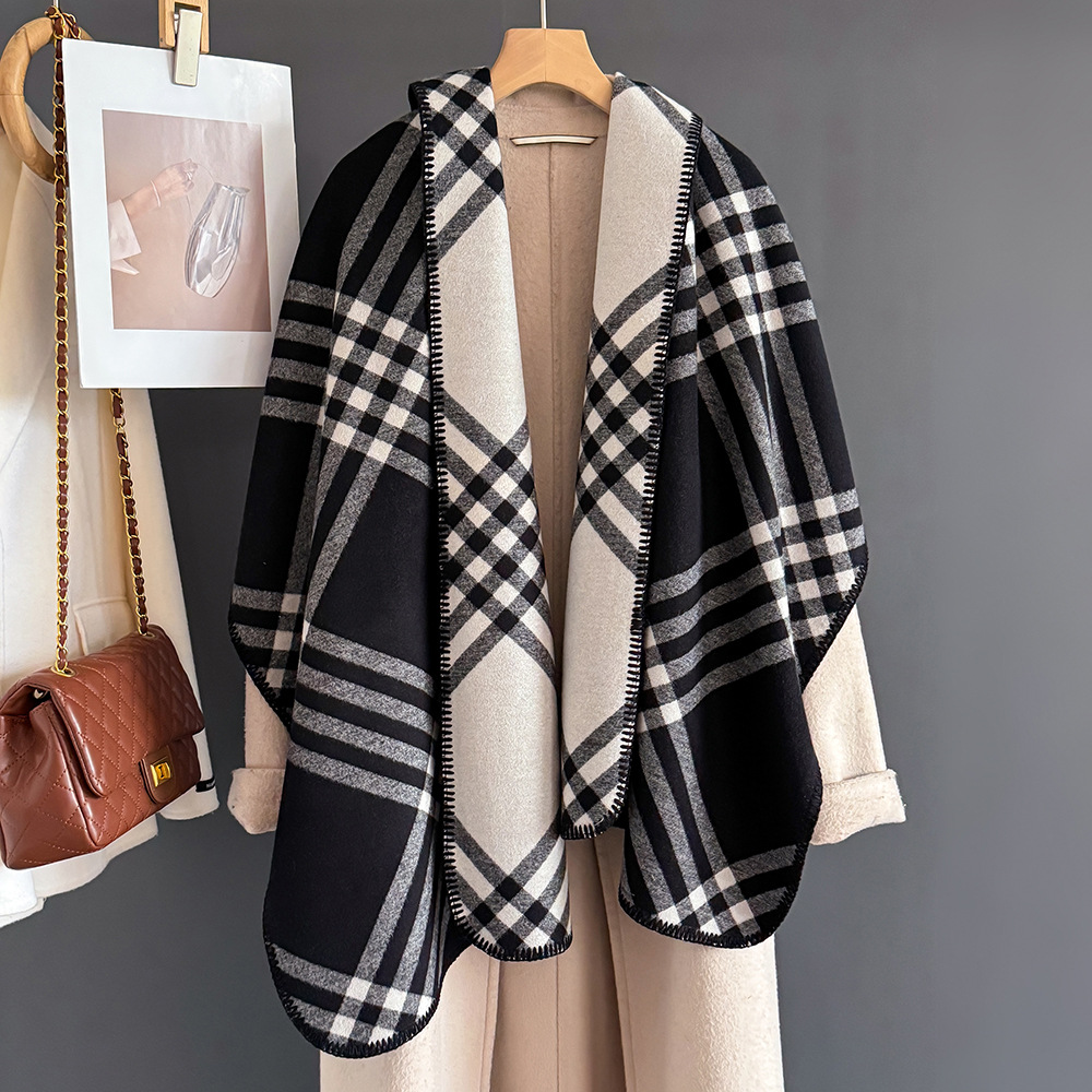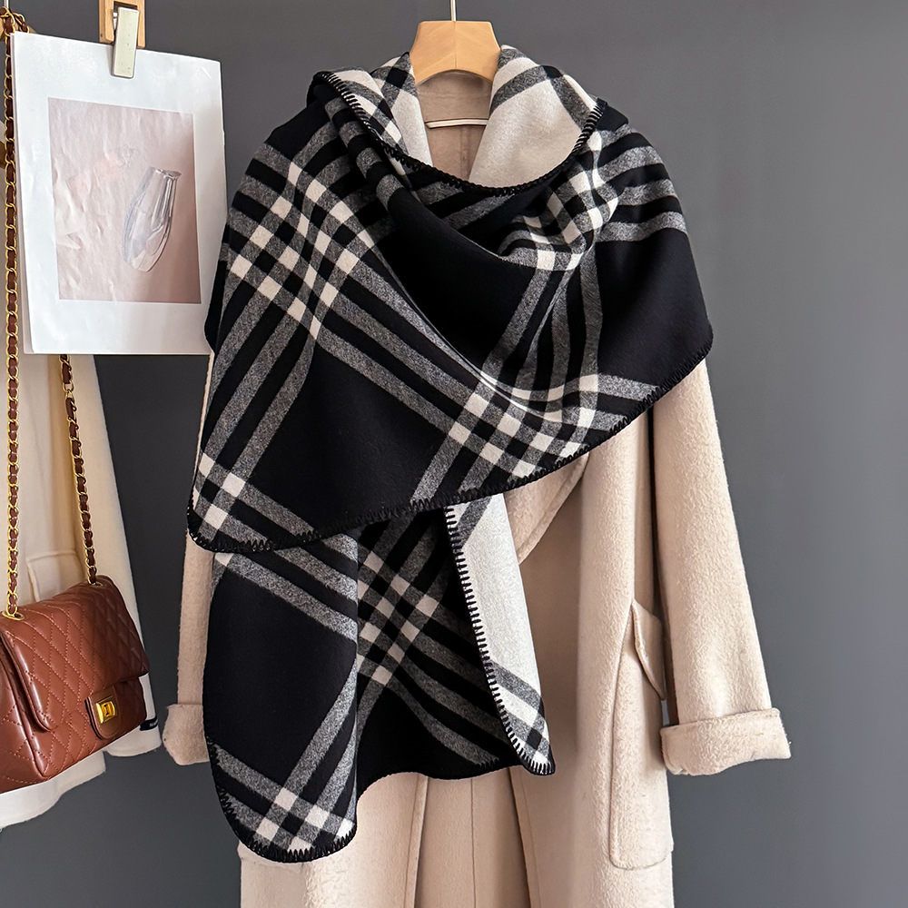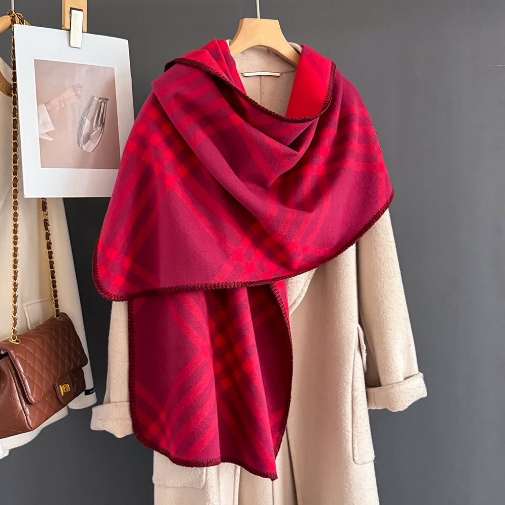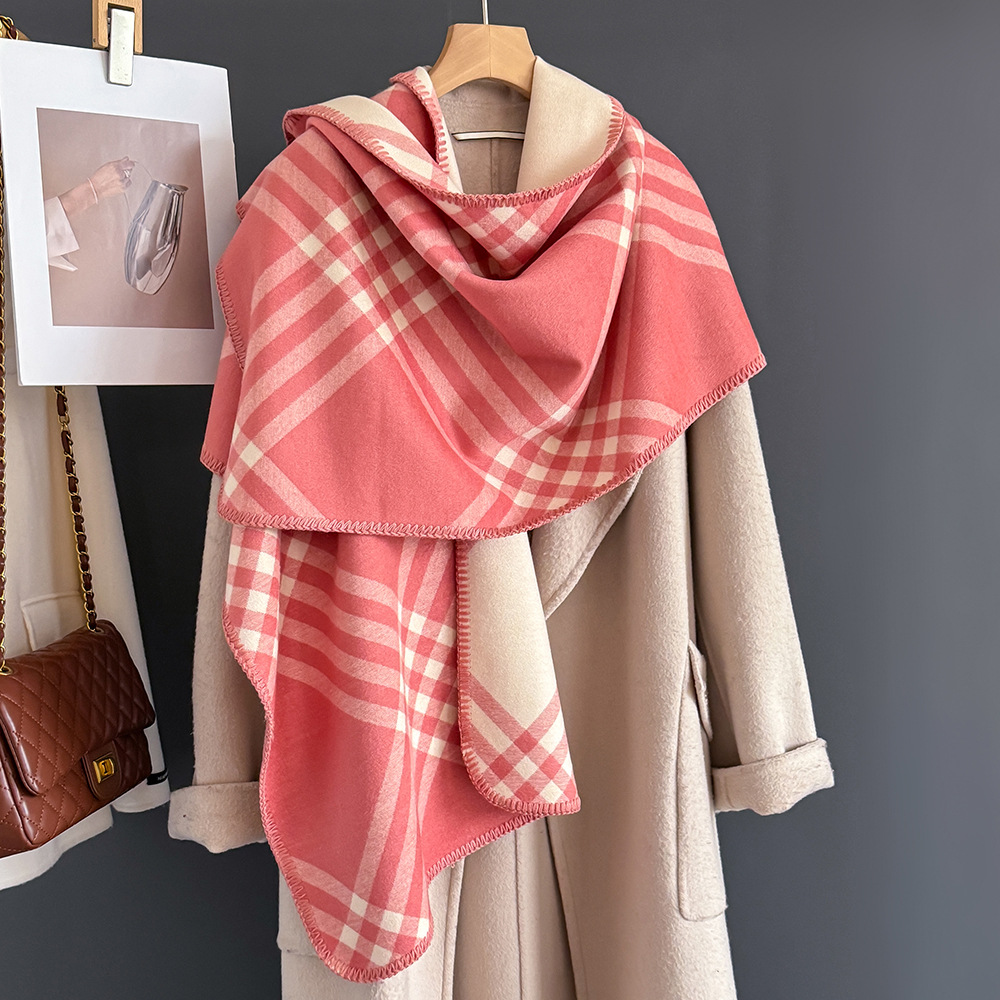 2025년 신상 클래식 체크 무늬 모조 캐시미어 스카프 여성용 고급 패션 캐주얼 양면 숄 따뜻한 목도리