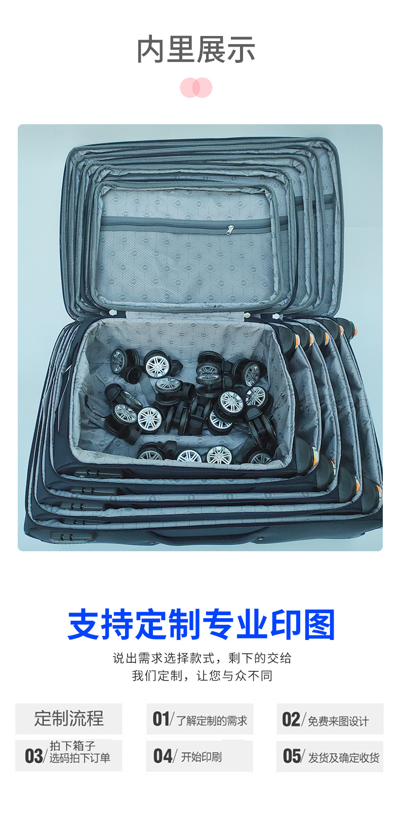 대용량 옥스포드 천 트롤리 케이스 도매 국경 로고 인쇄 여행 수하물 이동식 휠 보딩 박스 남성