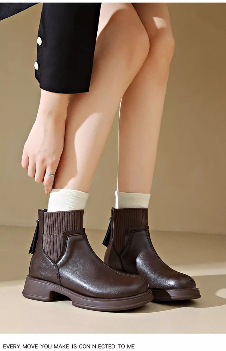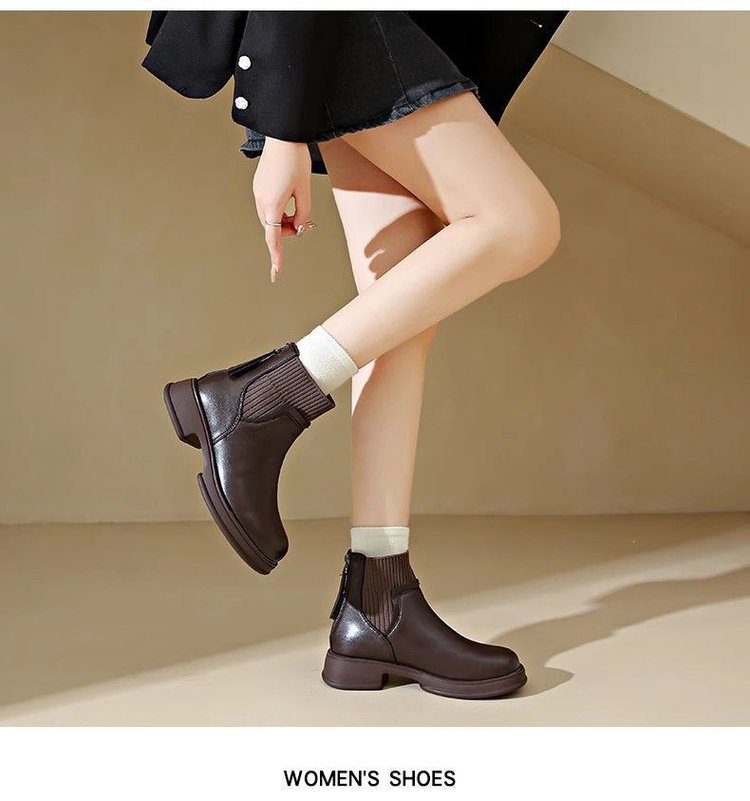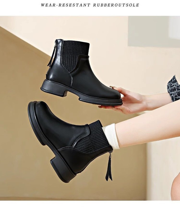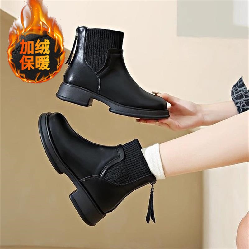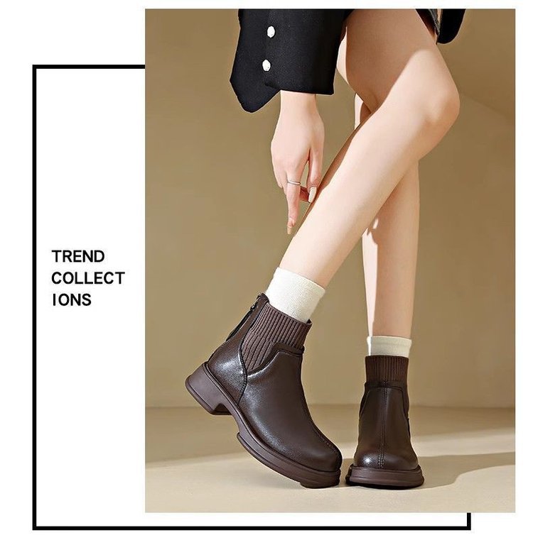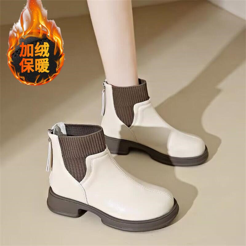 두꺼운 밑창 양말 부츠 여성의 2024 가을과 겨울 새로운 영국 스타일의 누드 부츠 리어 지퍼 짧은 부츠 얇은 부츠 소프트 가죽 마틴 부츠