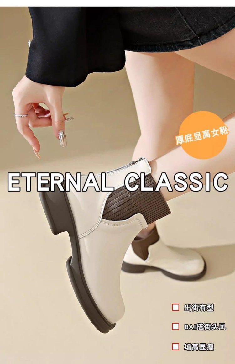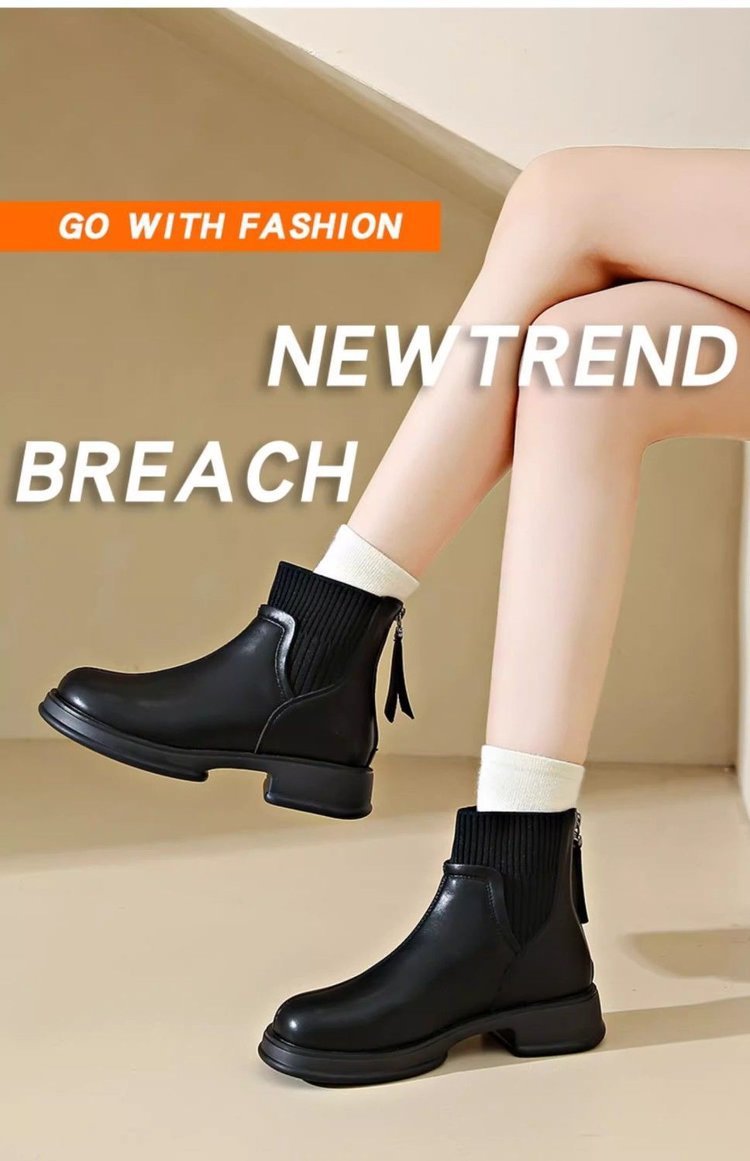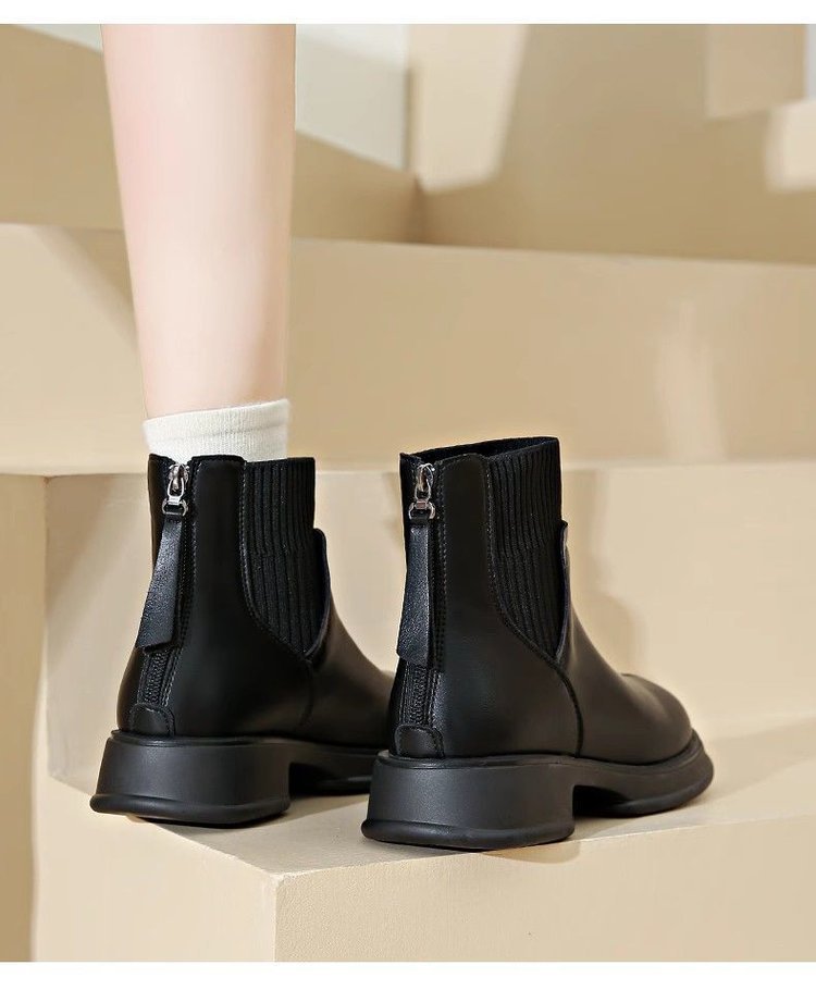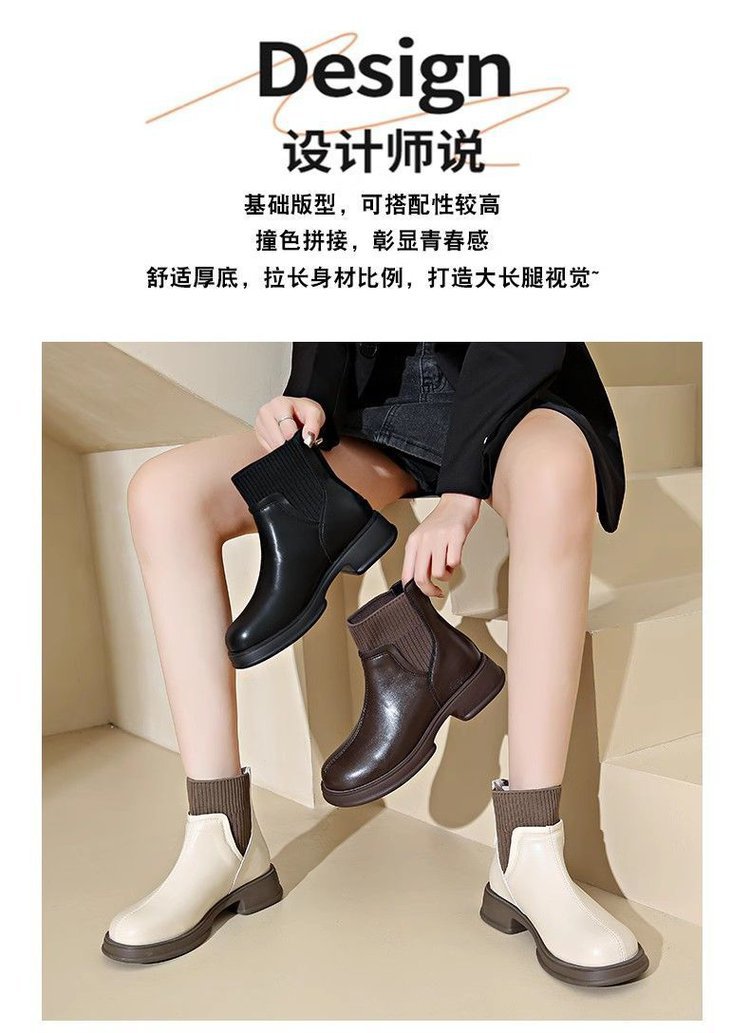 두꺼운 밑창 양말 부츠 여성의 2024 가을과 겨울 새로운 영국 스타일의 누드 부츠 리어 지퍼 짧은 부츠 얇은 부츠 소프트 가죽 마틴 부츠