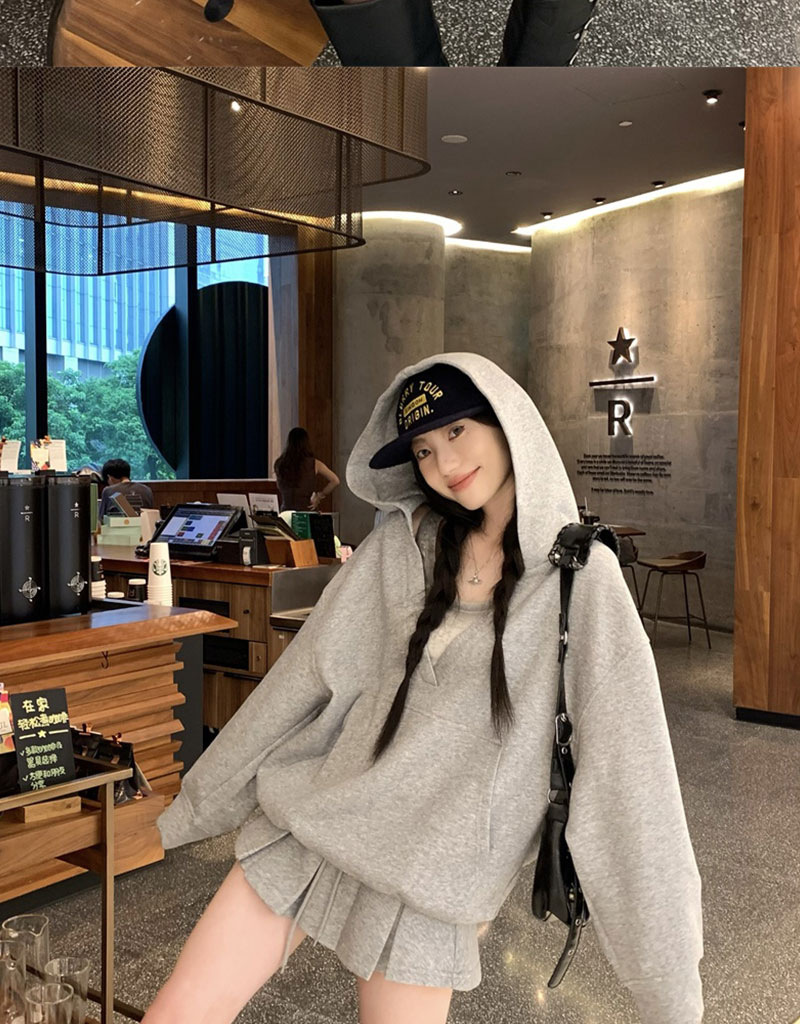 더블 레이어 후드 스웨터 여성 가을 겨울 의류 한국 스타일 느슨한 플러스 사이즈 디자인 센스 봄과 가을 올 매치 게으른 스타일 탑 코트스토어 가기