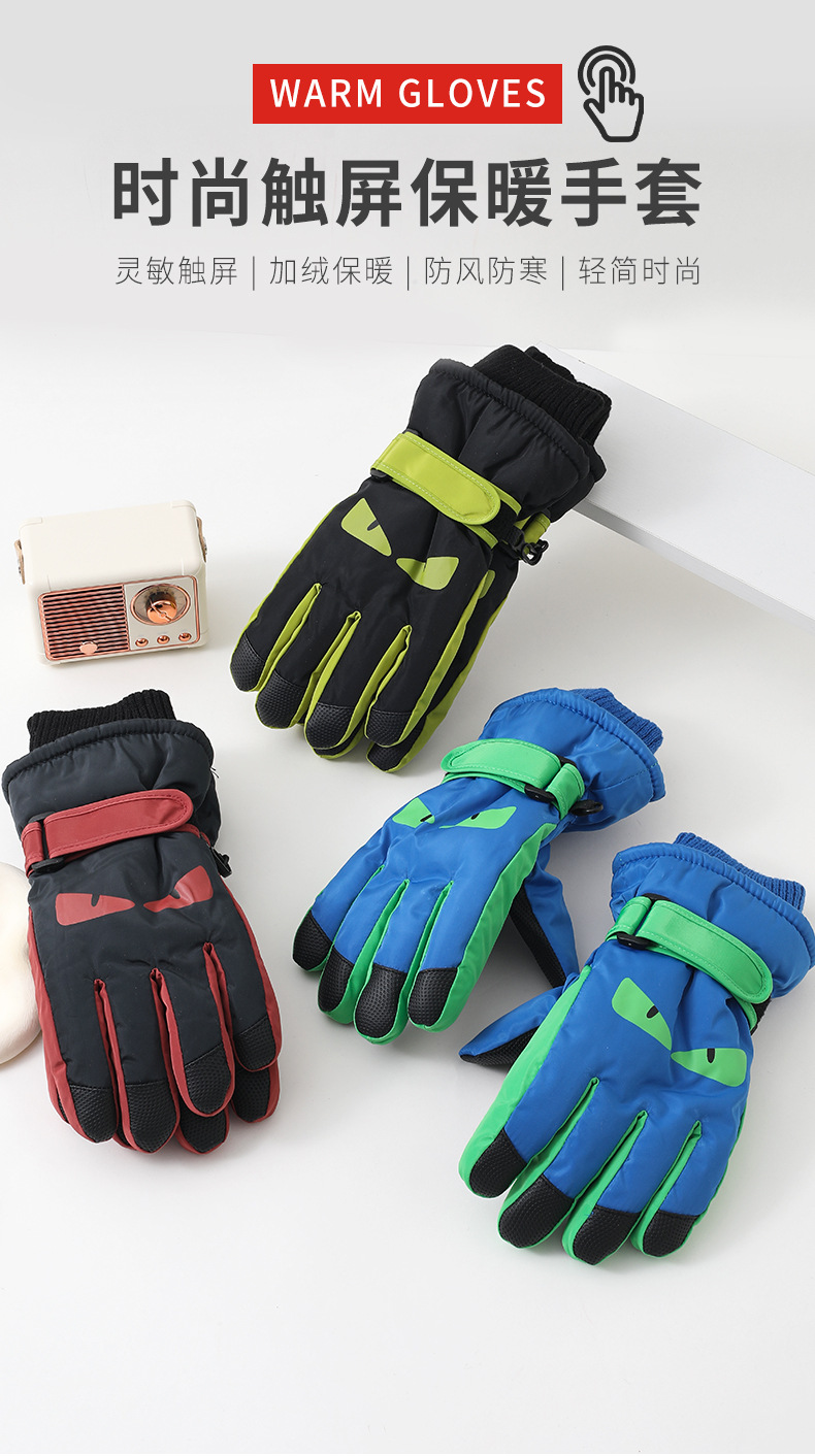 어린이 스키 장갑 따뜻한 눈 방수 겨울 기모 두꺼운 소년 소녀 어린이 5 손가락 방풍 감기스토어 가기