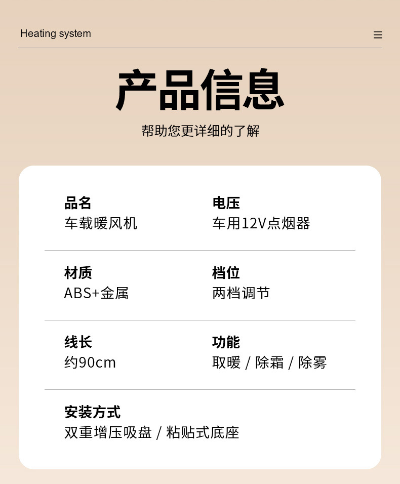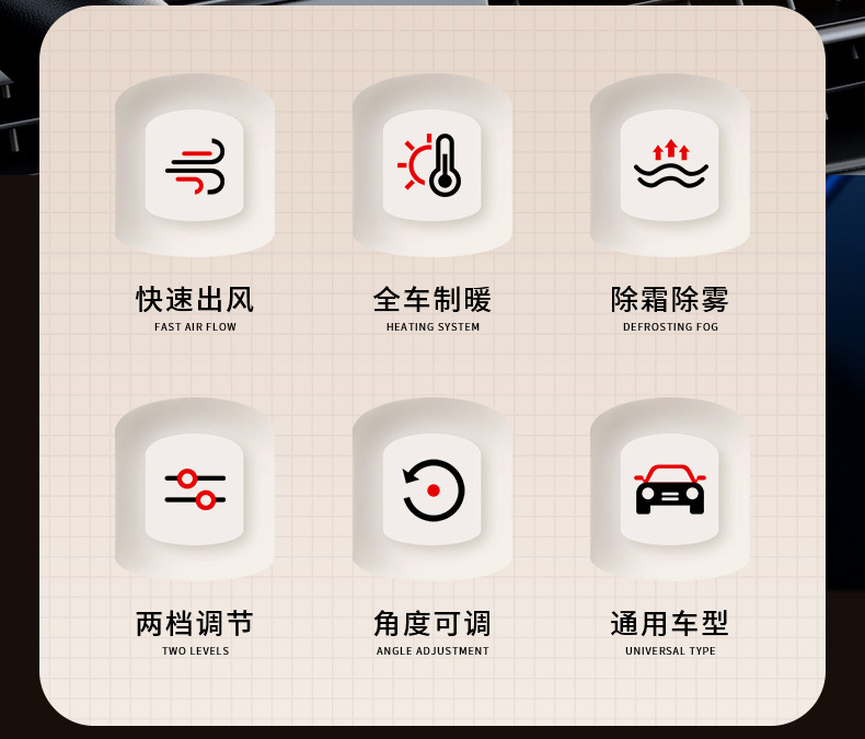 注意暖风机主要用于除霜去雾 限流车型会导致发热效果不理想可以咨询客服提供车型信息查看是否合适