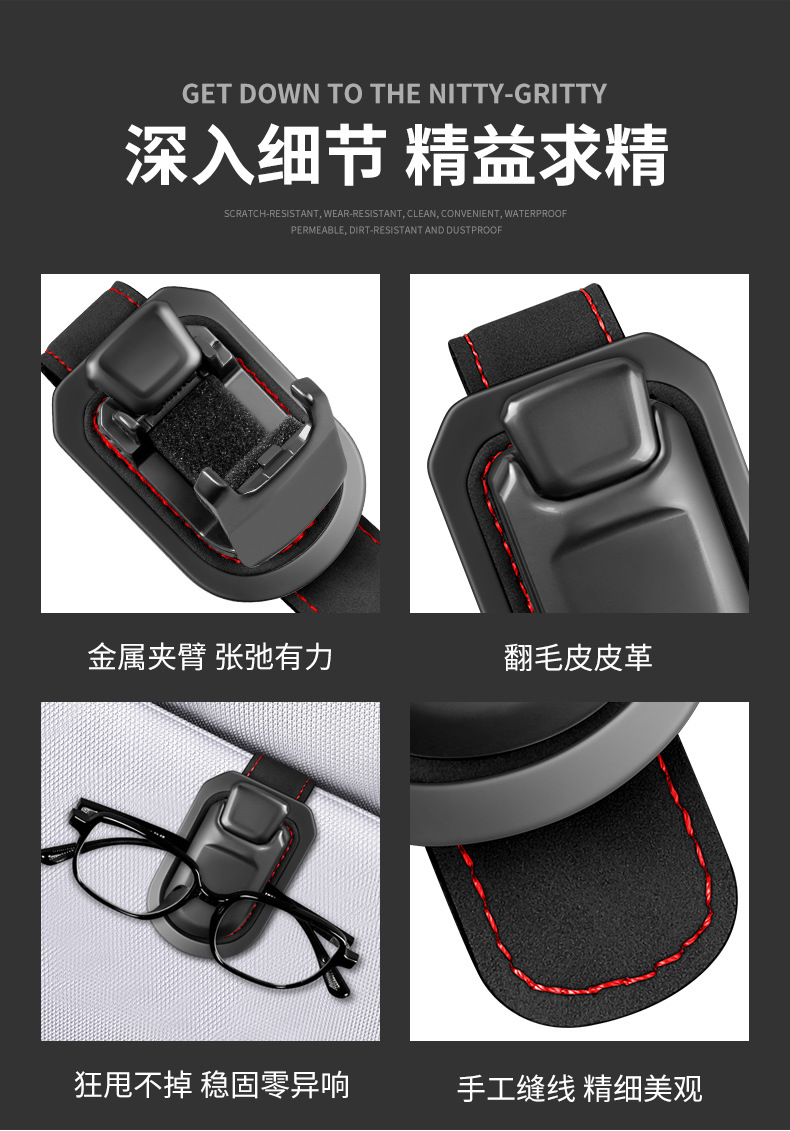 국경 간 자동차 장착 모피 버클 안경 클립 다기능 합금 가죽 안경 클립 썬 바이저 선글라스 카드 클립