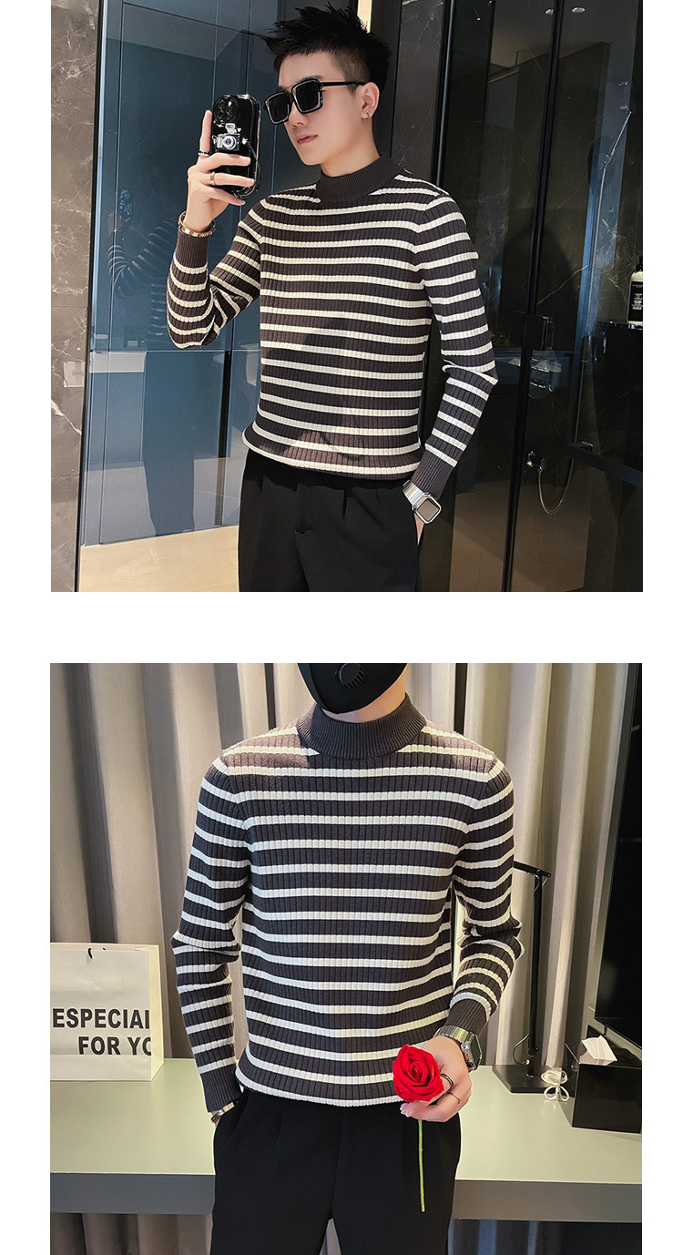 클래식 흑백 줄무늬 스웨터 남자 원사 염색 얼룩말 새 스웨터 젊고 중년의 가을과 겨울베이스 셔츠