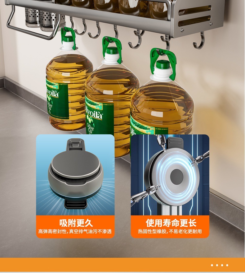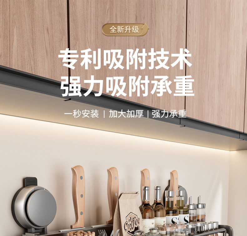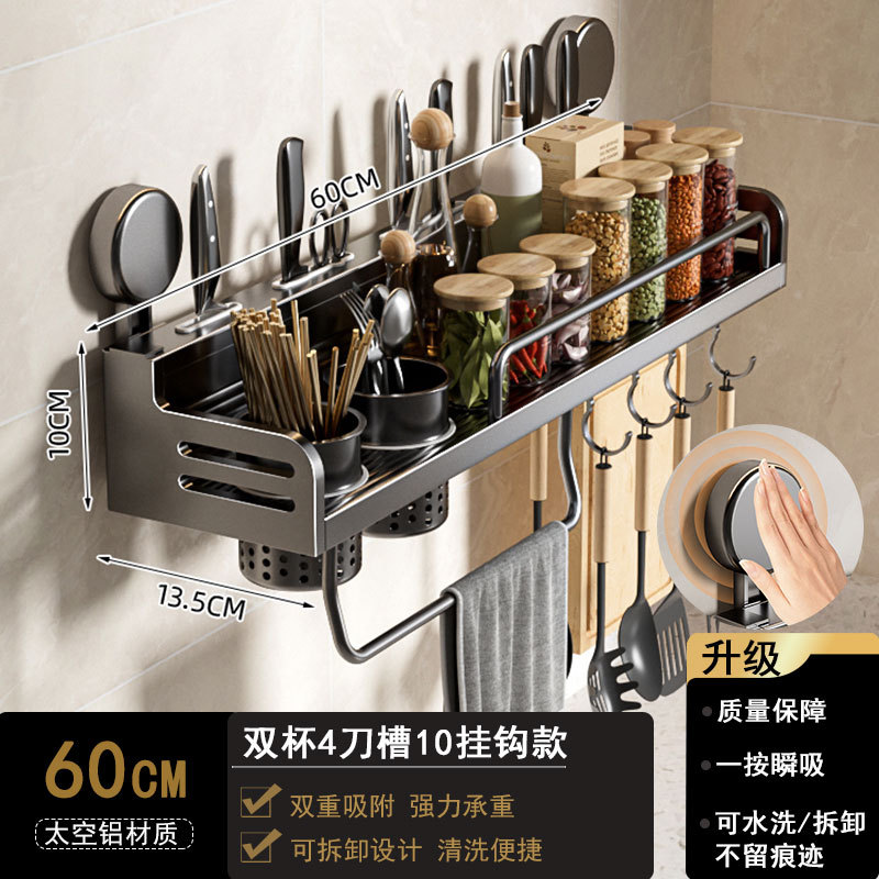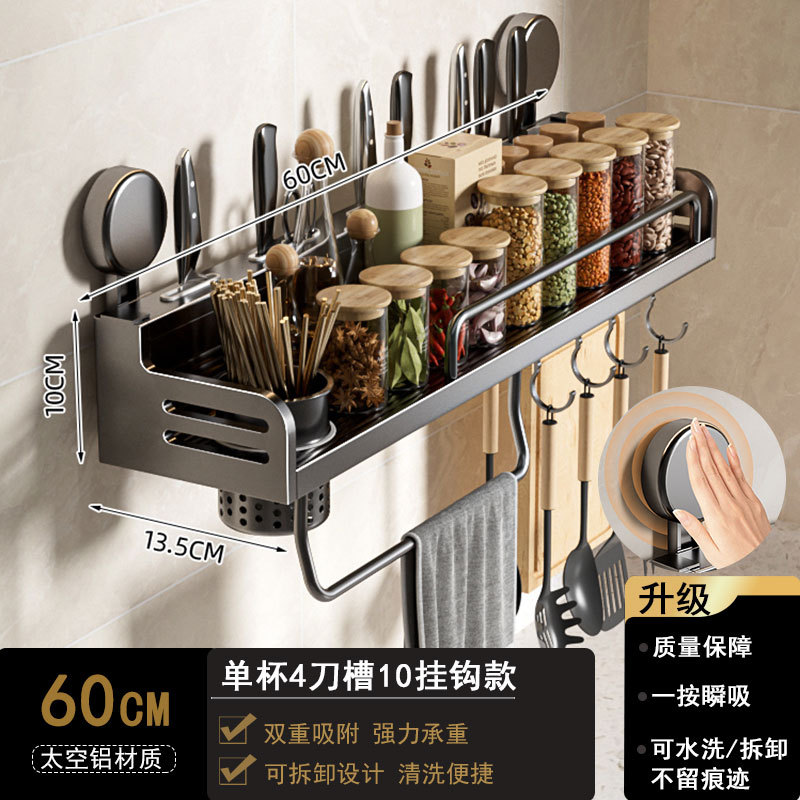 석션 컵 주방 보관 랙 펀치없는 다기능 양념 랙 가정용 벽 장착 조미료 보관 칼 랙