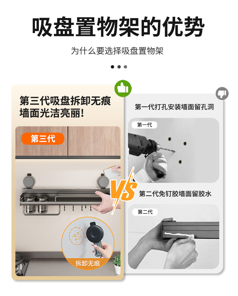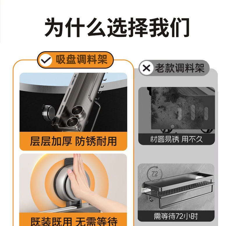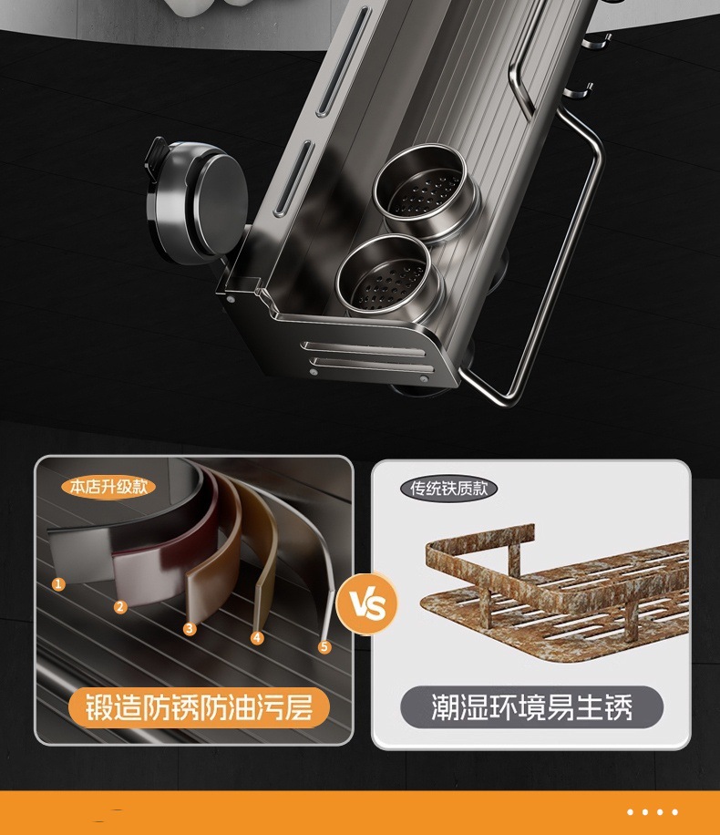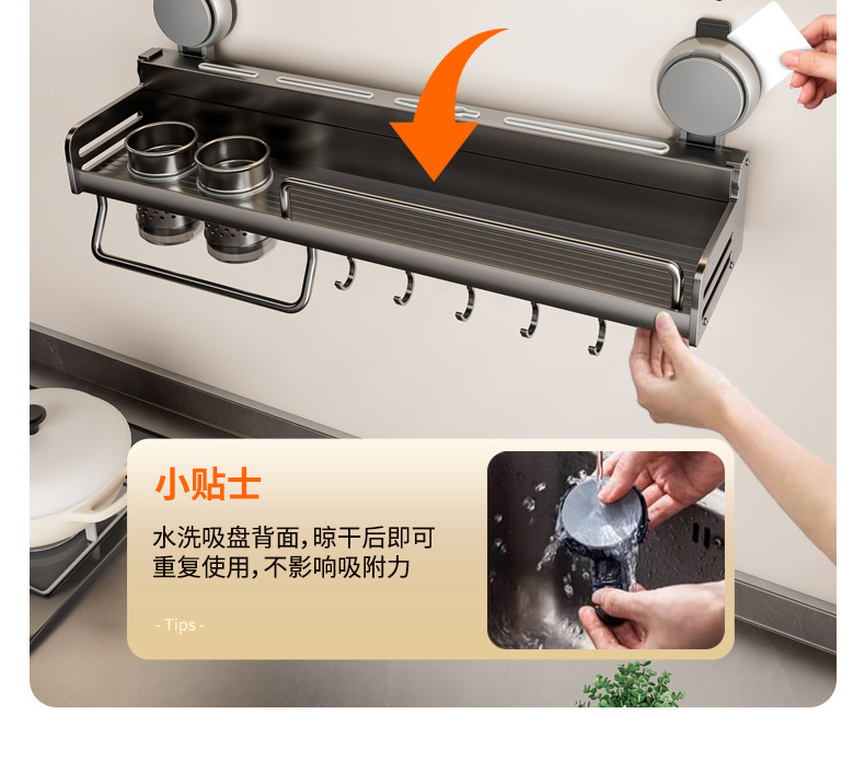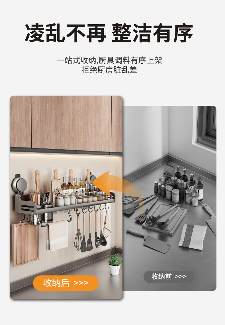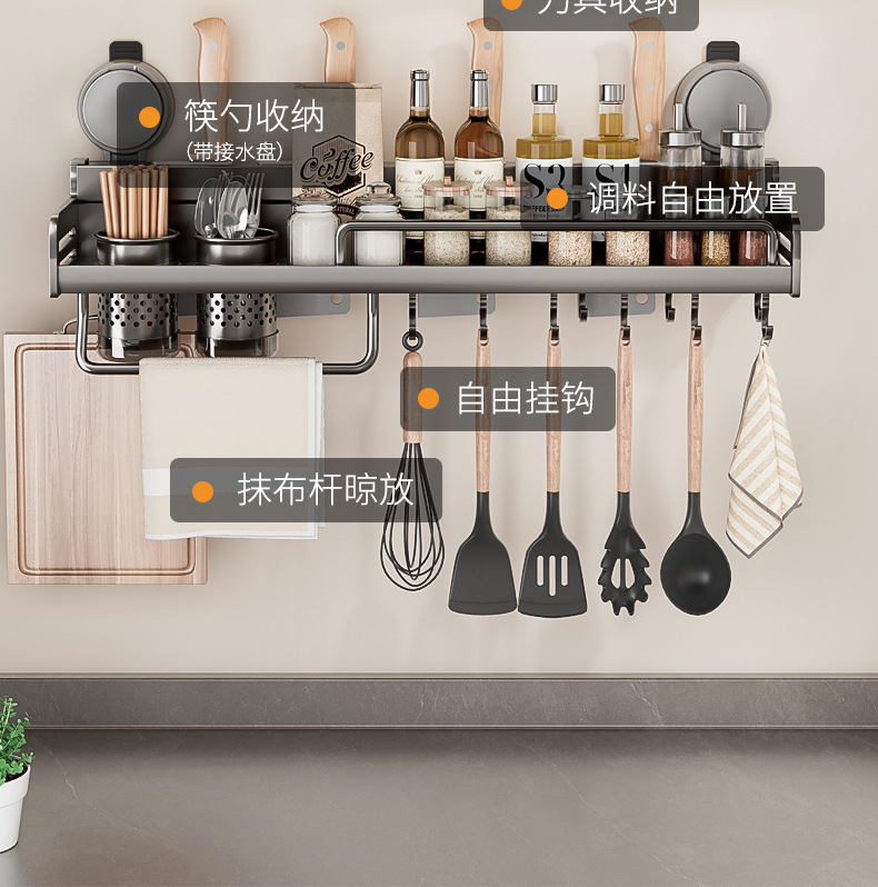 석션 컵 주방 보관 랙 펀치없는 다기능 양념 랙 가정용 벽 장착 조미료 보관 칼 랙스토어 가기
