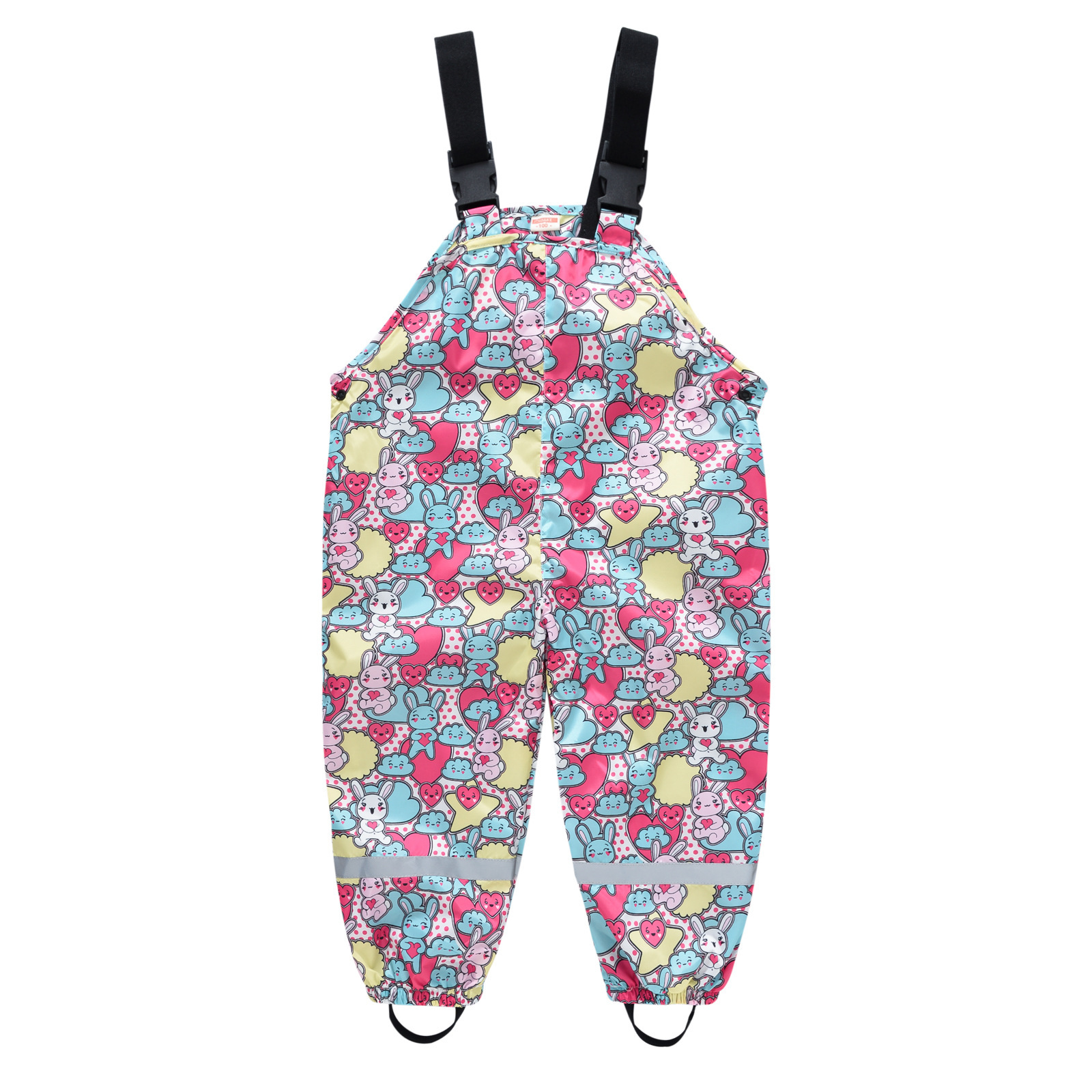 새로운 어린이 소년 소녀 비 바지 어린이 귀여운 인쇄 어깨 끈 조정 가능한 캐주얼 스트랩 바지