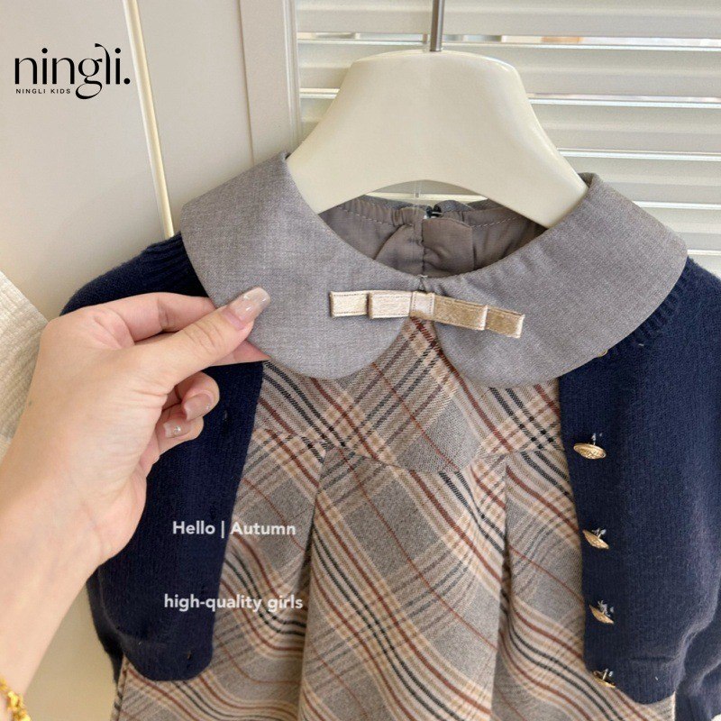 닝리 소녀의 가을 세트 새로운 스타일 아기의 올 매치 니트 스웨터 카디건 우아한 조끼 스커트 투피스 세트스토어 가기