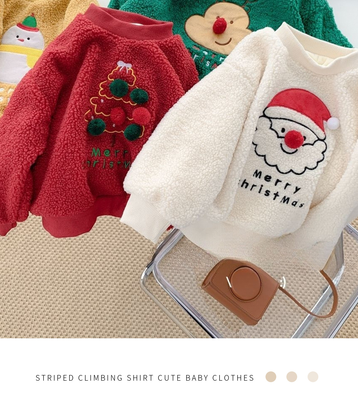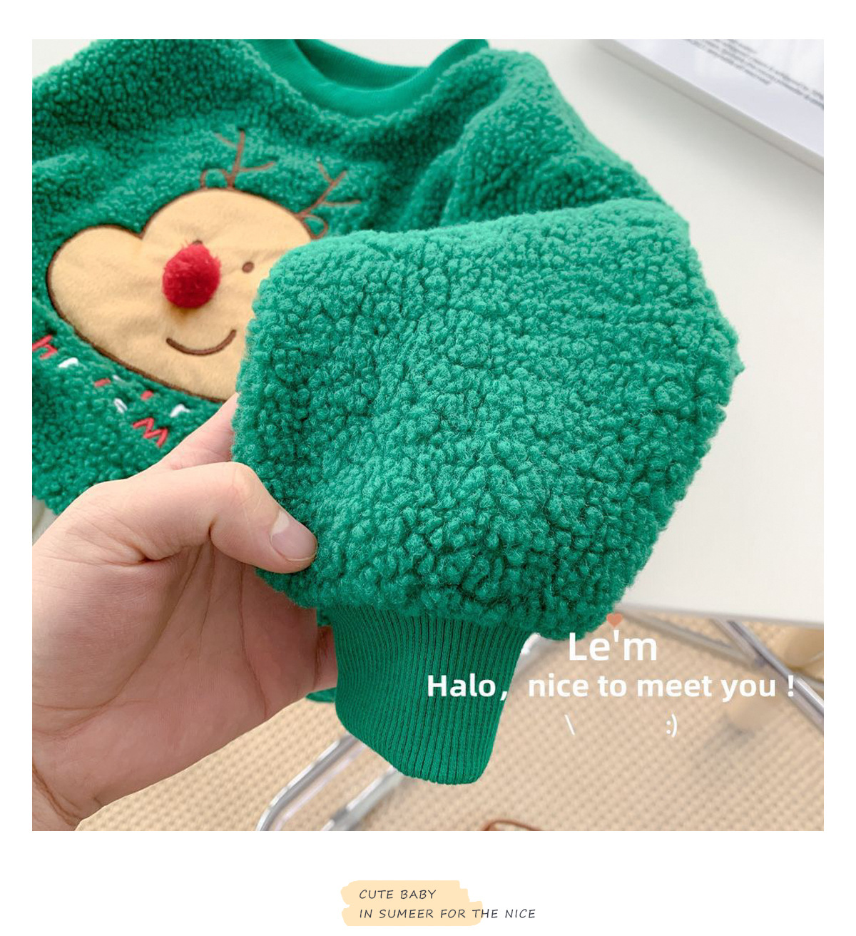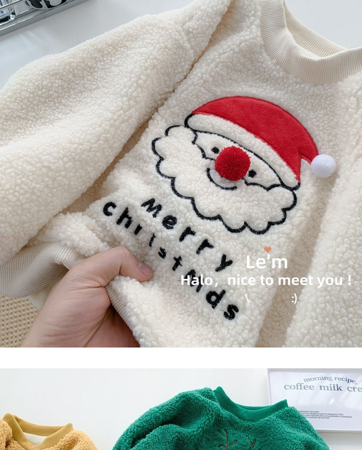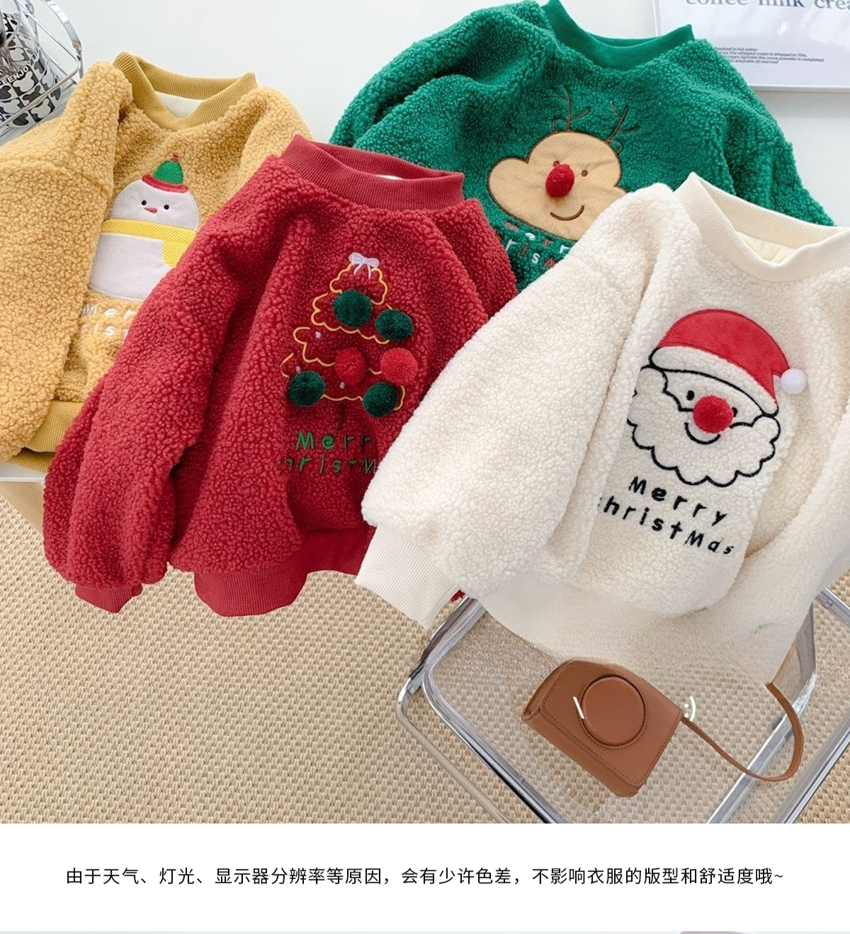 소년 소녀 양고기 양털 기모 크리스마스 스웨터 겨울 새로운 외국 스타일의 어린이 두꺼운 둥근 목 탑 새로운 부드러운 왁스스토어 가기