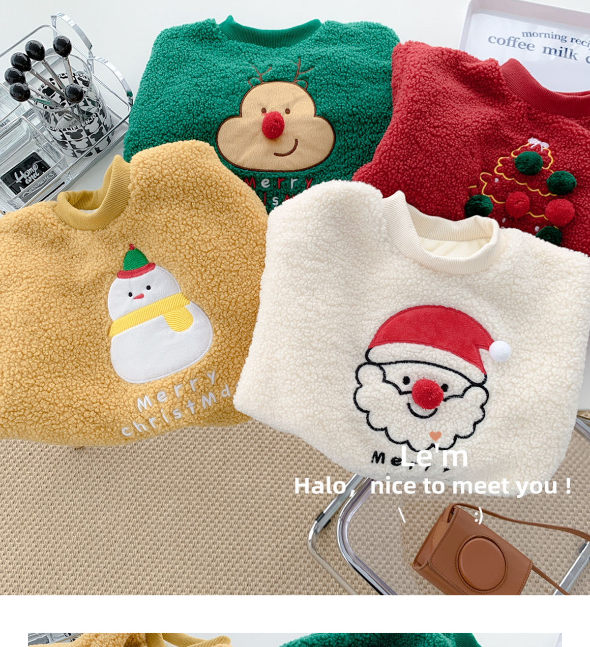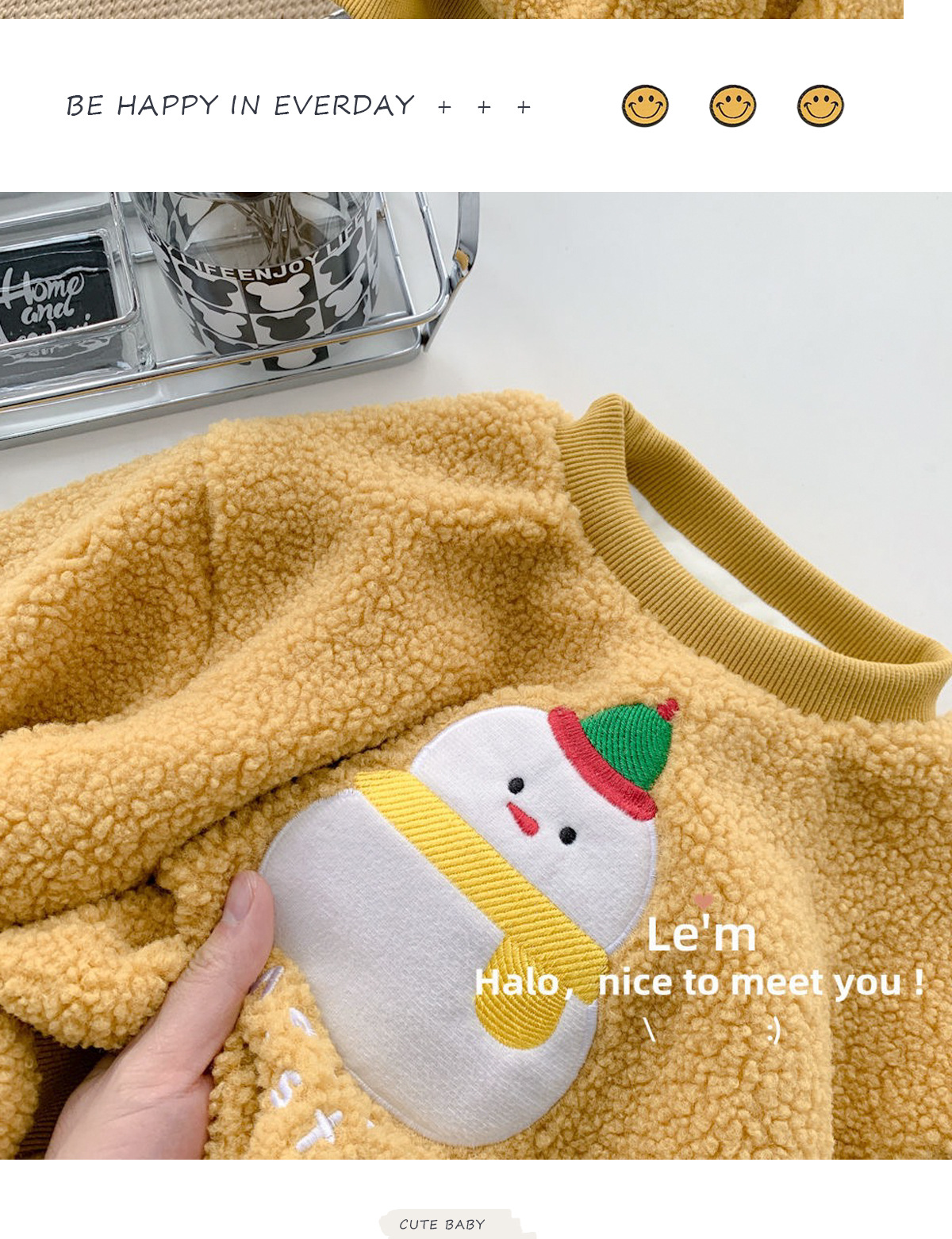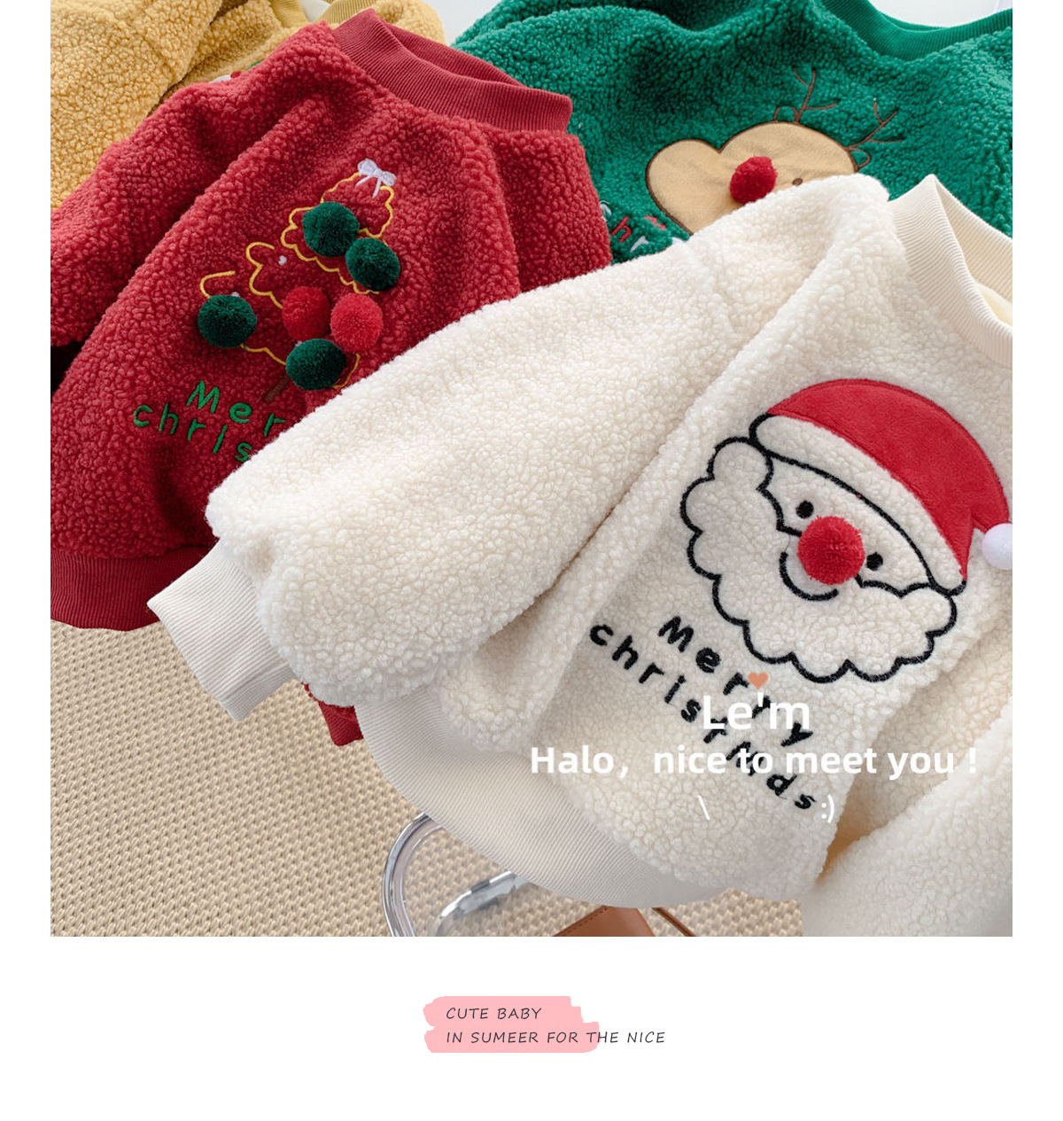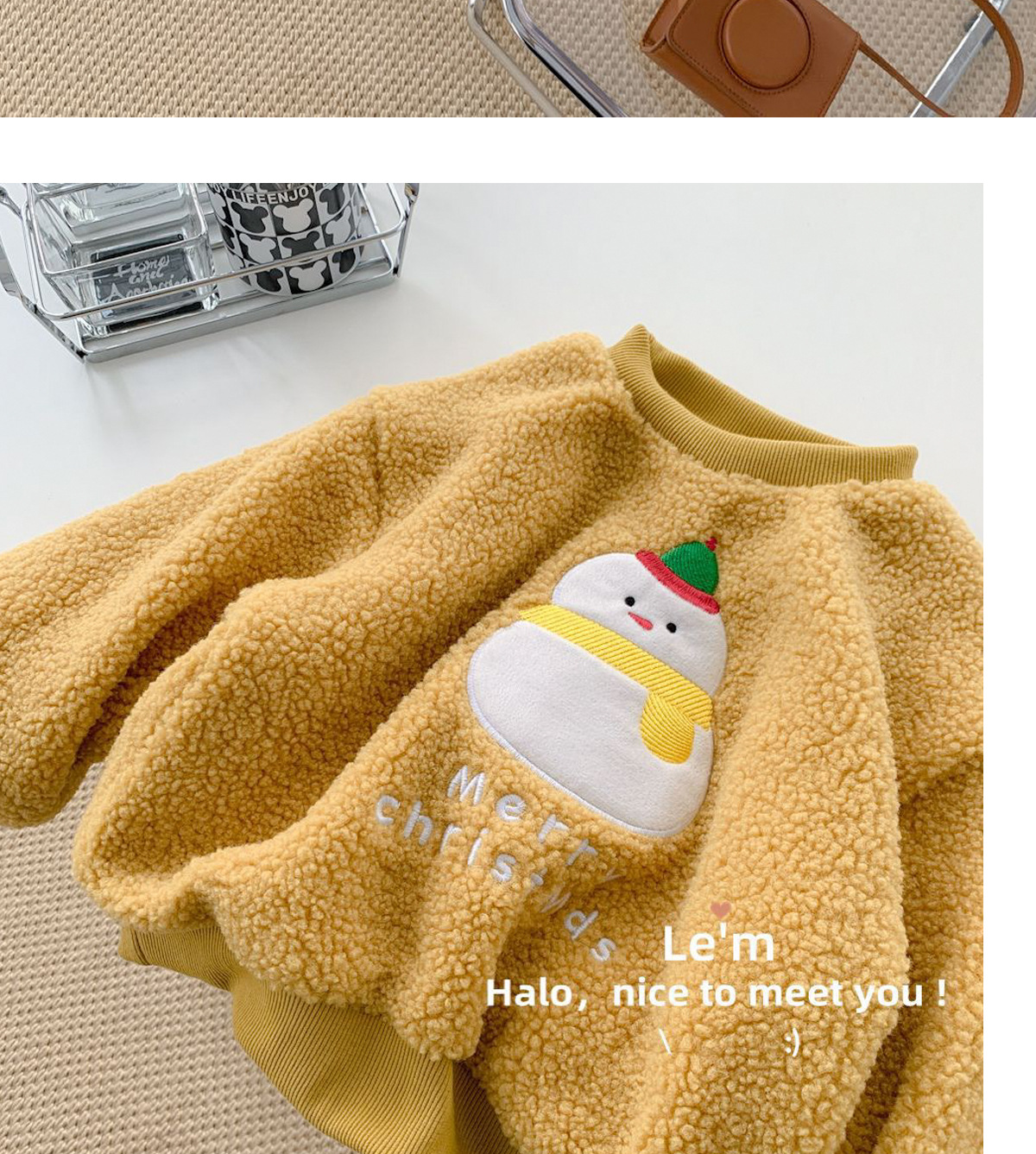 소년 소녀 양고기 양털 기모 크리스마스 스웨터 겨울 새로운 외국 스타일의 어린이 두꺼운 둥근 목 탑 새로운 부드러운 왁스스토어 가기