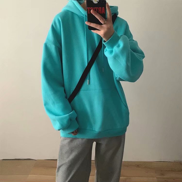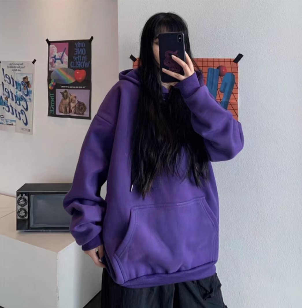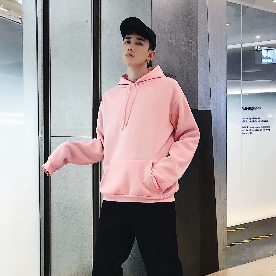 홍콩 스타일 기모 스웨터 남자 2024 가을 단색 후드 재킷 한국 유행 느슨한 플러스 사이즈 커플 풀오버스토어 가기