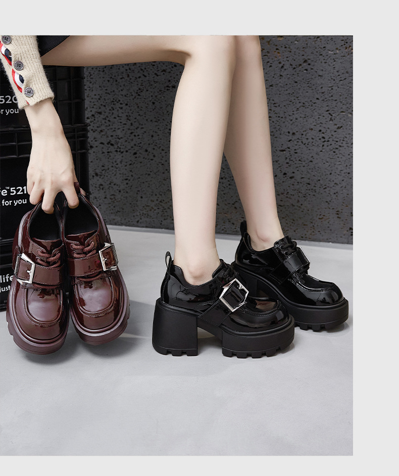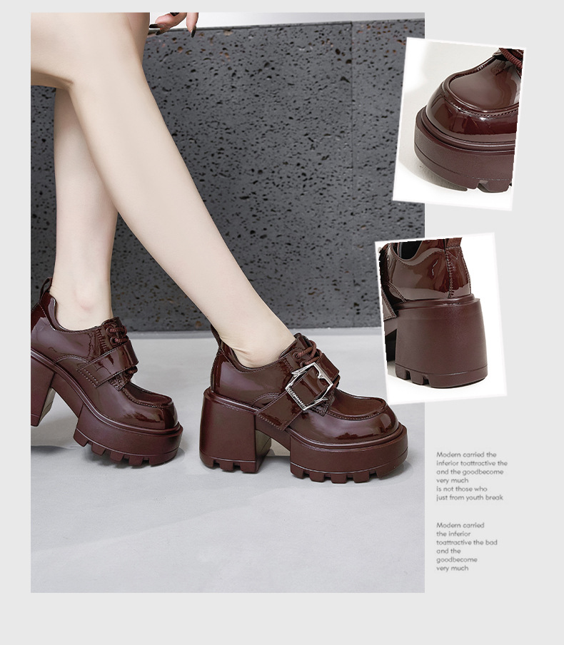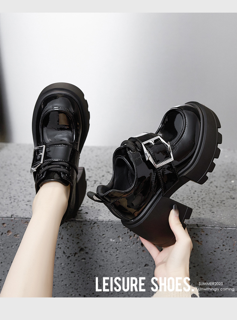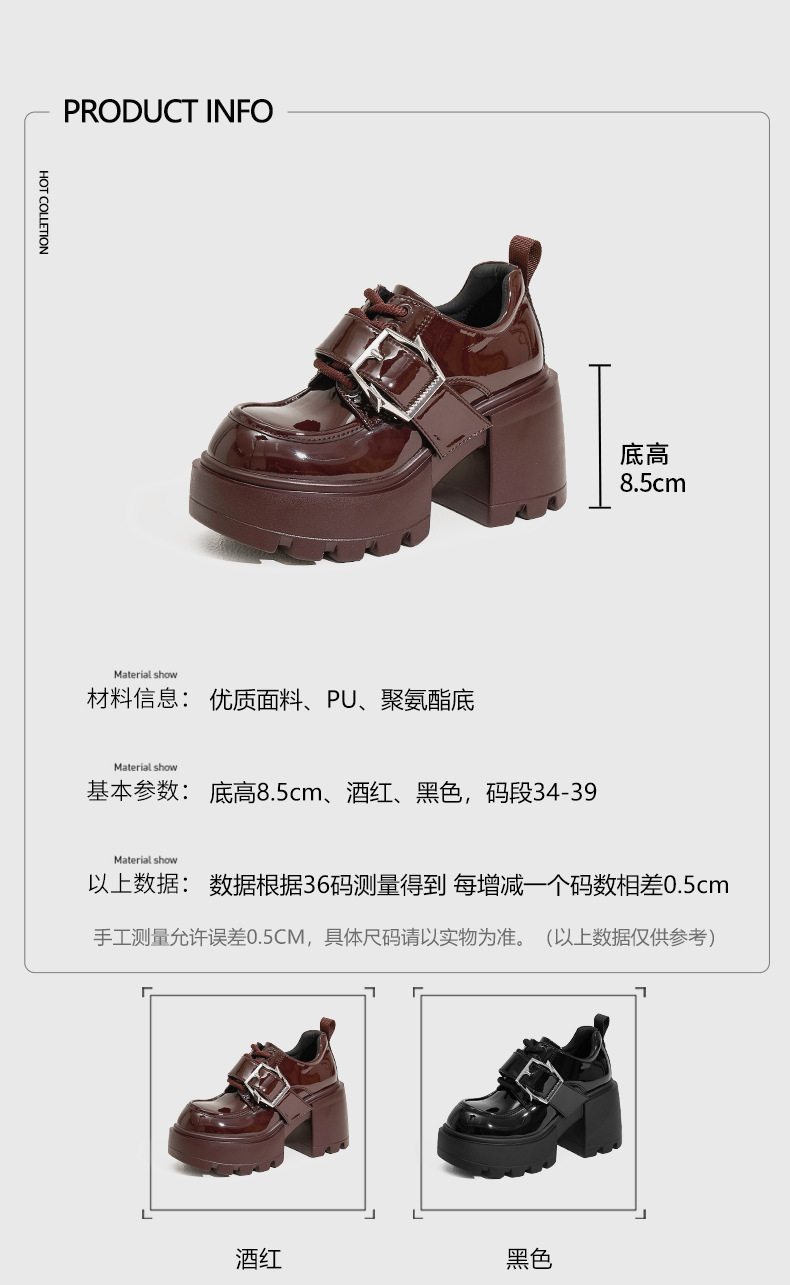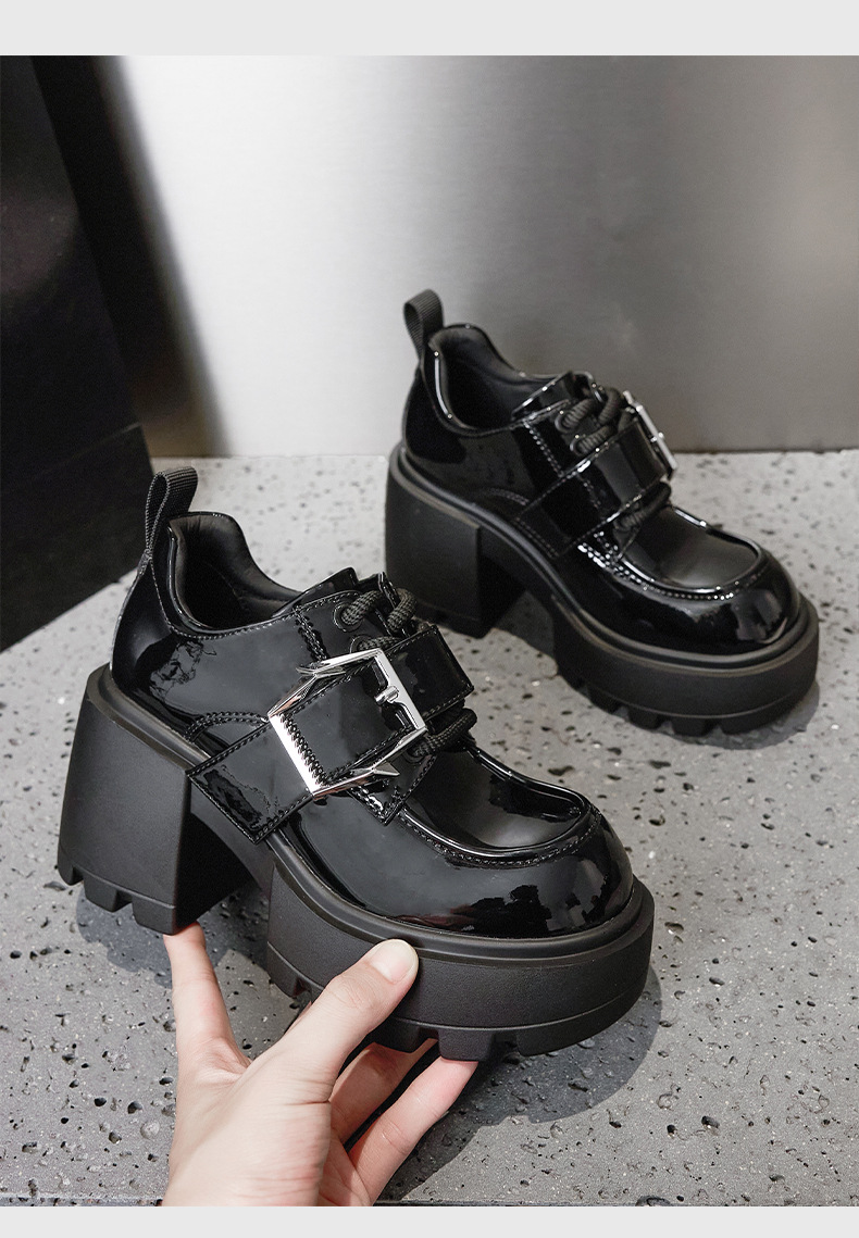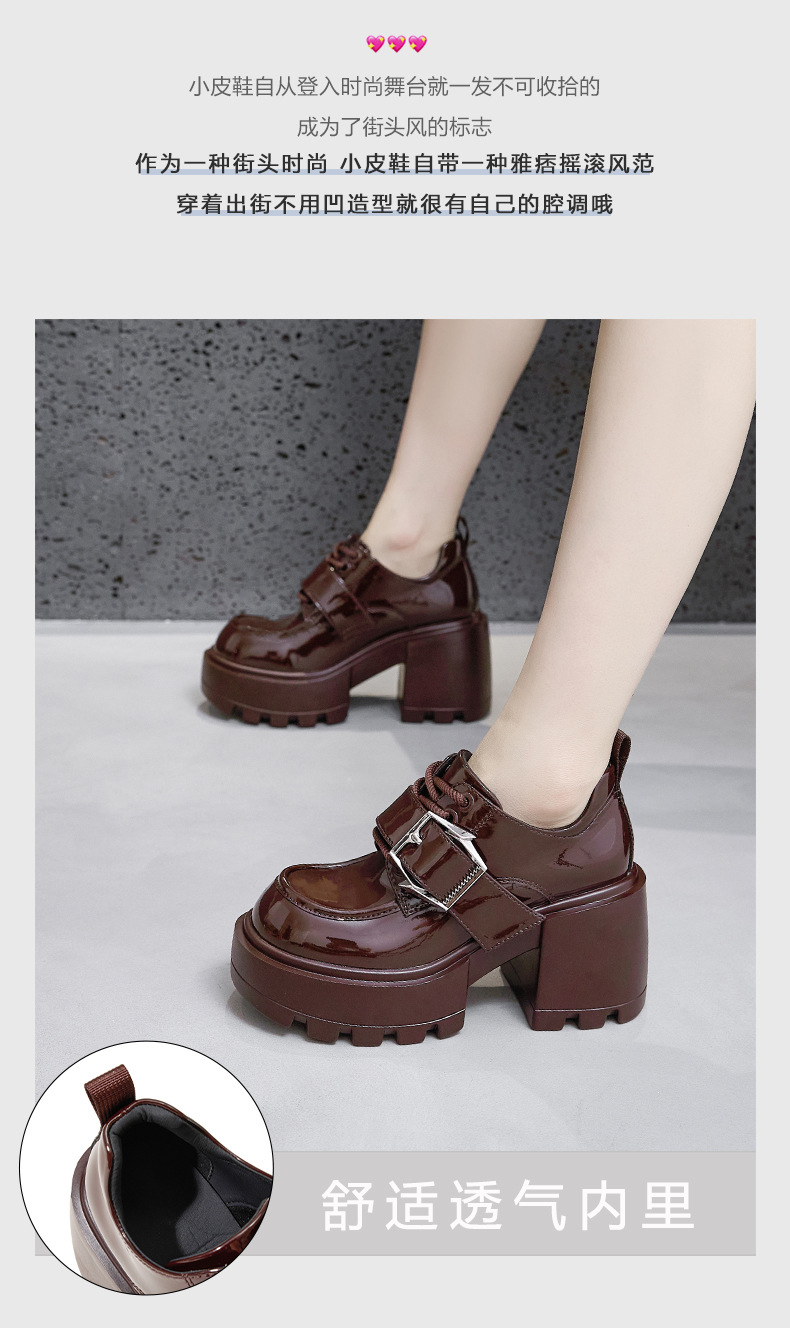 여성용 두꺼운 밑창 로퍼 2025 봄 스타일 다용도 두꺼운 굽 작은 가죽 신발 작은 사람들을 위한 영국식 내부 높이 증가 하이힐 여성 신발스토어 가기