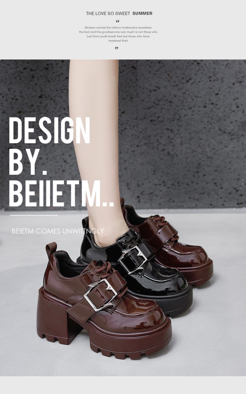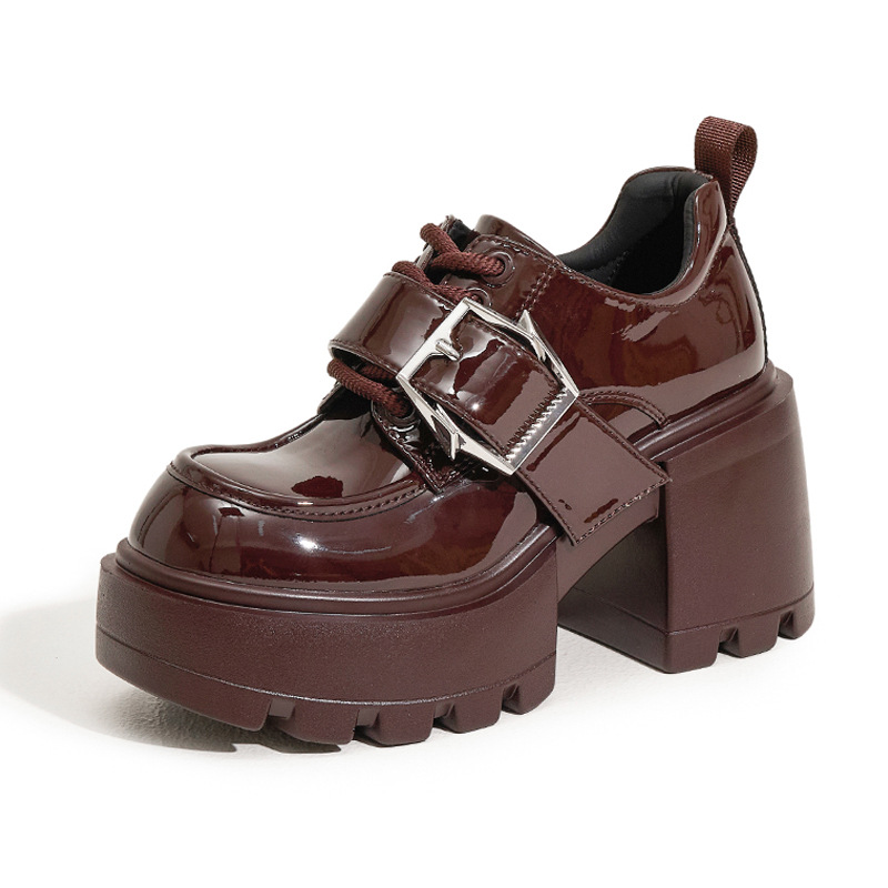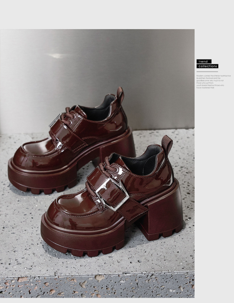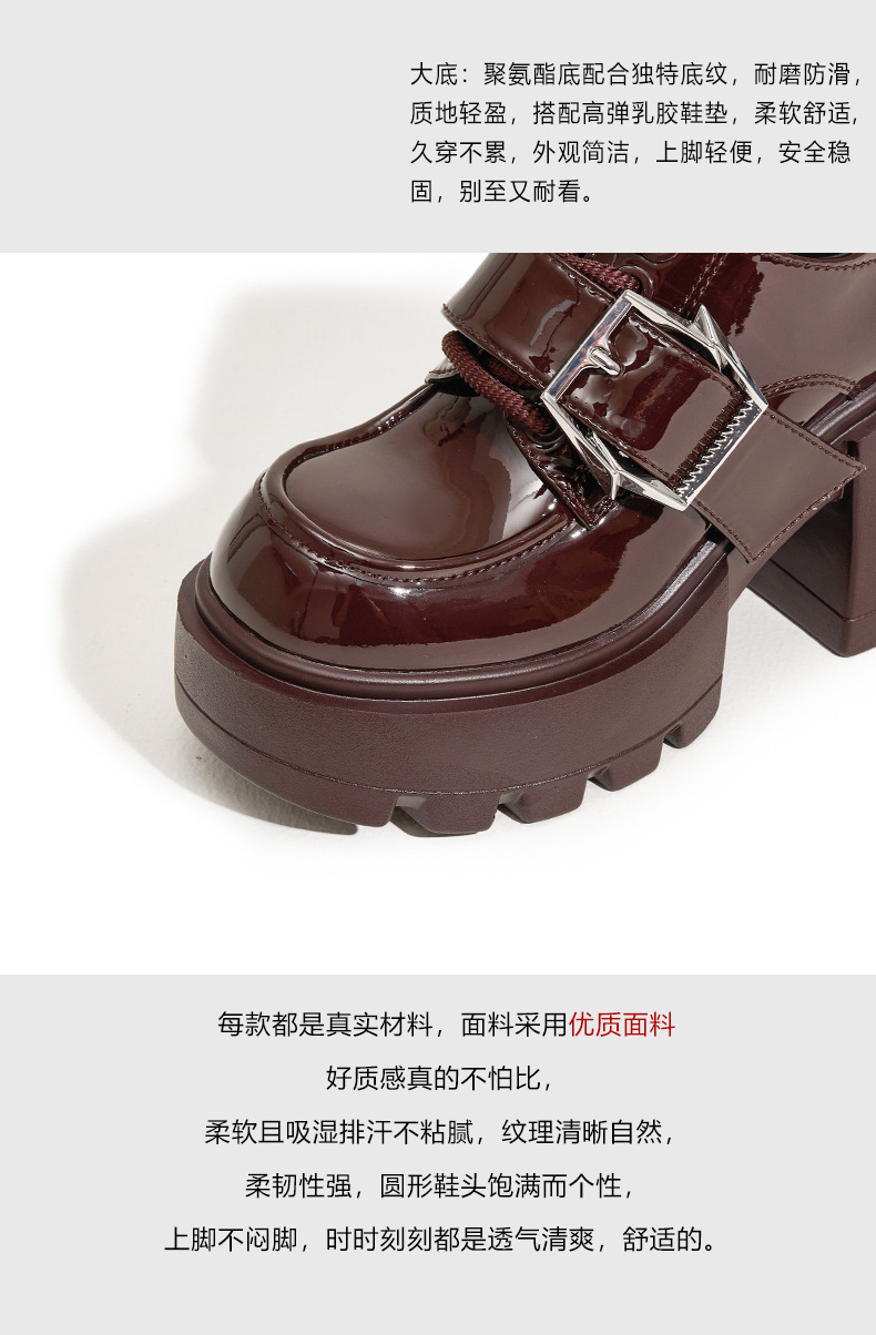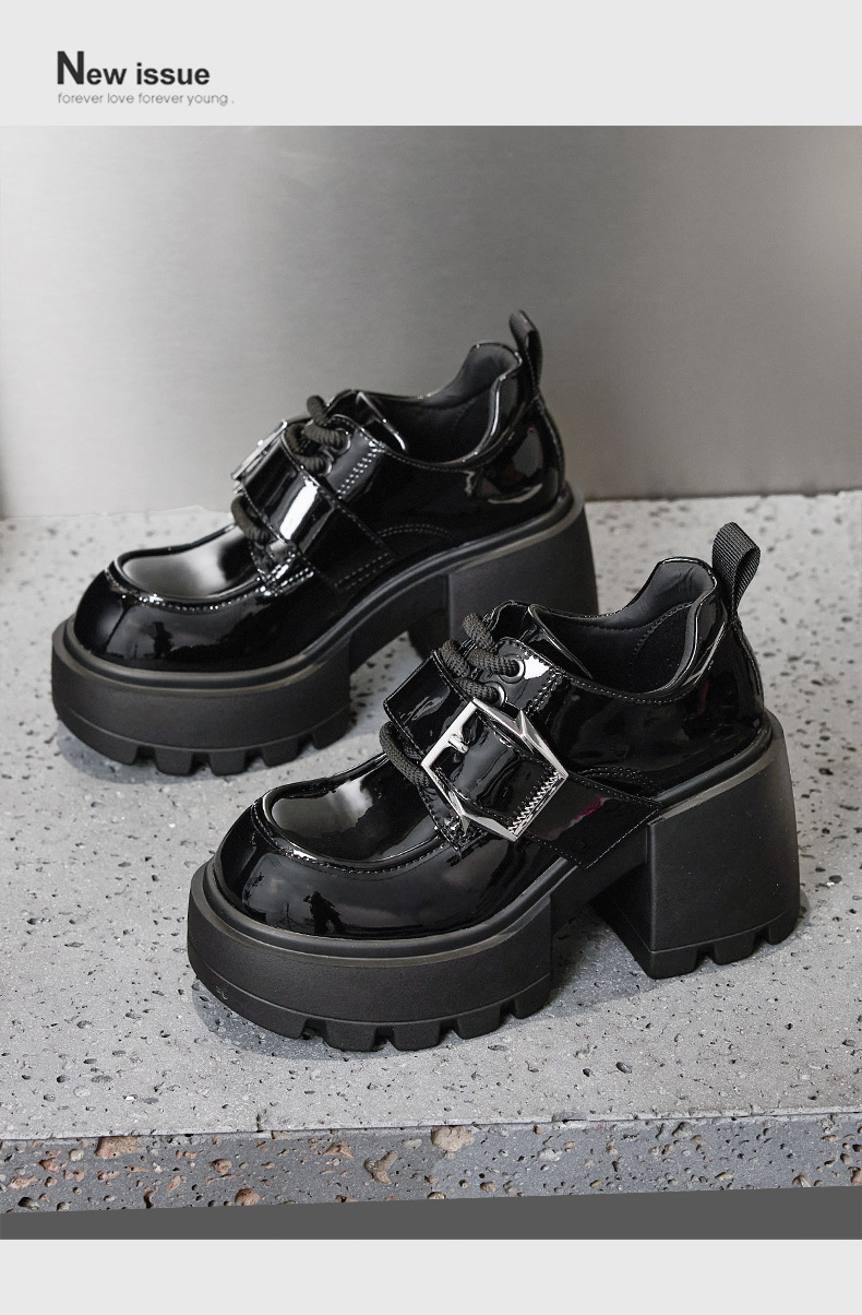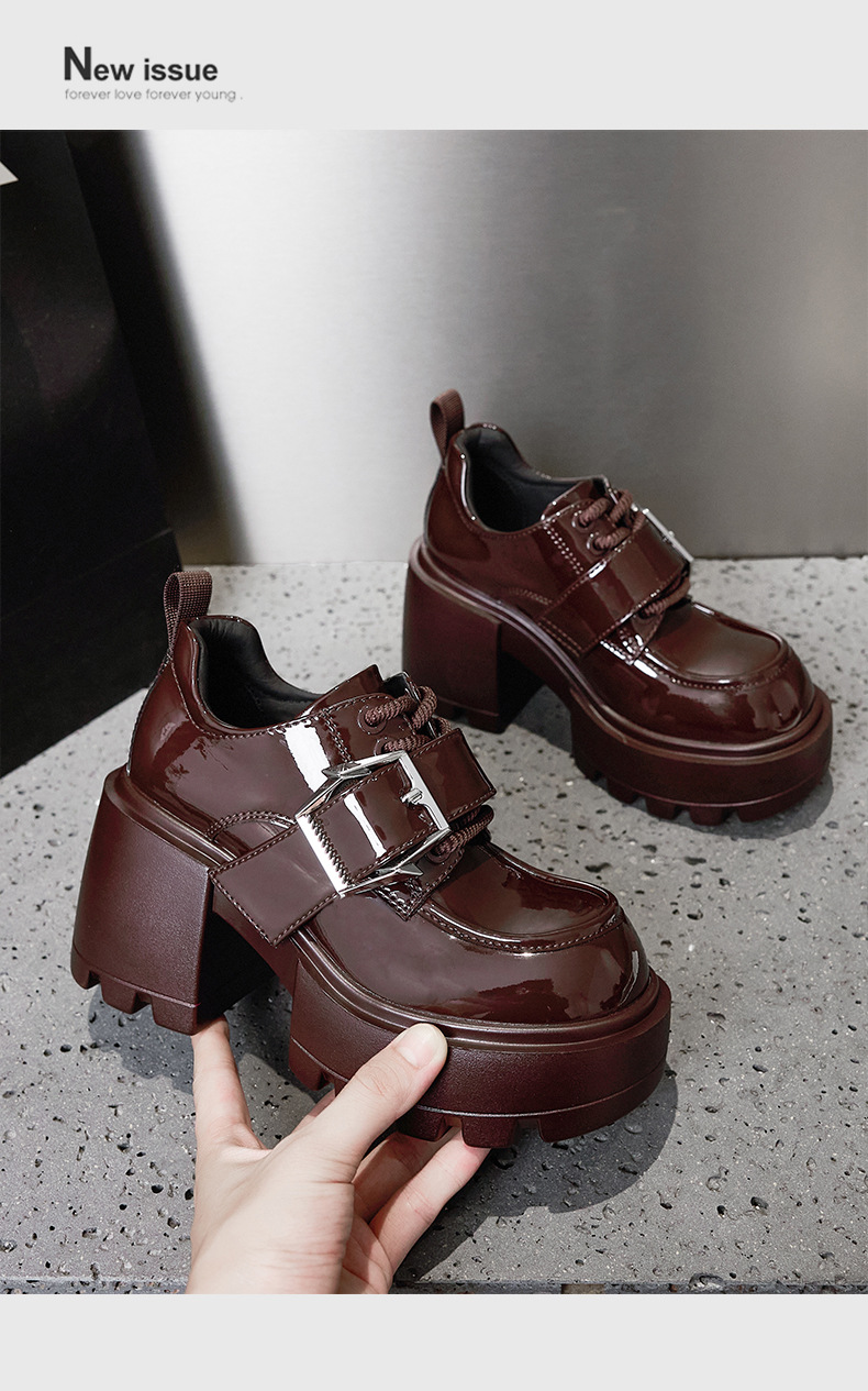 여성용 두꺼운 밑창 로퍼 2025 봄 스타일 다용도 두꺼운 굽 작은 가죽 신발 작은 사람들을 위한 영국식 내부 높이 증가 하이힐 여성 신발스토어 가기