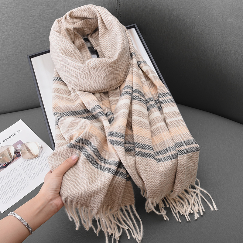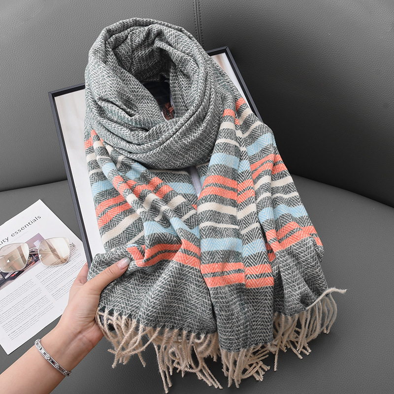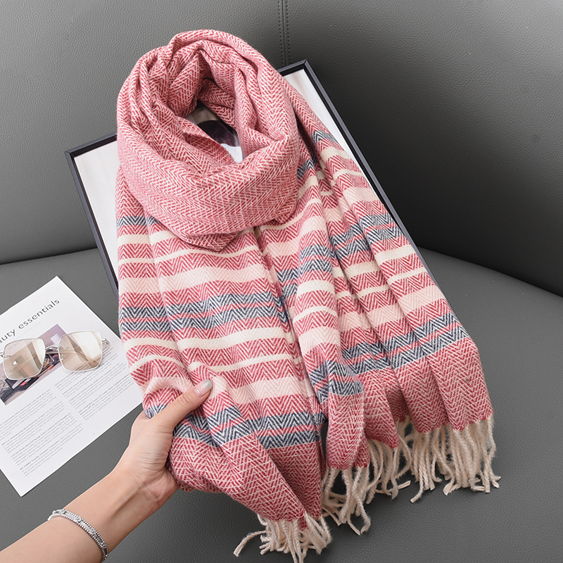 따뜻한 줄무늬 스카프 여성의 가을 겨울 달콤한 패션 우아한 스카프 일본과 한국의 분위기 술 목도리