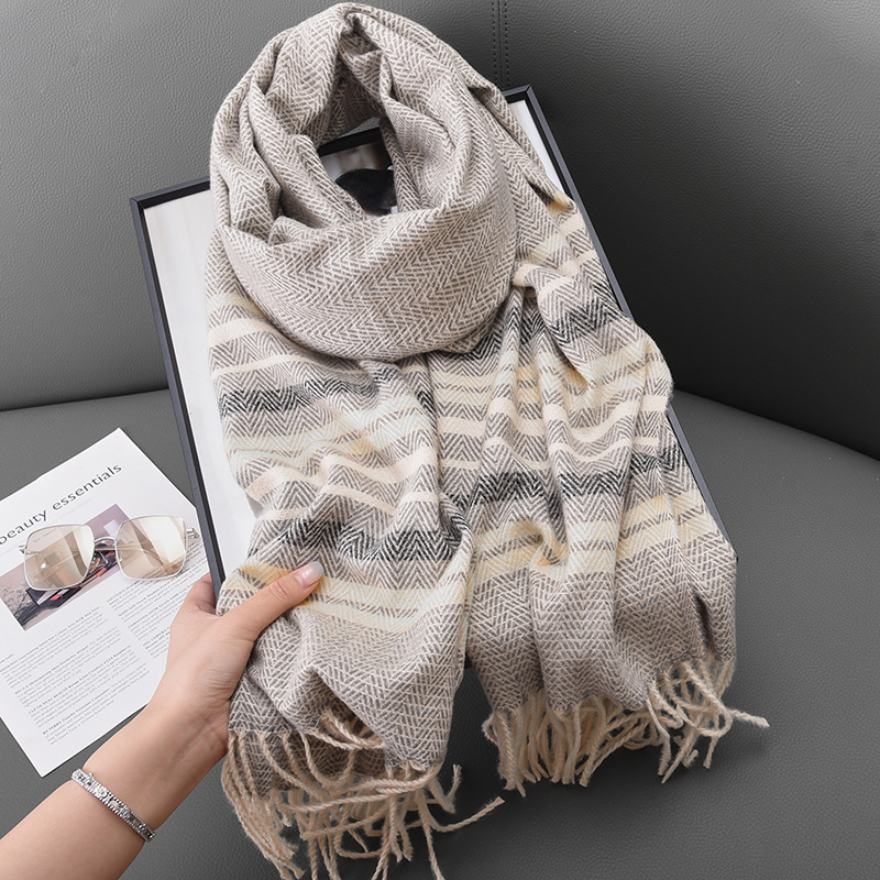 따뜻한 줄무늬 스카프 여성의 가을 겨울 달콤한 패션 우아한 스카프 일본과 한국의 분위기 술 목도리스토어 가기