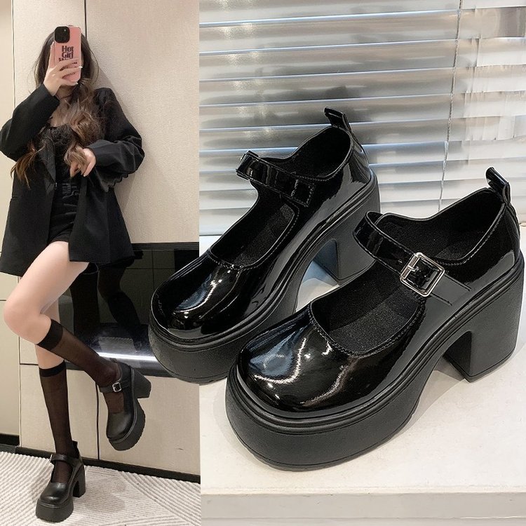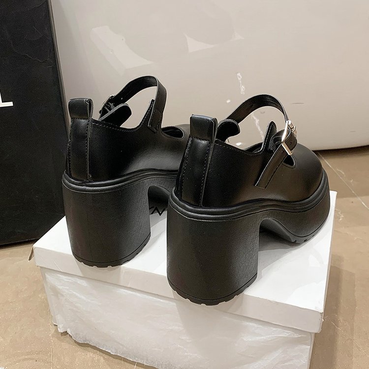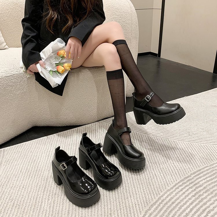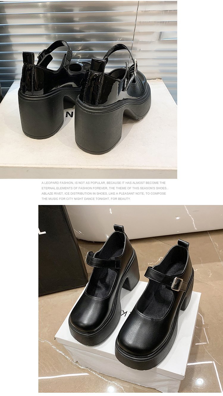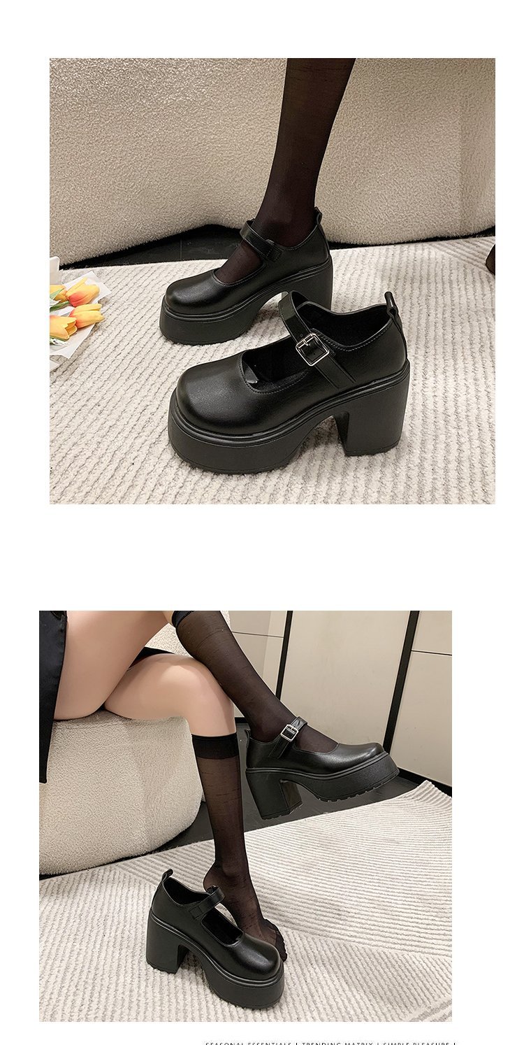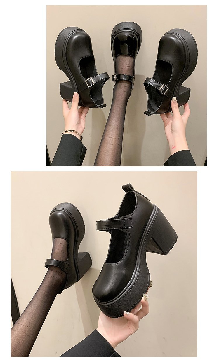 2025 새로운 가을 두꺼운 굽 작은 가죽 신발 여성 영국 스타일 두꺼운 밑창 버클 메리 제인 신발 패션 하이힐스토어 가기