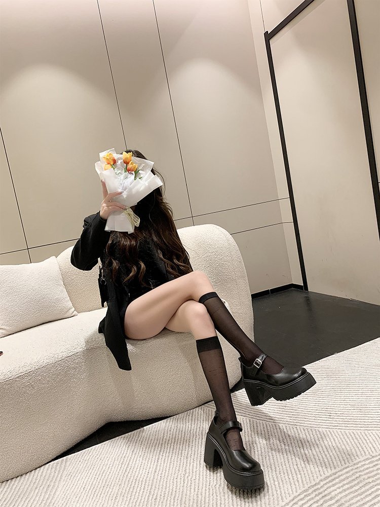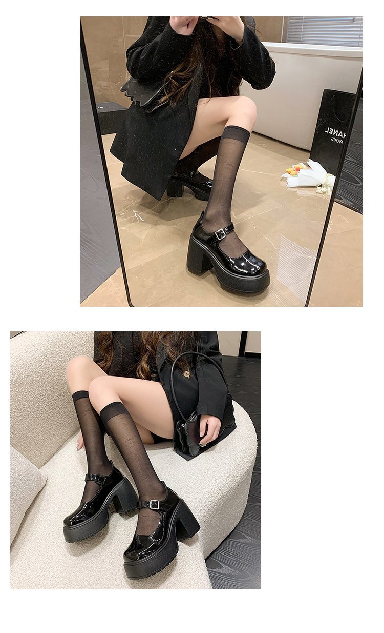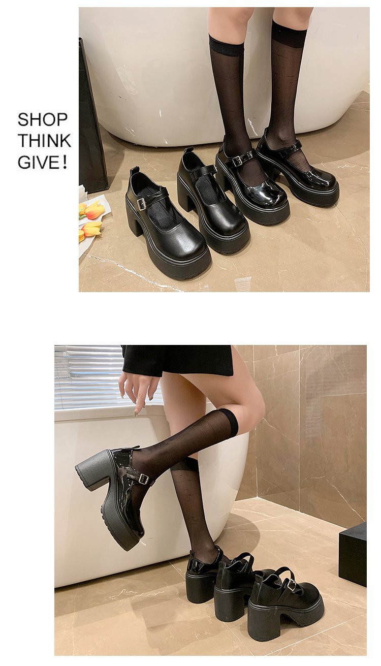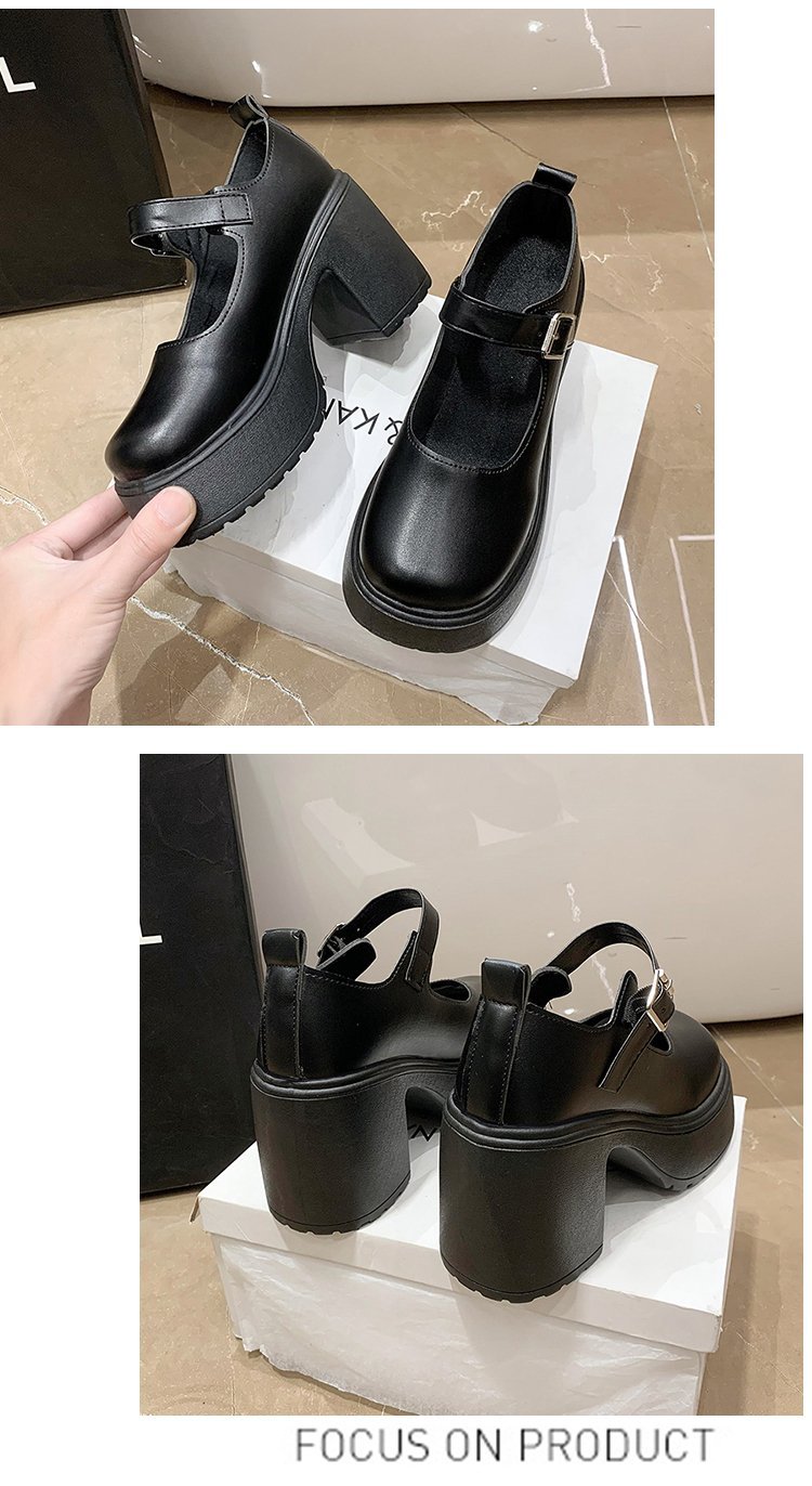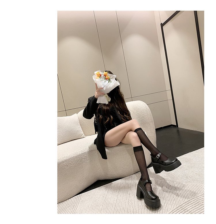 2025 새로운 가을 두꺼운 굽 작은 가죽 신발 여성 영국 스타일 두꺼운 밑창 버클 메리 제인 신발 패션 하이힐스토어 가기