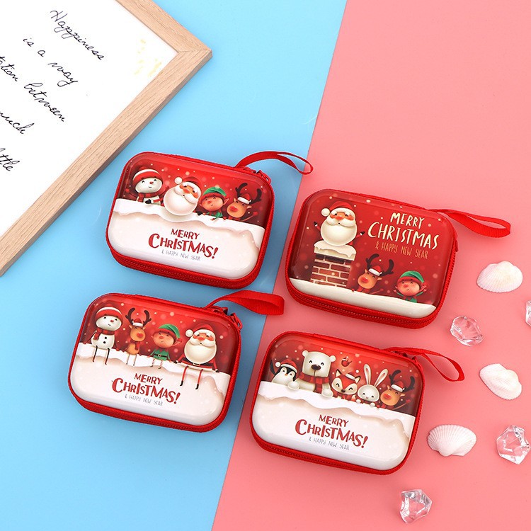 새로운 크리스마스 틴플레이트 동전 지갑 만화 라운드 동전 헤드셋 데이터 케이블 저장 상자 마무리 가방 도매스토어 가기